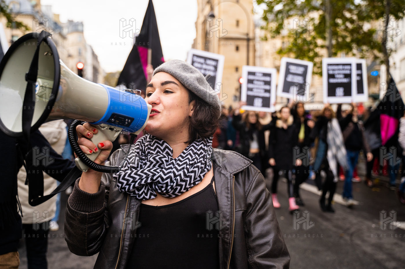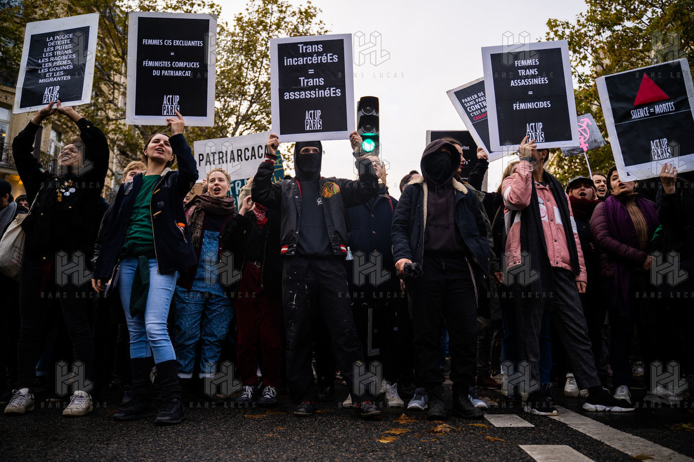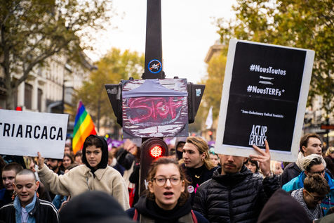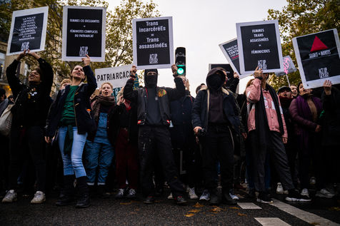 The group participates in the demonstration against gender-based and sexual violence organized by the feminist collective Nous Toutes, Paris, 23 November 2019.