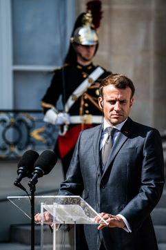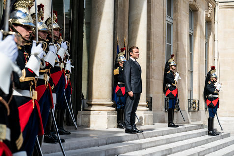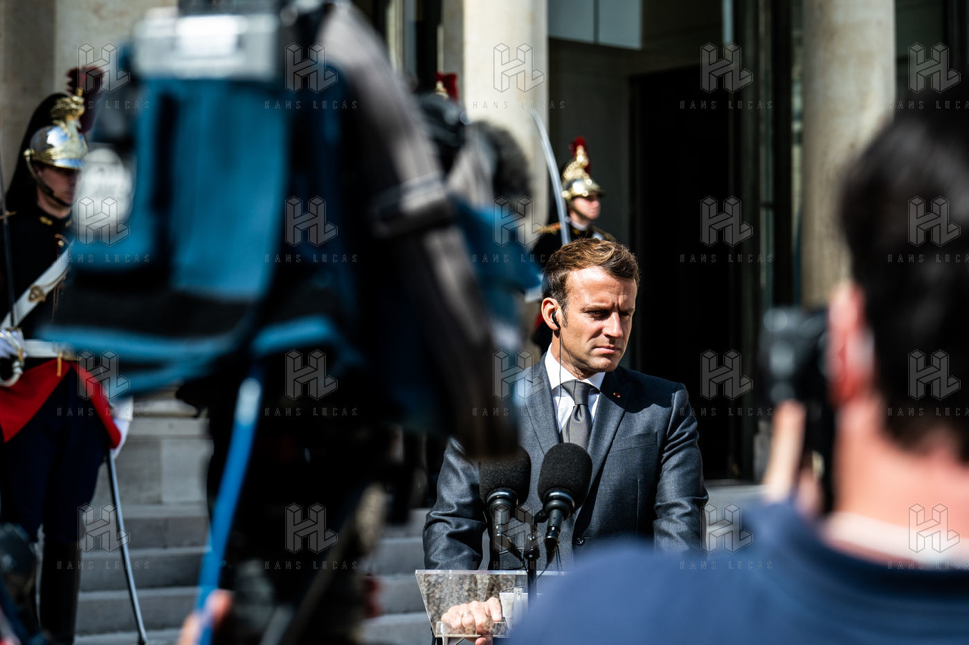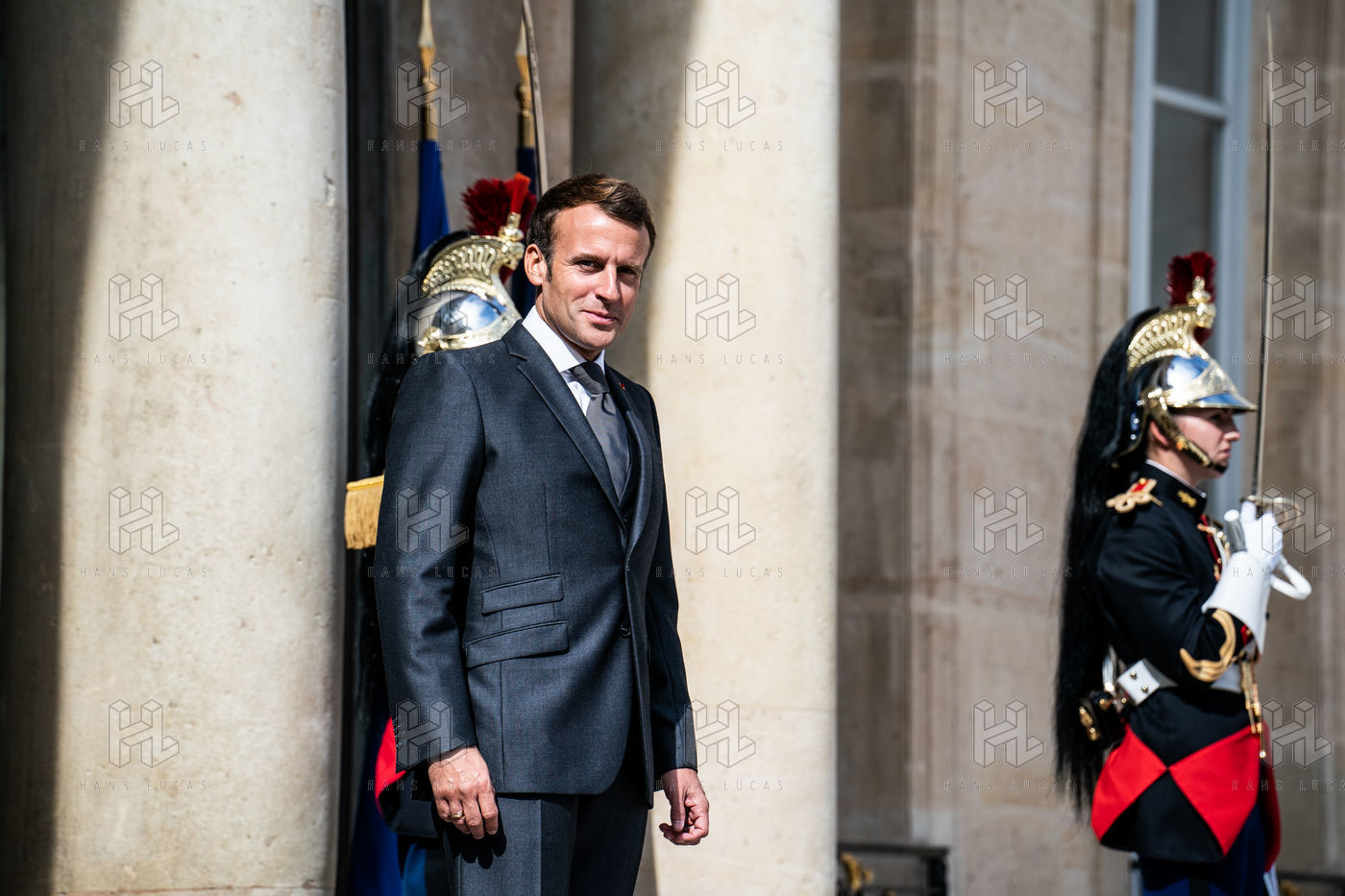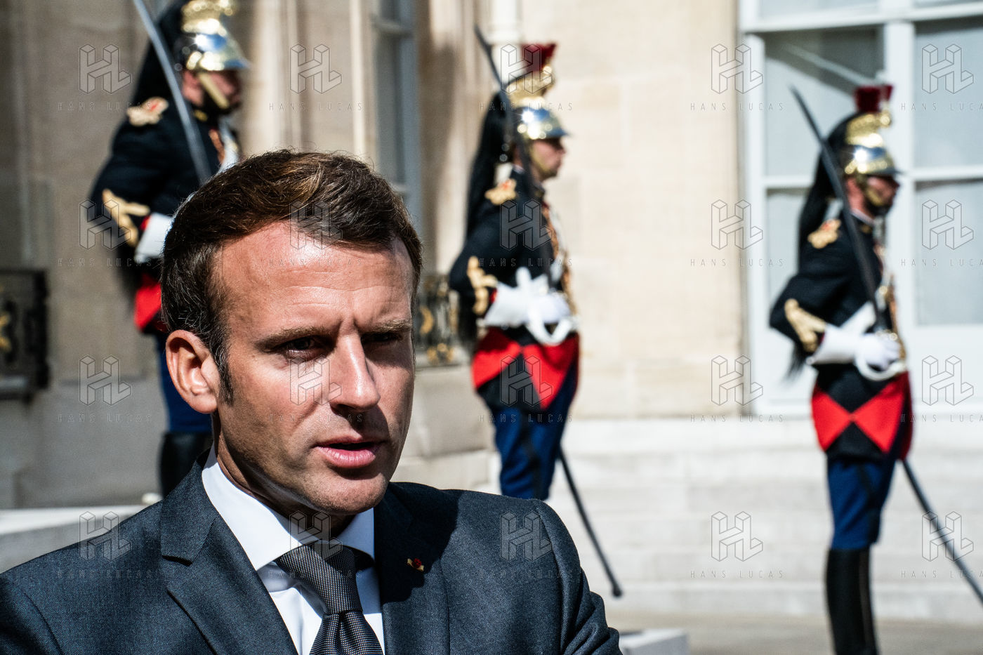 23 July 2020, Paris (75), FRANCE. Portrait of Emmanuel Macron, President of the French Republic, during the reception of Nicos ANASTASIADES, President of the Republic of Cyprus, at the Elysee Palace.