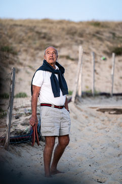 Alain Juppe, ancien Premier ministre français, regardant le coucher de soleil avec sa famille sur la plage des Estagnots à Soorts-Hossegor dans les Landes, 18 août 2020.