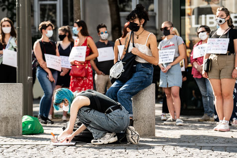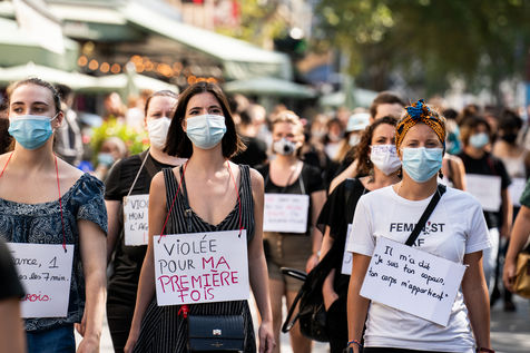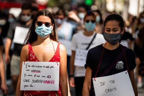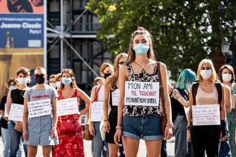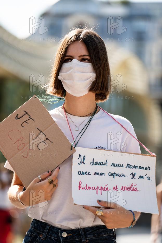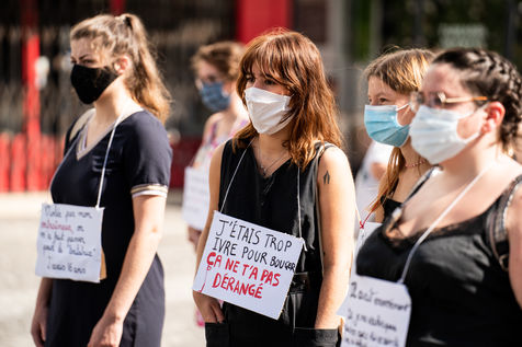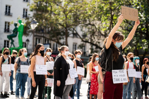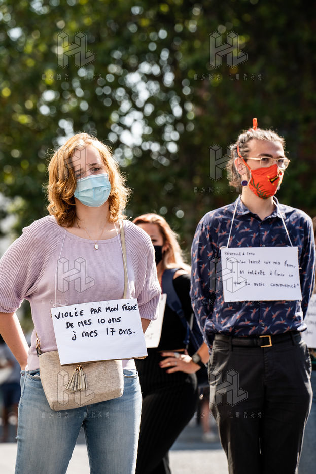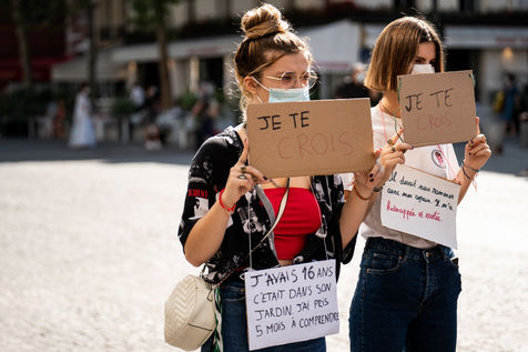 Manifestation "I believe in you" organized by Collages Feminicides Paris and Les Resilientes to allow victims to testify and free their speech, constantly questioned, Paris, September 13, 2020.
