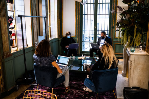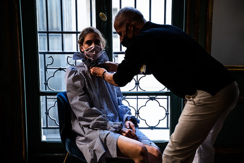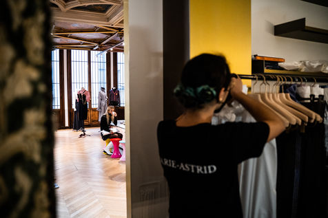 Présentation de la première collection de la nouvelle créatrice Prune Goldschmidt pendant la Semaine de la mode à Paris.