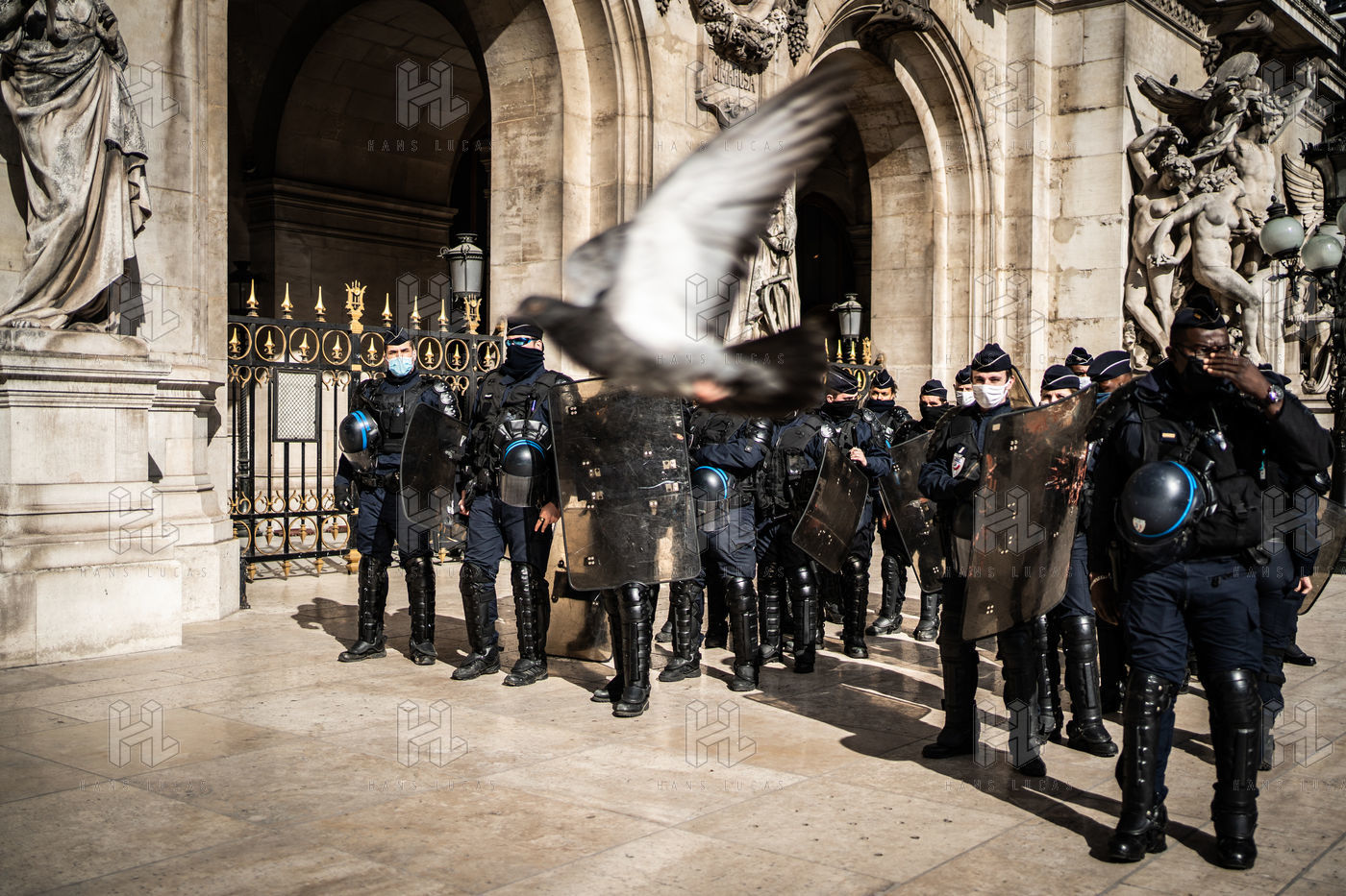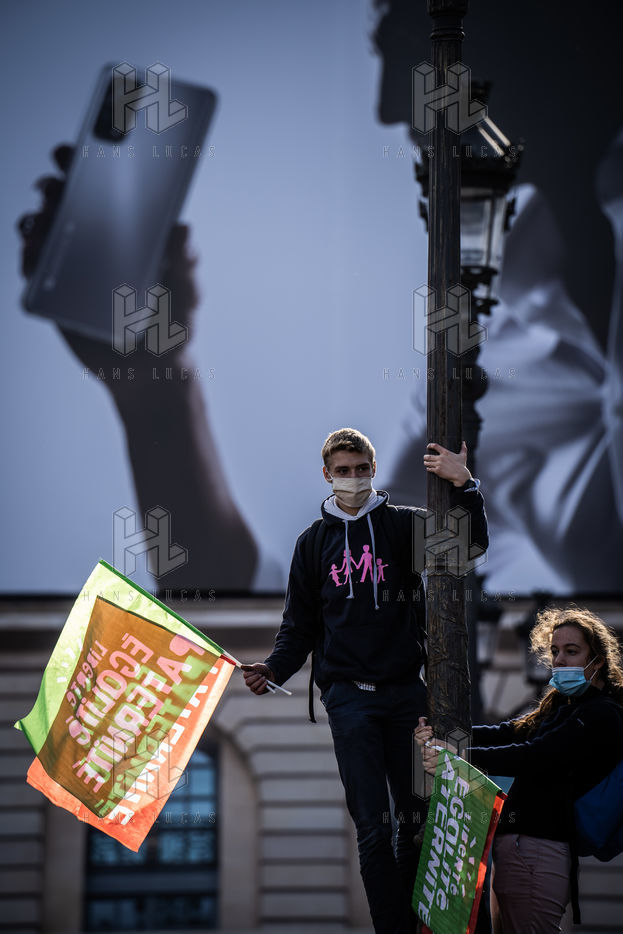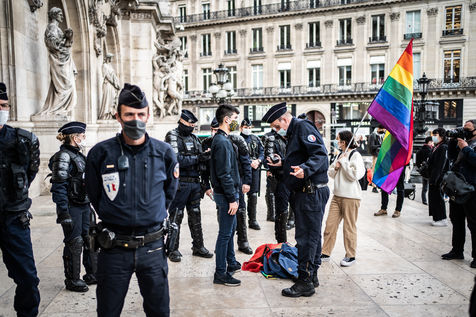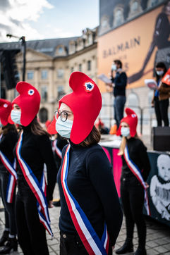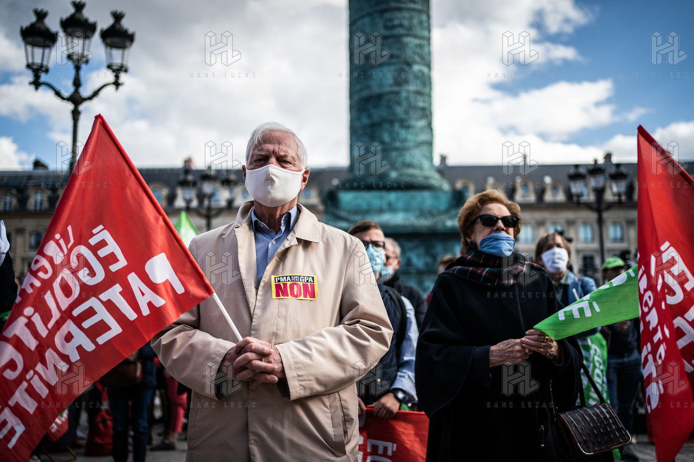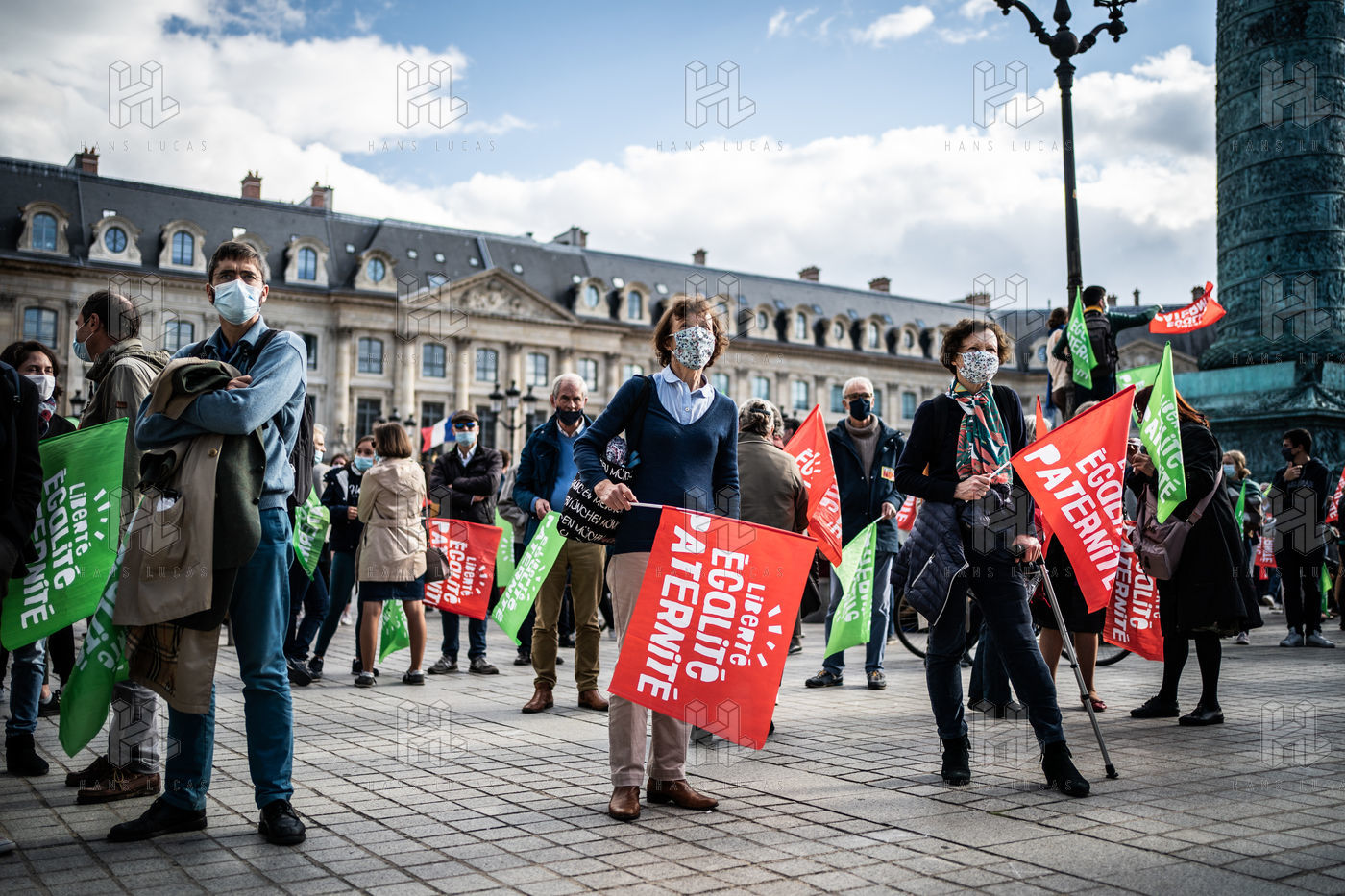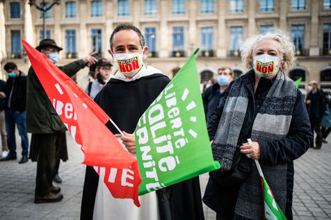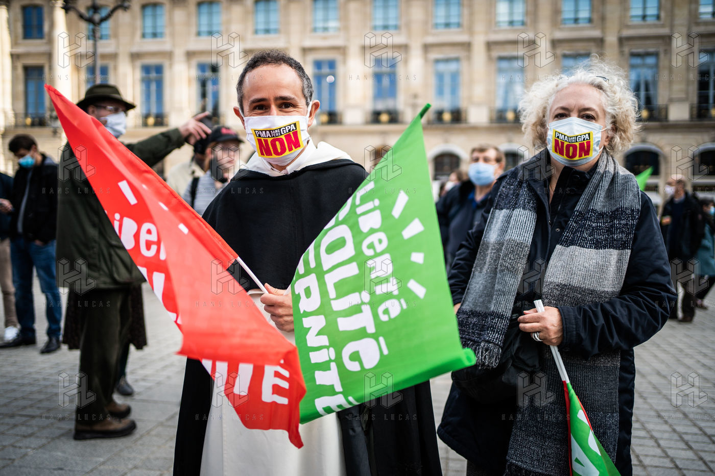 Opponents of the bioethics bill demonstrated on the Place Vendôme in front of the Ministry of Justice.