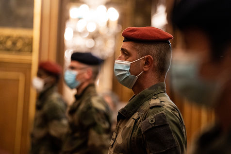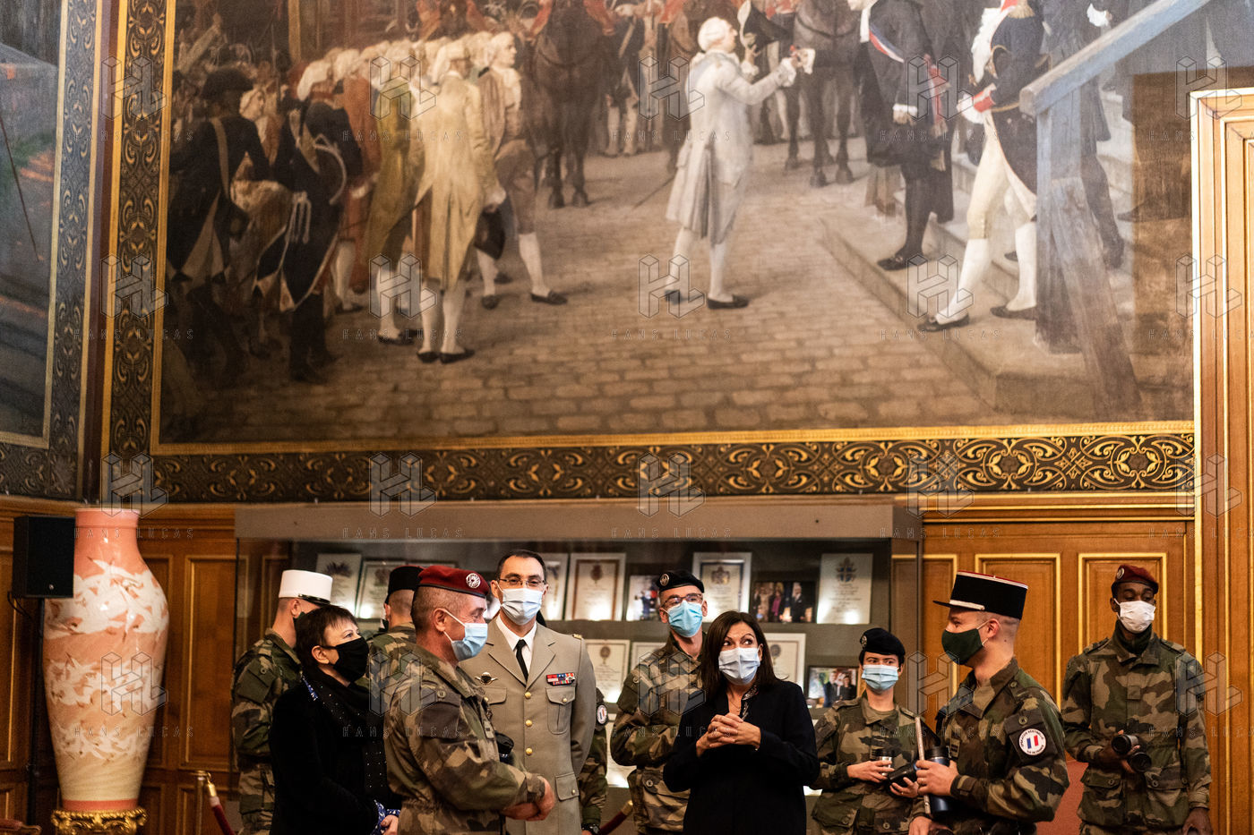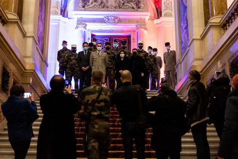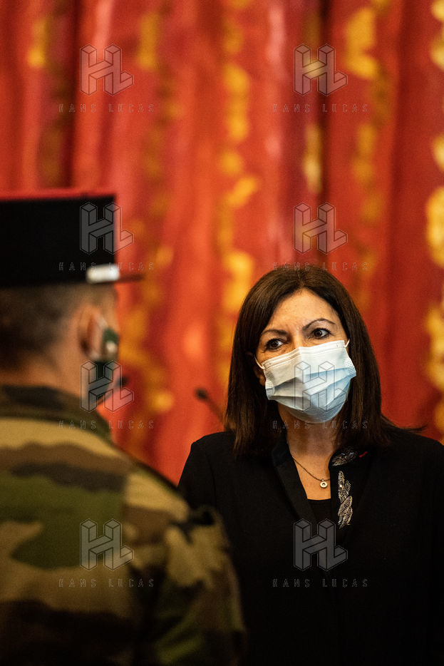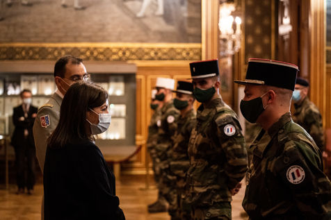 A l'occasion des fêtes fin d'année, Anne Hidalgo reçoit une délégation représentative des soldats de l'opération Sentinelle à l'Hôtel de Ville, pour les remercier de leur engagement pour la sécurité des Parisiennes et des Parisiens et leur remettre des cadeaux qui améliorent leur quotidien dans la capitale.