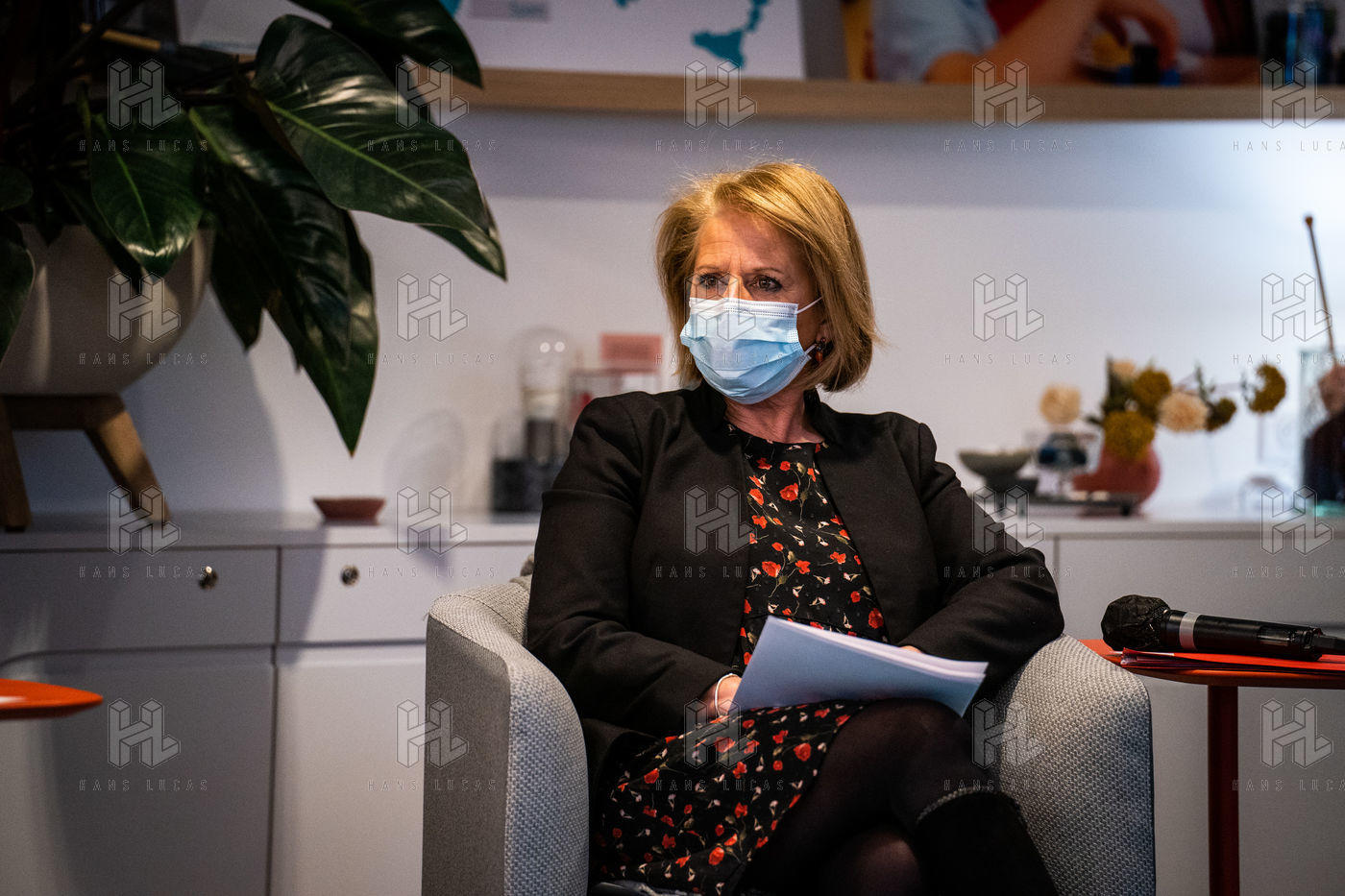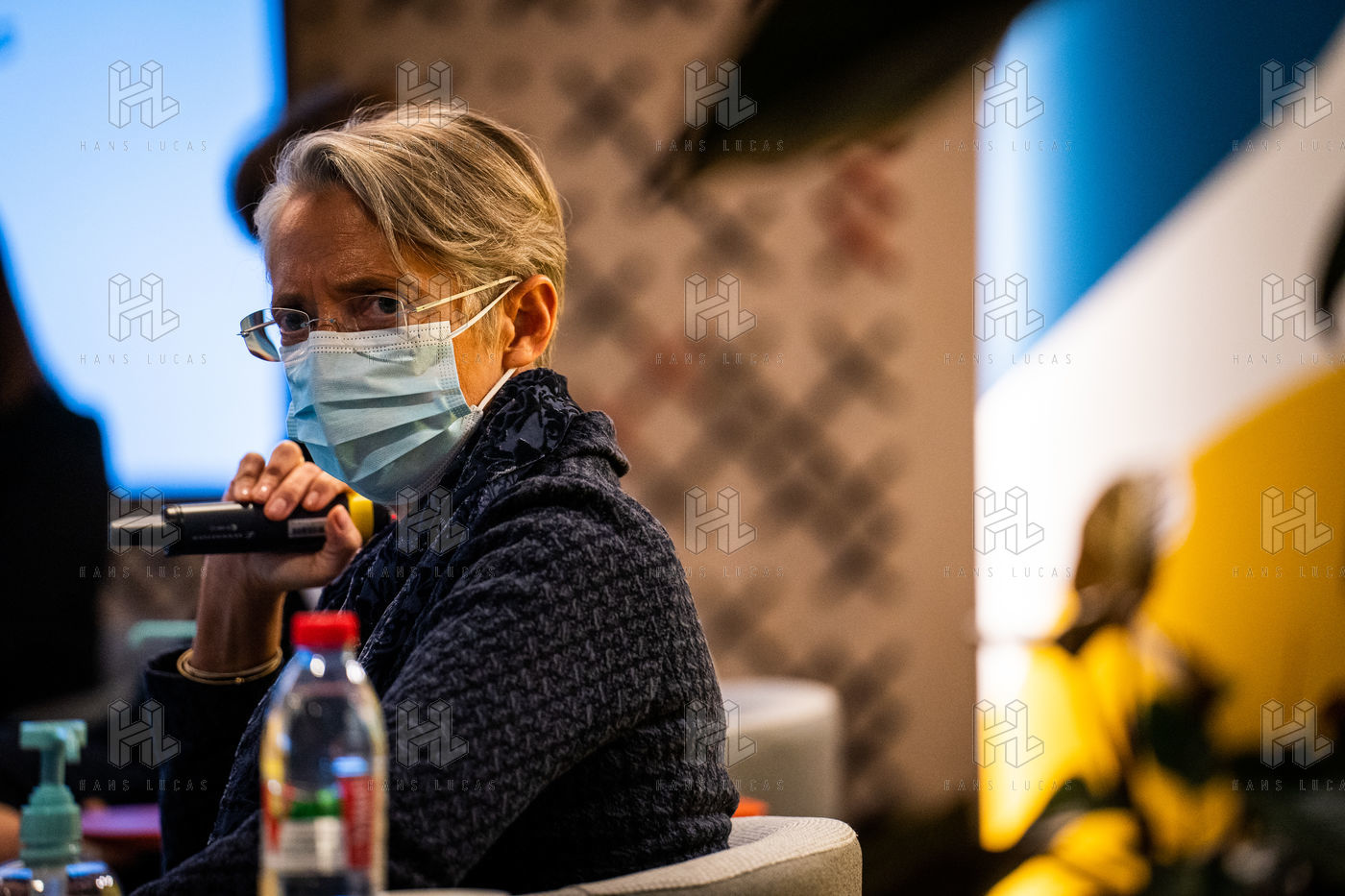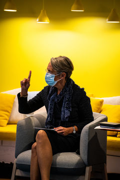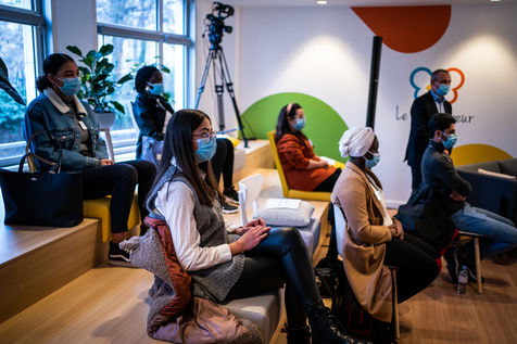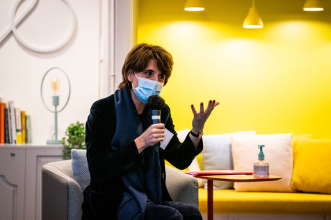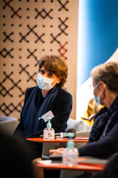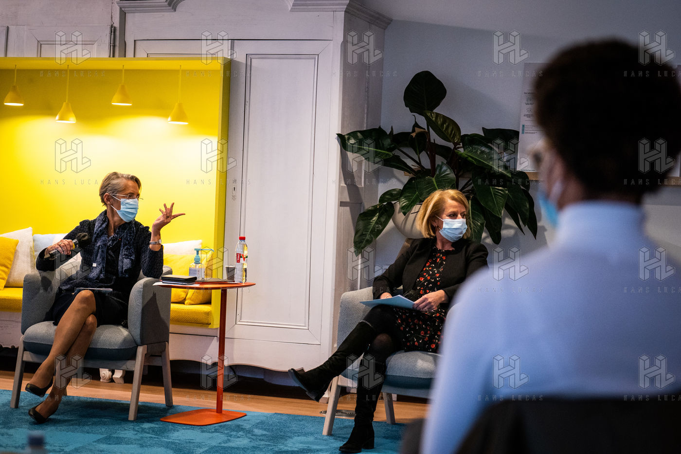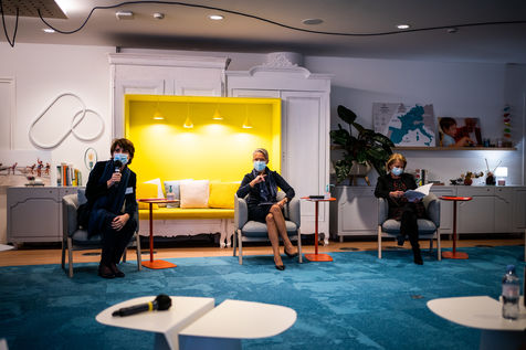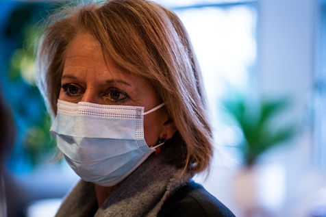 Elisabeth Borne ministre du Travail, de l'Emploi et de l'Insertion, Brigitte Bourguignon ministre déléguée auprès du ministre des Solidarités et de la Santé, chargée de l'Autonomie et Thibaut Guilluy haut-commissaire à l'emploi et à l'engagement des entreprises se rendent chez Korian, groupe européen du soin et de l'accompagnement des personnes âgées et fragiles, pour un entretien sur le thème de l'apprentissage, dispositif clé du plan « 1 jeune, 1 solution » à Paris (8ème arrondissement) Mardi 26 janvier 2021.