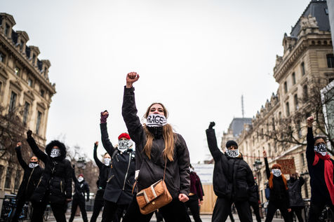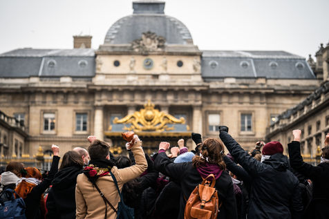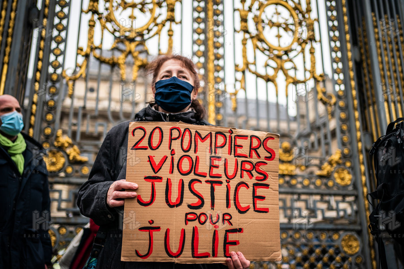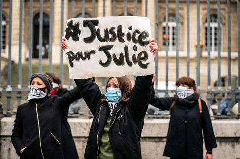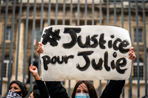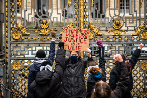 The Amazons met in front of the Palais de Justice in Paris where the magistrates of the Court of Cassation sit, who are due to meet to examine Julie's case, to demand the cassation of the decision by which the magistrates of the Court of Appeal of Versailles decided to amnesty 17 rape firefighters, and to worry the remaining 3 only for the crime of sexual assault on a minor.