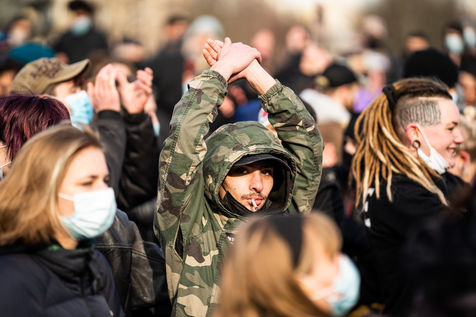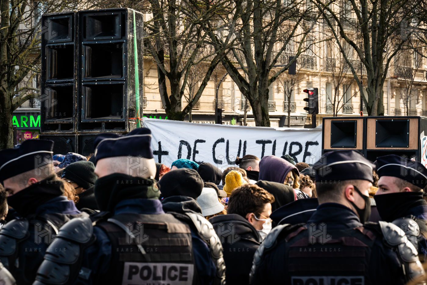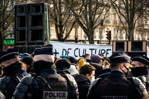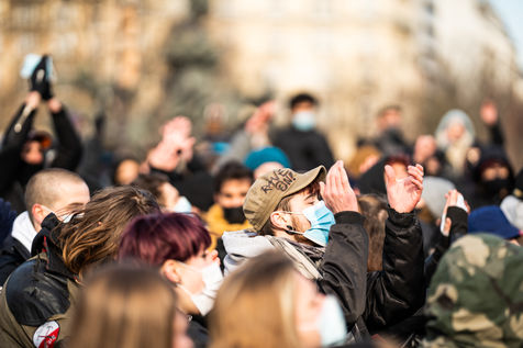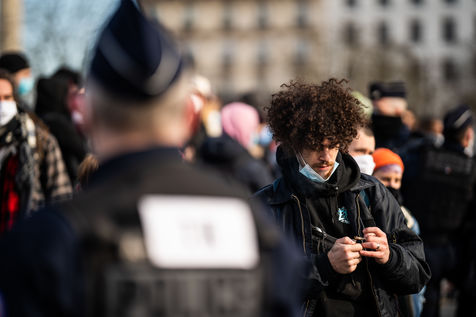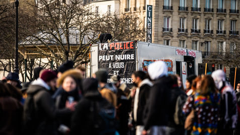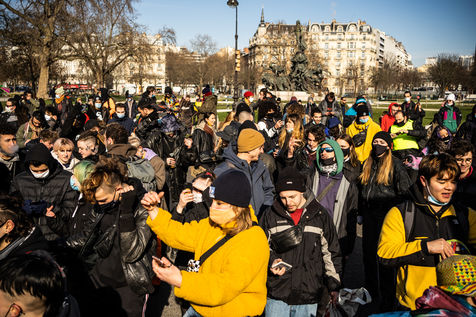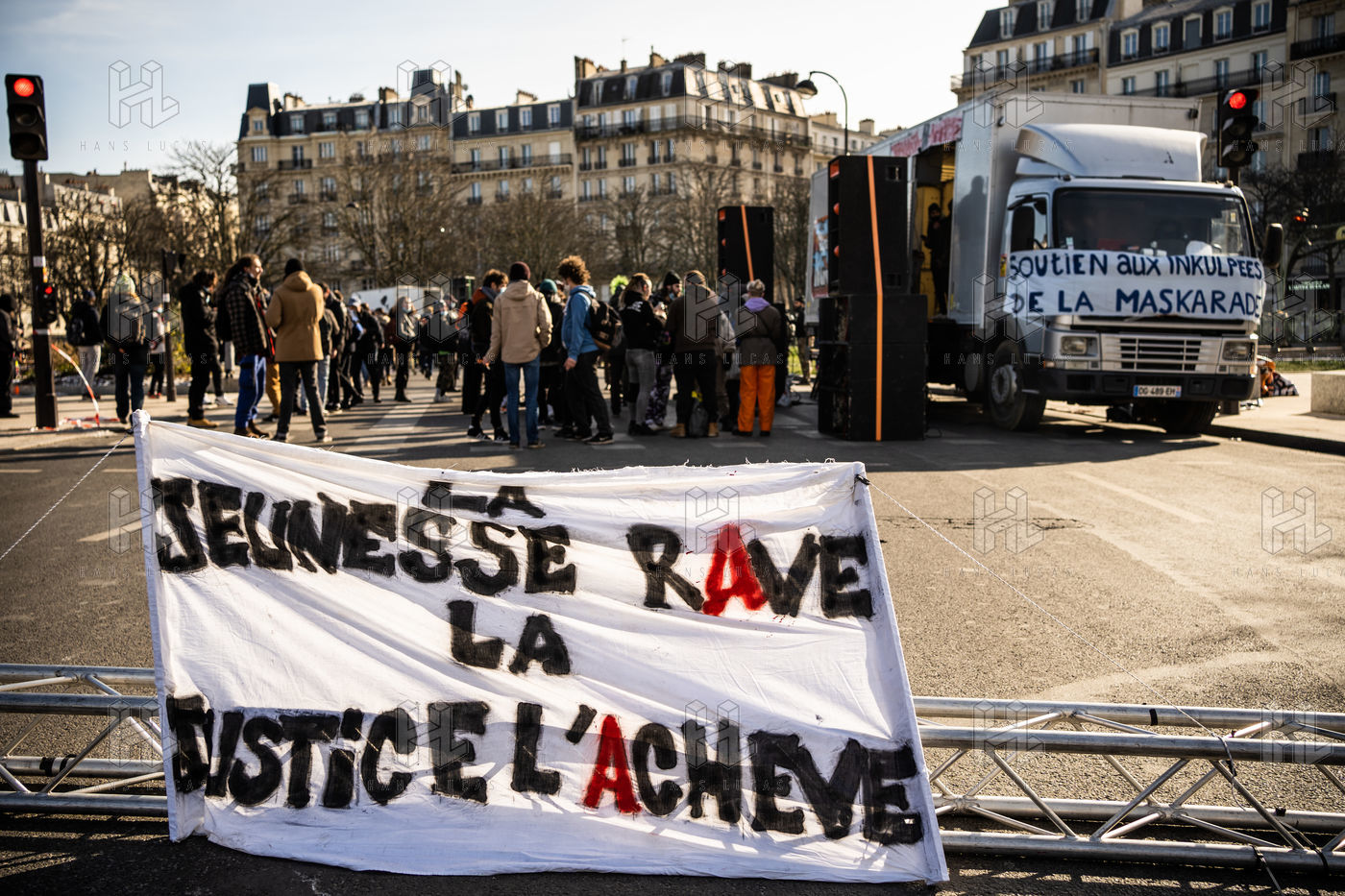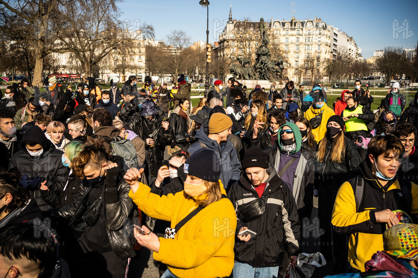 Manifestation en soutien à la Maskarade à Place de la Nation, Paris 13 février 2021.