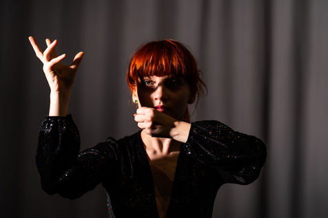 Portrait of Adèle Duportal, dancer and artistic director of the Plumea company, dancing in a rehearsal room during the closure of theaters and concert halls due to sanitary measures taken as part of the coronavirus epidemic in France, Paris 12 March 2021.