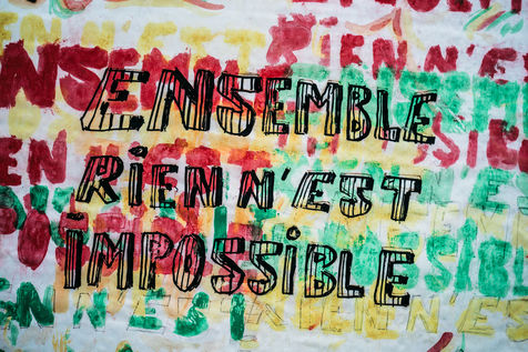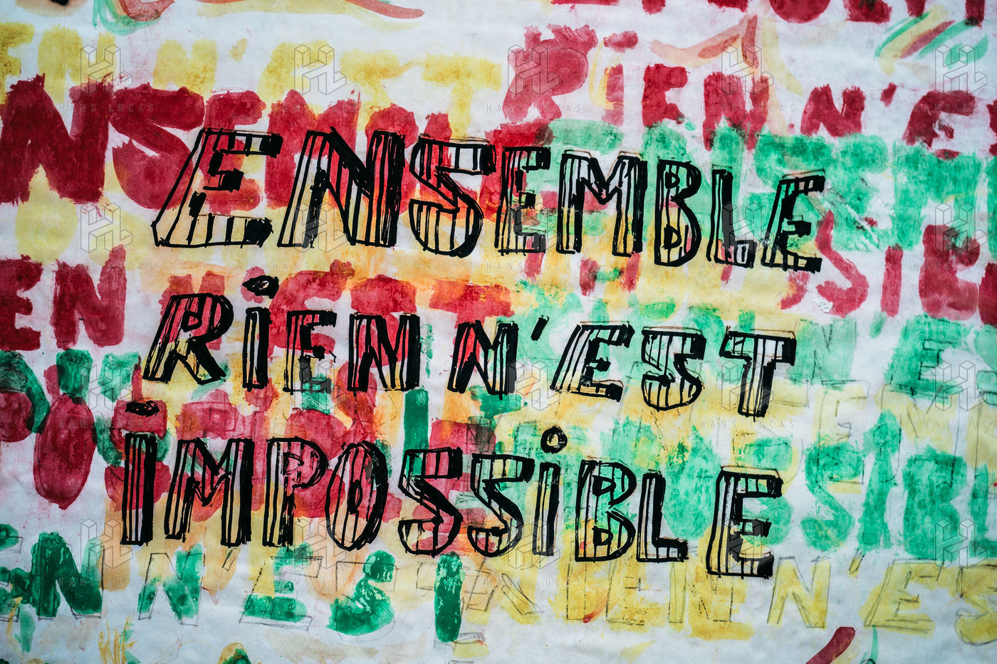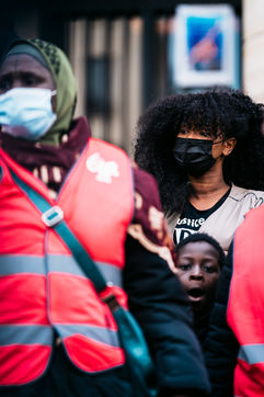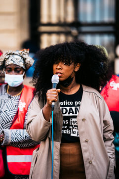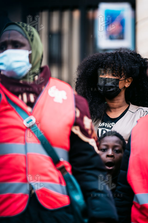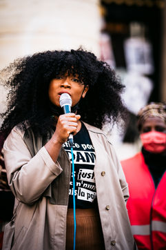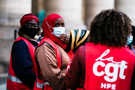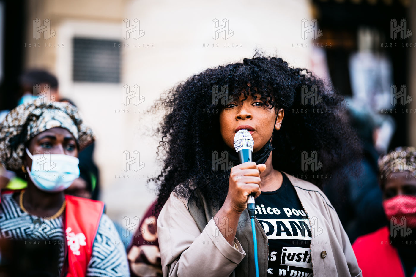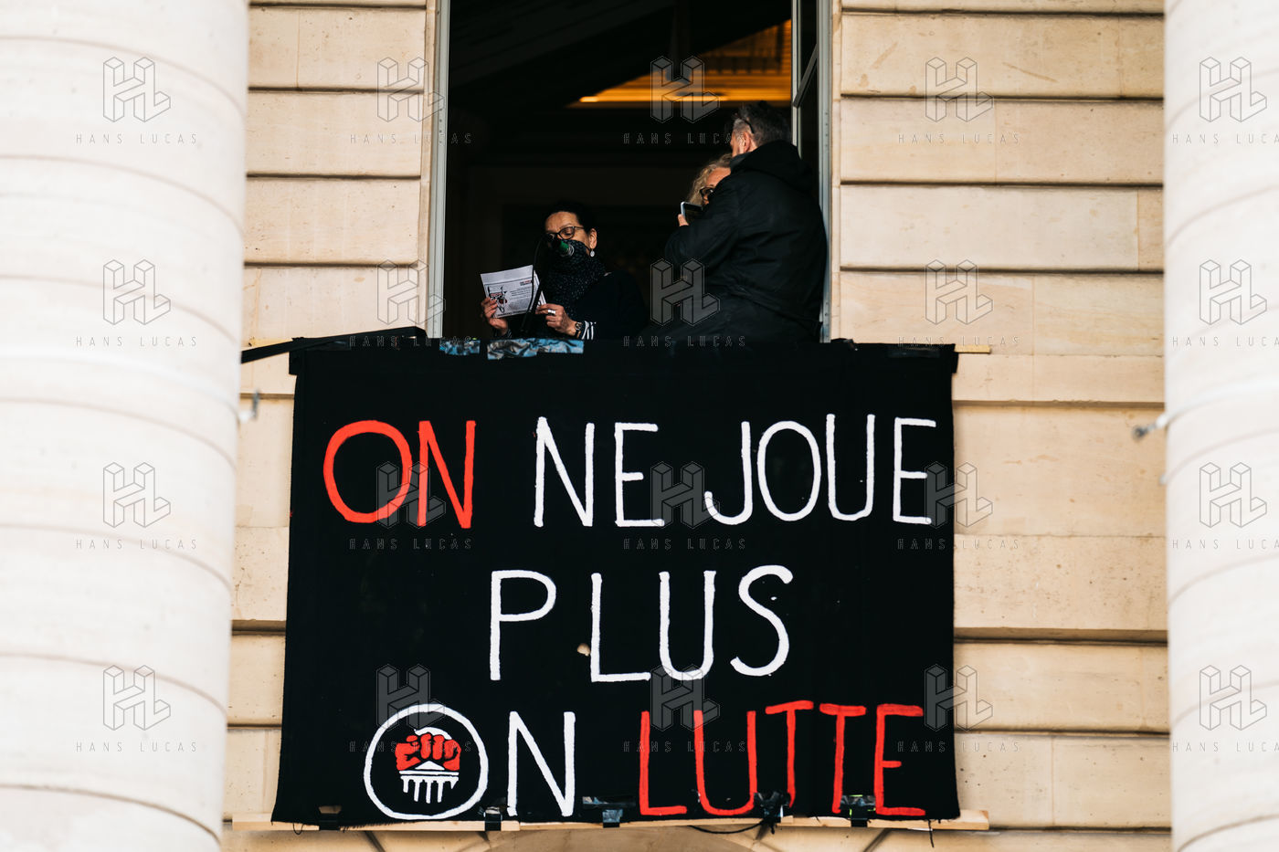 Gathering and speak in support of the occupation of the Odeon theater, fighting for all precarious people, at the Odeon Square, Paris April 17, 2021.