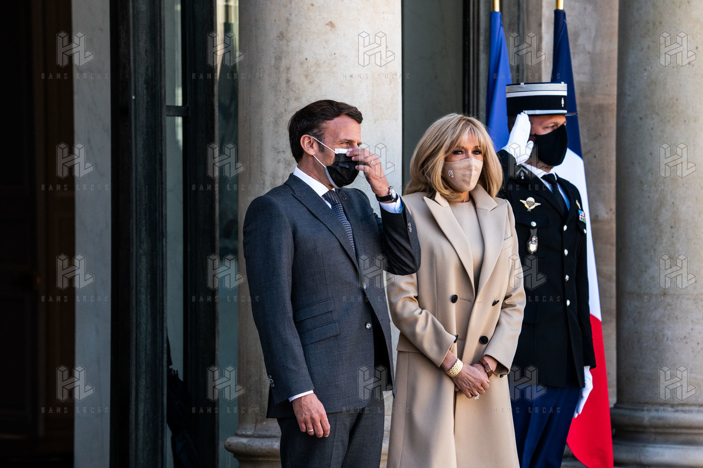 Working lunch with the President of the Federal Republic of Germany, Frank-Walter Steinmeier at the Elysée Palace, Saturday, April 24, 2021