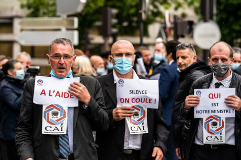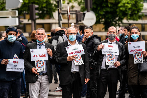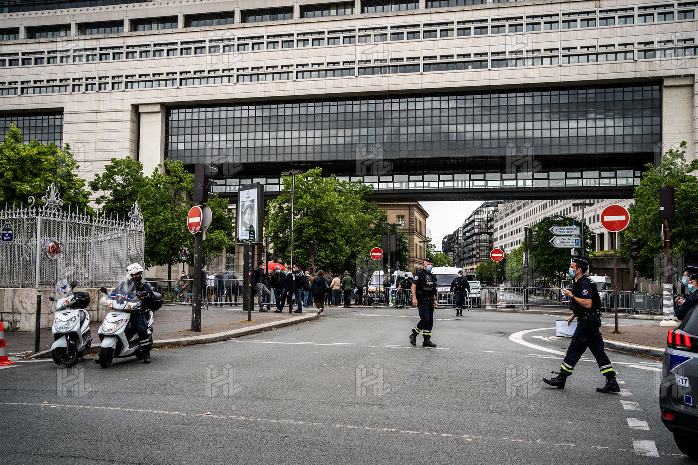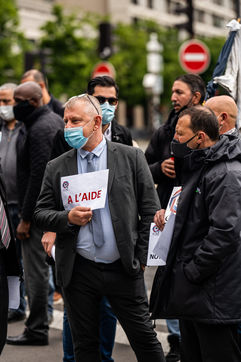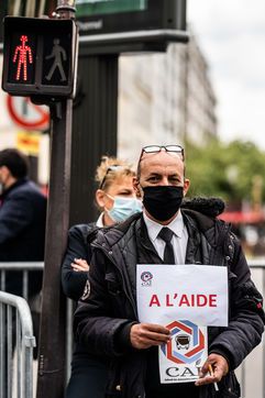 Manifestation organisée par le CAI ( Collectif des Autocaristes Indépendants ) pour demander de l'aide aux portes du ministère de l'économie et des finances de la République française, Paris 26 mai 2021.