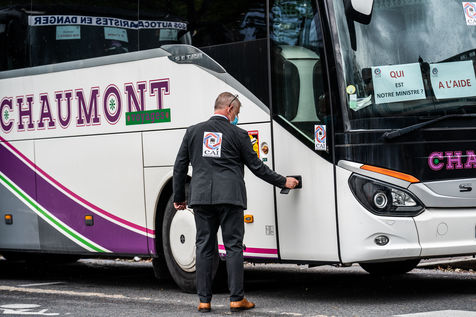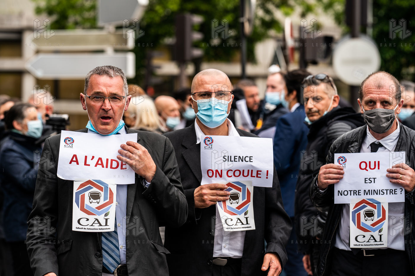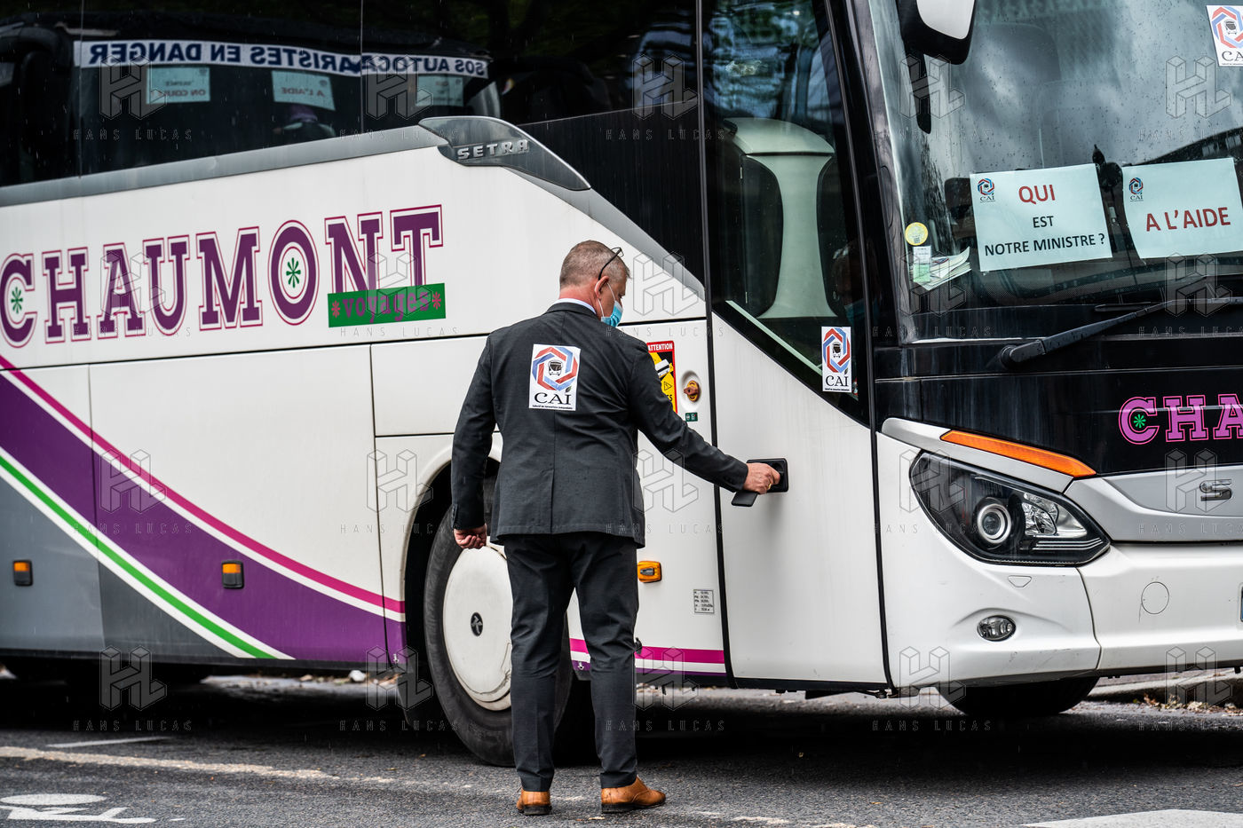 Demonstration organized by the CAI ( Independent Bus Operators Collective ) to ask for help at the doors of the Ministry of Economy and Finance of the French Republic, Paris 26 May 2021.