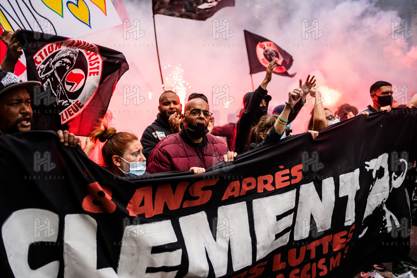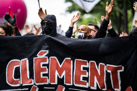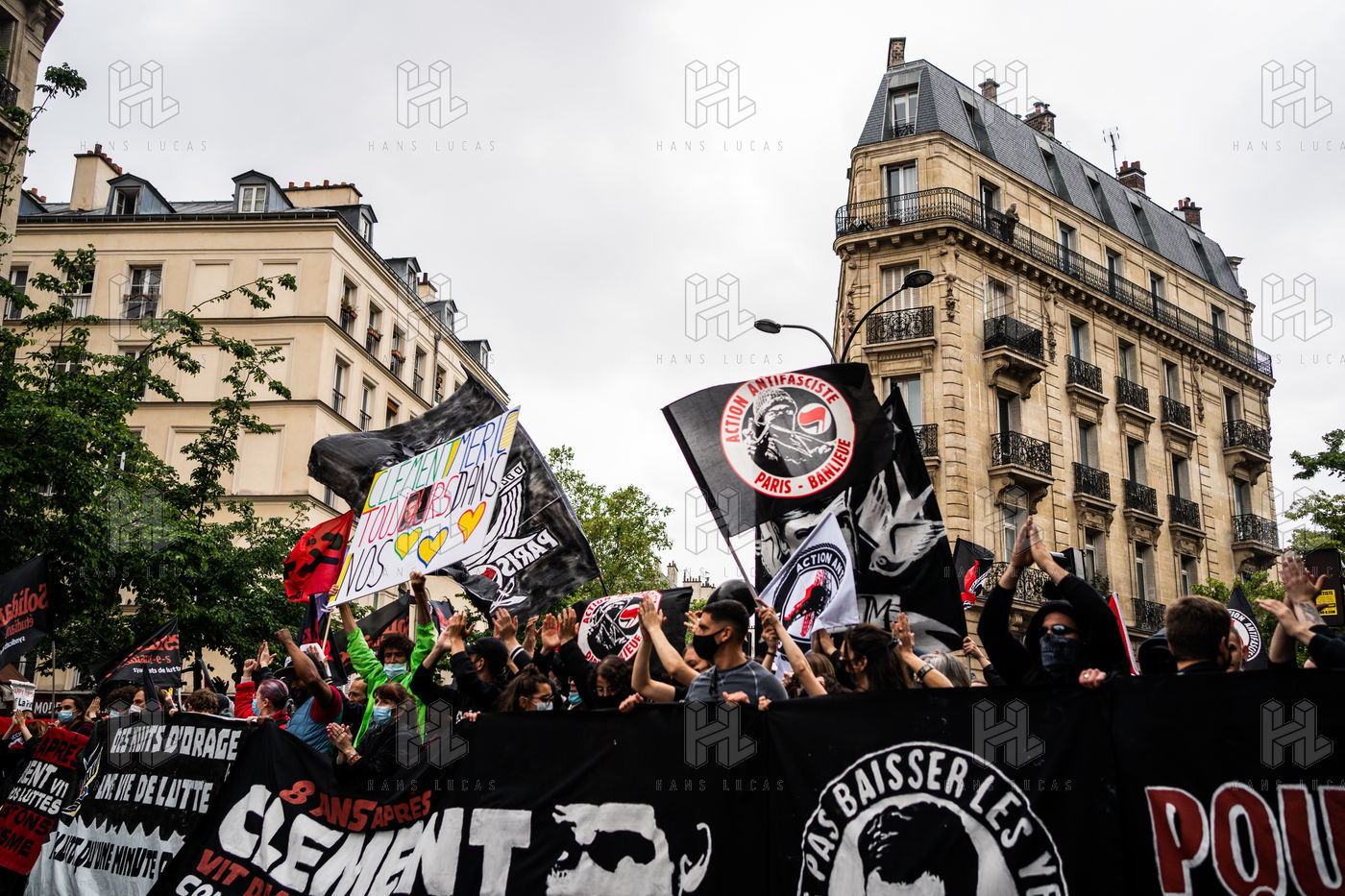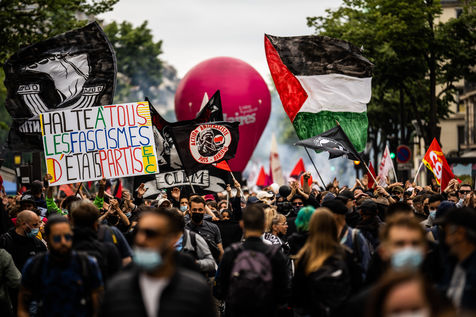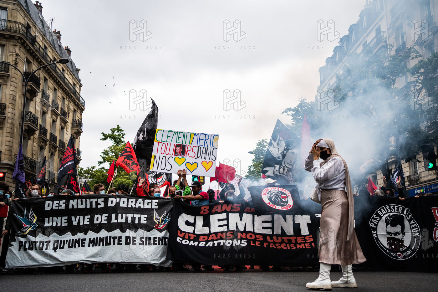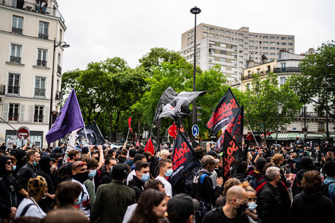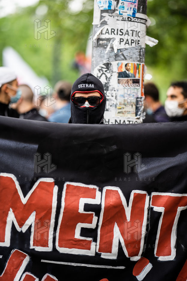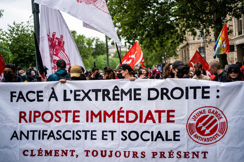 Manifestation antifasciste en hommage à Clément Méric, militant antifasciste mort à la suite d'une rixe entre un groupe de skinheads d'extrême droite nationaliste et un groupe d?extrême gauche antifasciste, Paris 05 juin 2021.
