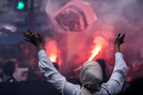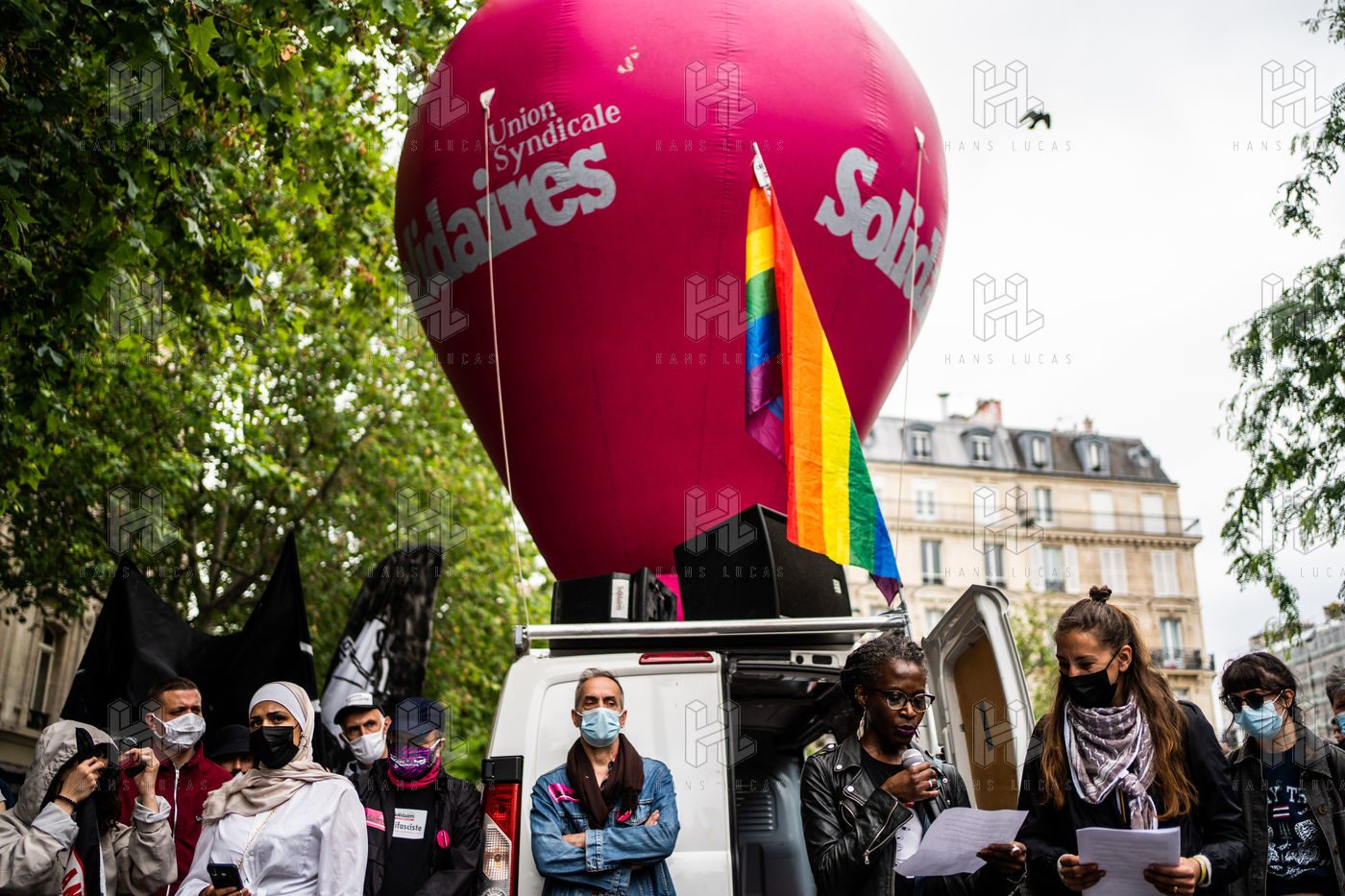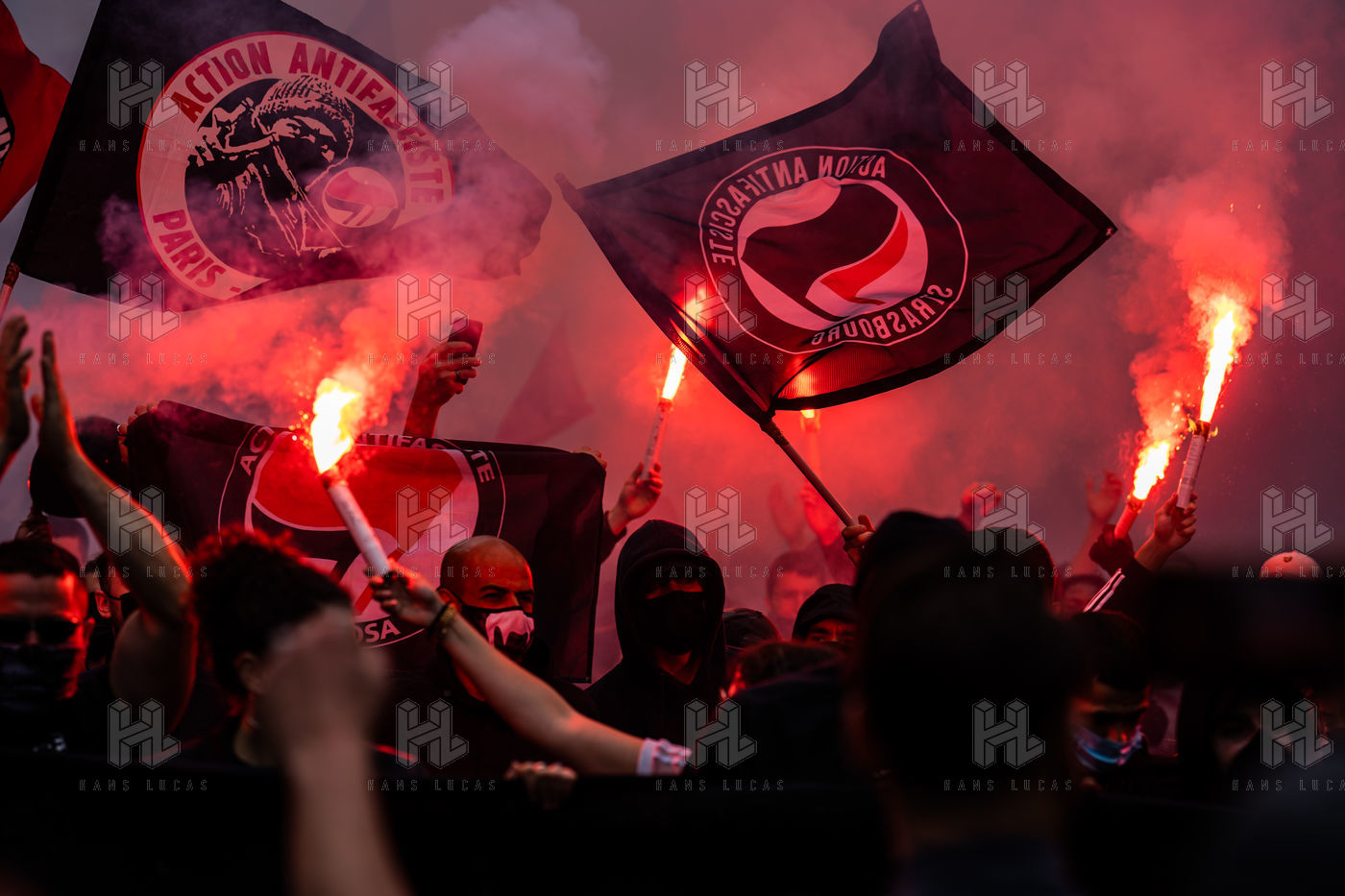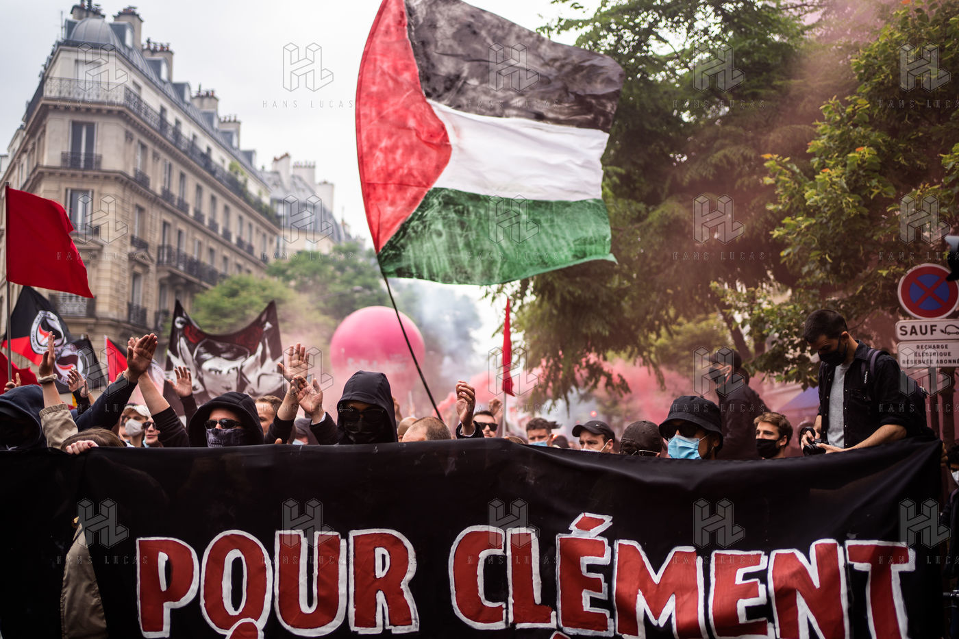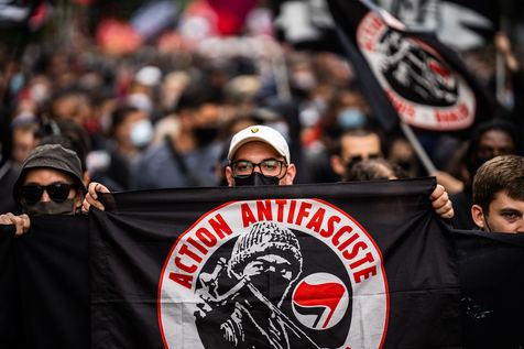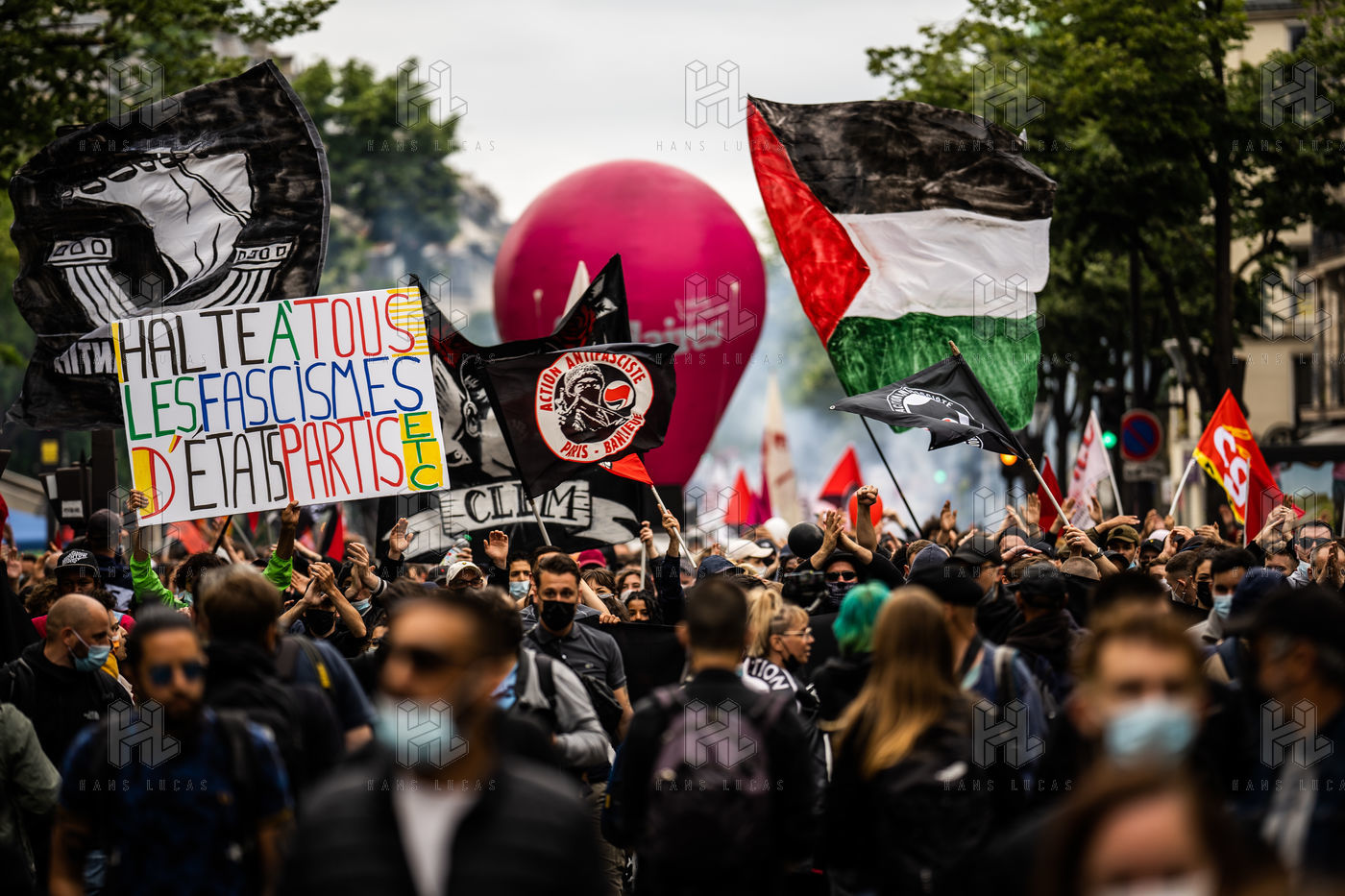 Manifestation antifasciste en hommage à Clément Méric, militant antifasciste mort à la suite d'une rixe entre un groupe de skinheads d'extrême droite nationaliste et un groupe d?extrême gauche antifasciste, Paris 05 juin 2021.