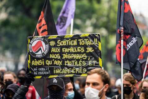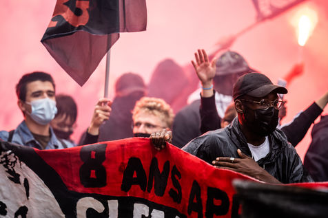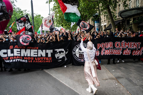 Antifascist demonstration in honor of Clément Méric, an antifascist activist who died following a brawl between a group of far-right nationalist skinheads and a group of far-left antifascists, Paris June 05, 2021.