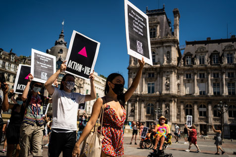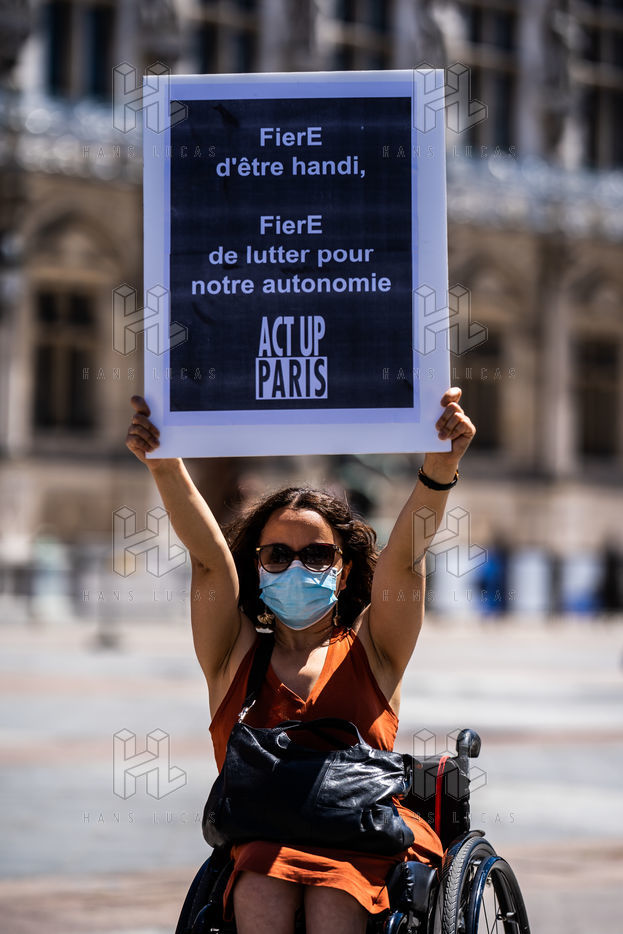 Rally organized by Act Up-Paris for the ADA (adult with disabilities allowance) at the Hôtel de Ville de Paris, Paris 13 June 2021.