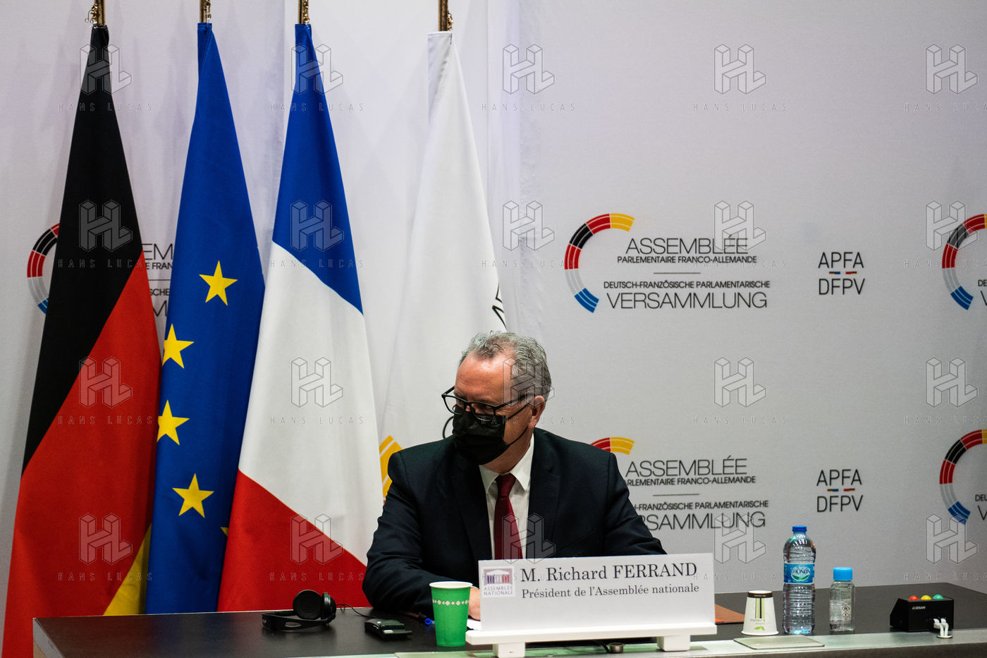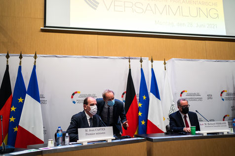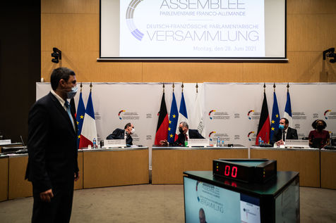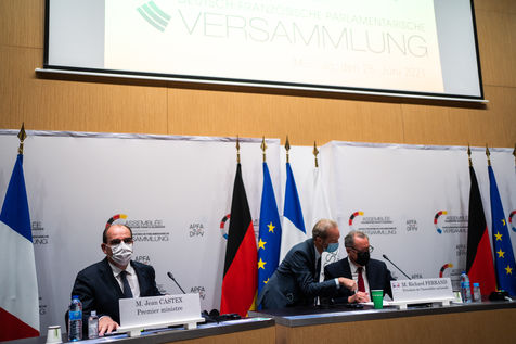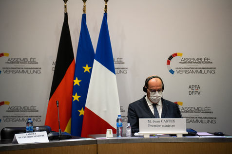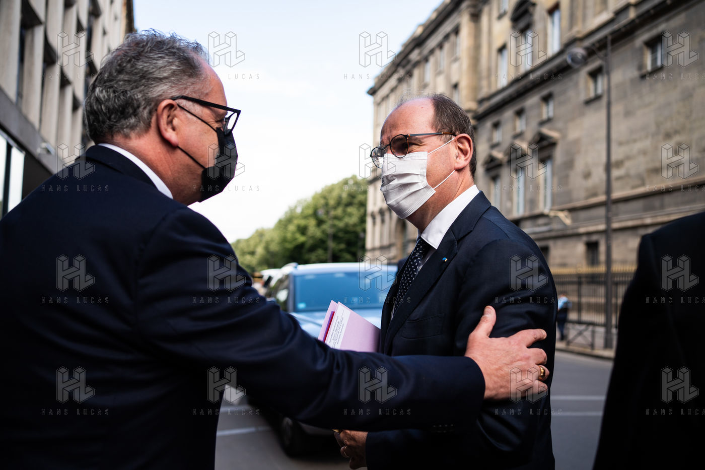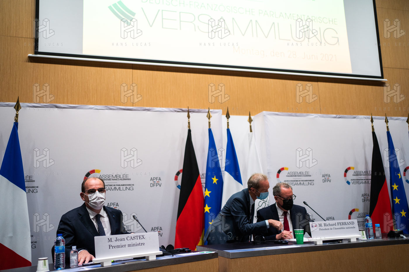 Jean Castex, Prime Minister, visits the National Assembly to take part in the plenary meeting of the Franco-German parliamentary assembly, by videoconference with the German Chancellor Angela Merkel, Paris, June 28, 2021.
