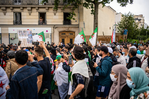March of the Algerian dispora in Paris. This demonstration, called by activists and organizations supporting the Hirak, coincides with the 59th anniversary of Independence Day. It is organized in support of the popular movement and for a democratic transition in Algeria.