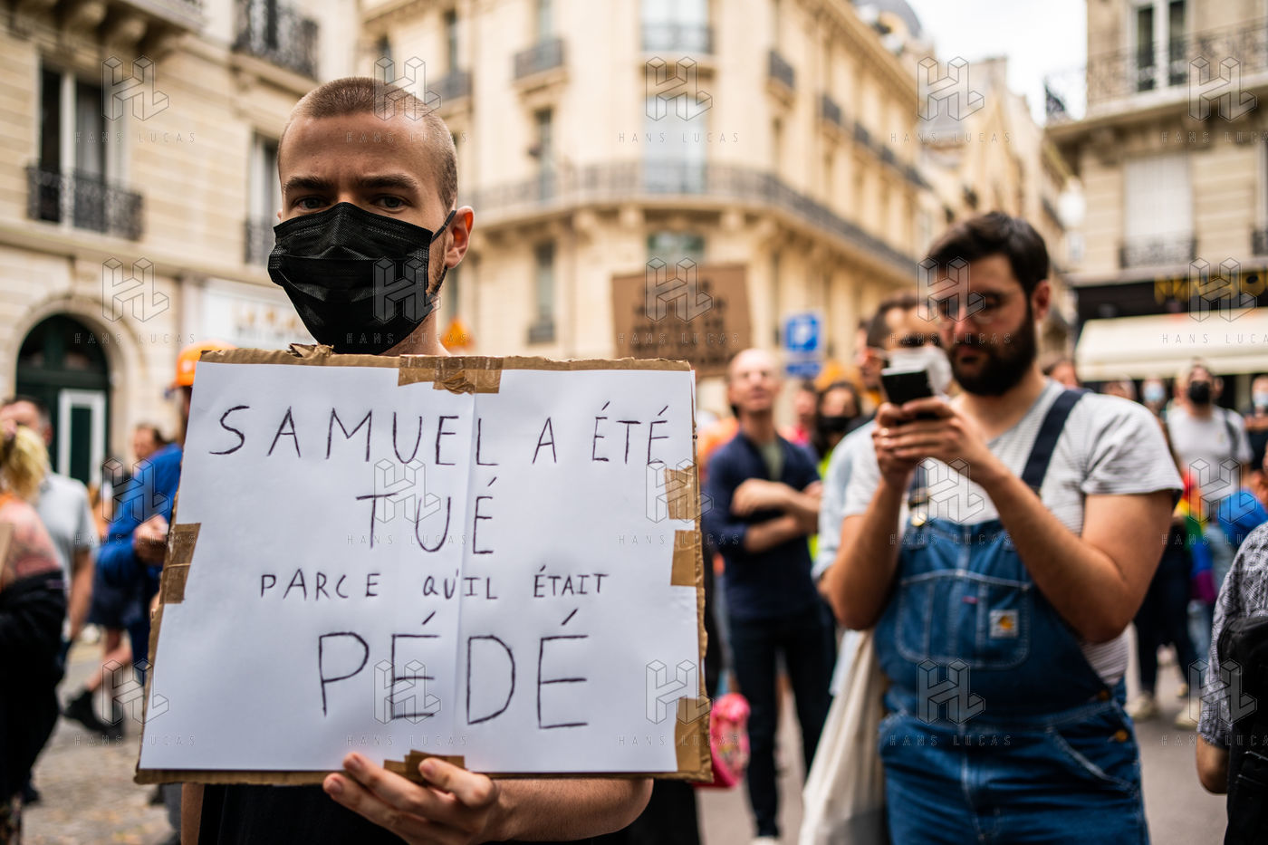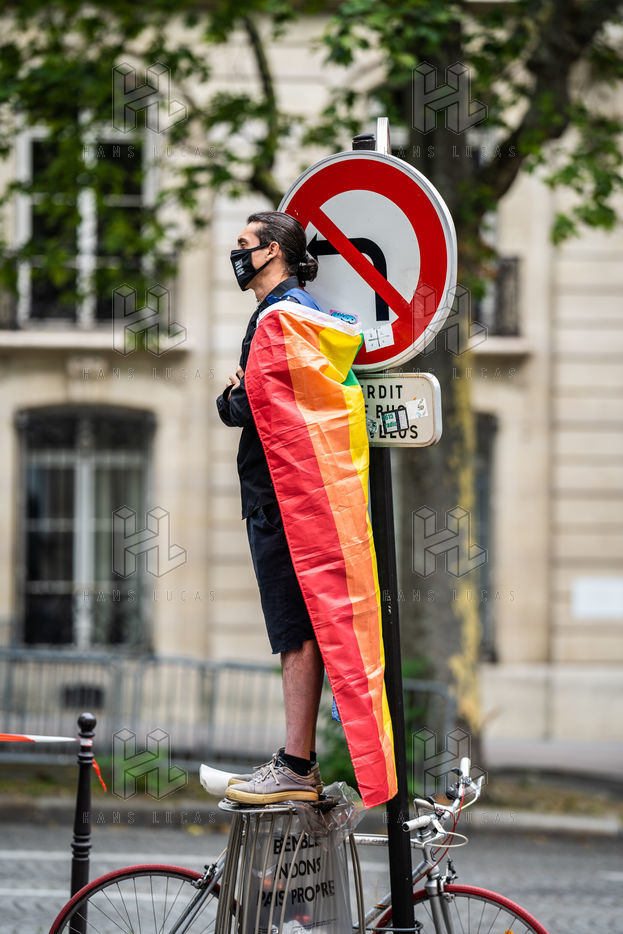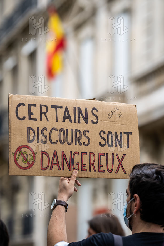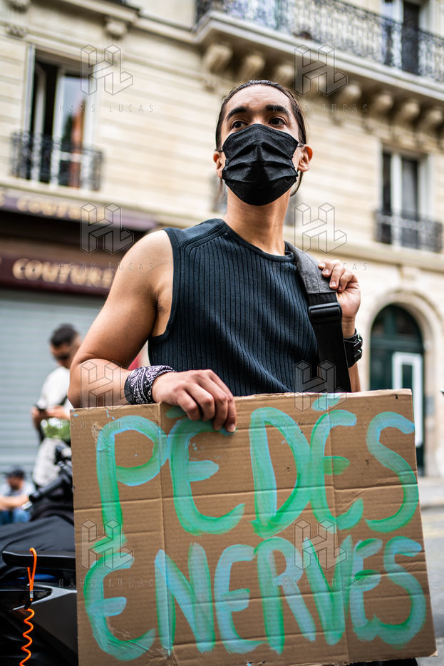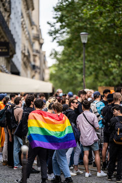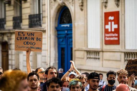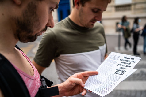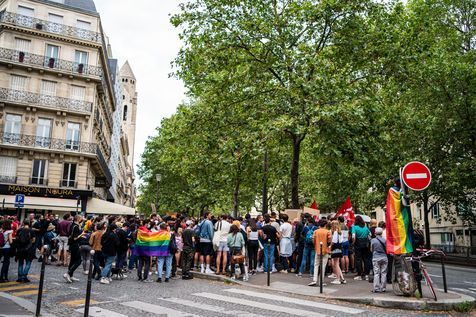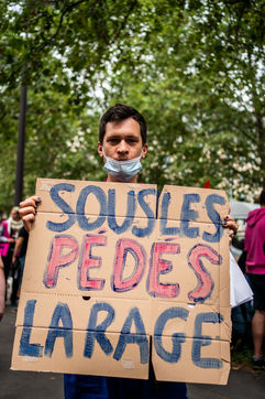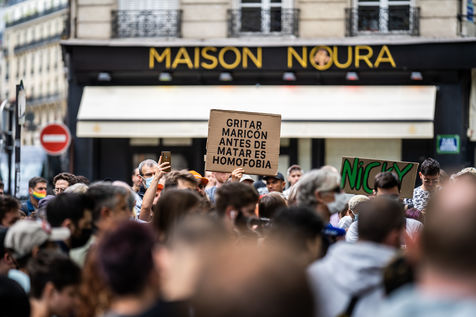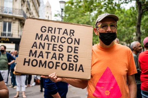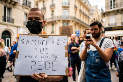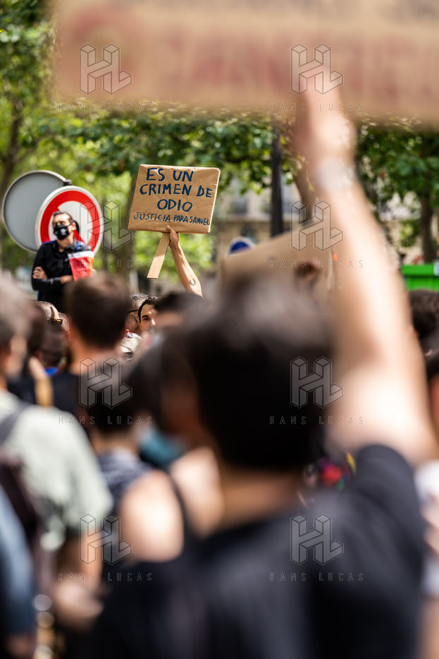 Rally against homophobia in homage to Samuel Luiz with the motto "We don't want to die because we are faggots", on the Pierre Brisson square in front of the Spanish embassy in Paris, Paris 11 July 2021.