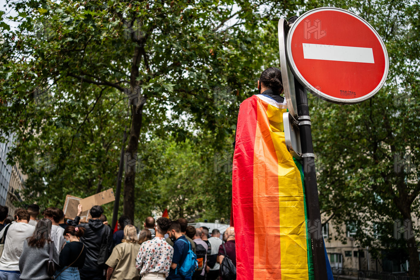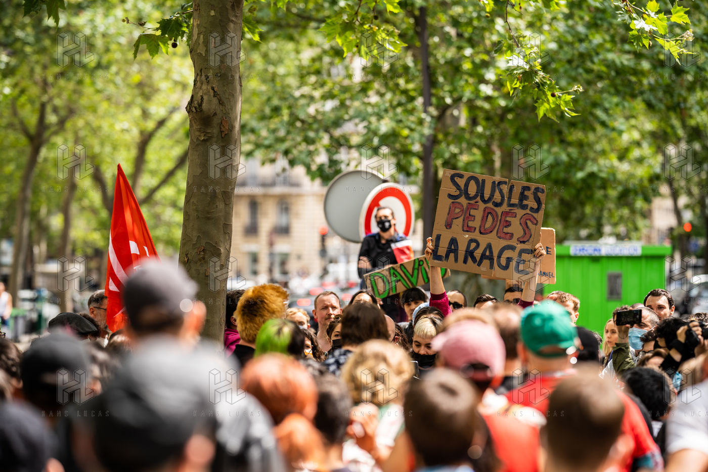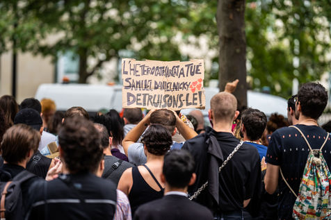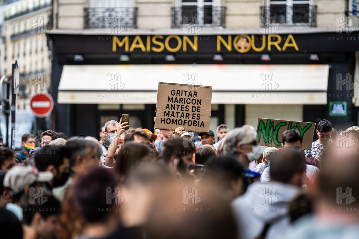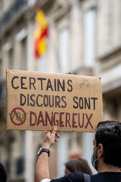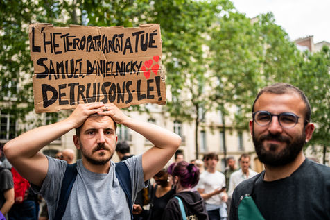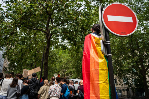 Rally against homophobia in homage to Samuel Luiz with the motto "We don't want to die because we are faggots", on the Pierre Brisson square in front of the Spanish embassy in Paris, Paris 11 July 2021.