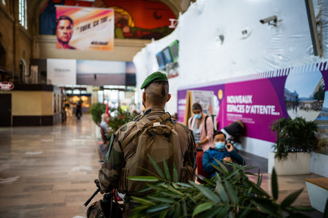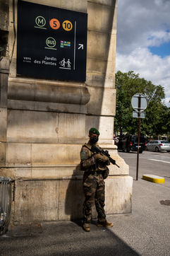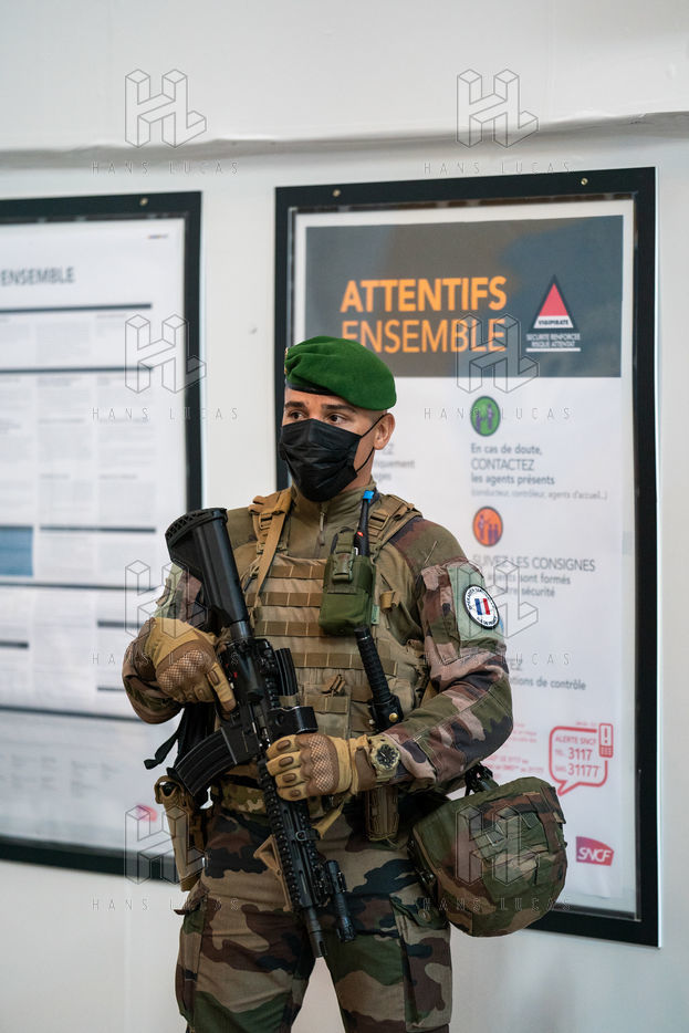 Soldiers of Sentinel operation at the Austerlitz station, as part of the fight against terrorism, Paris July 29, 2021.