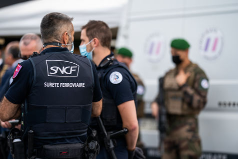 Soldats de l'opération Sentinelle à la station d'Austerlitz, dans le cadre de la lutte contre le terrorisme, Paris 29 juillet 2021.