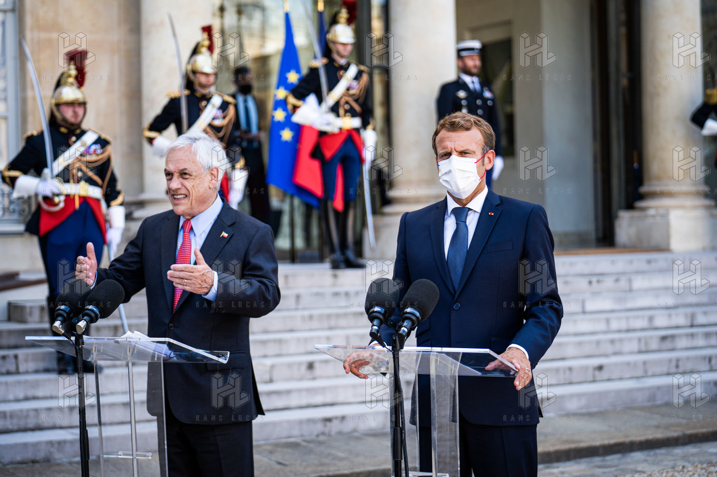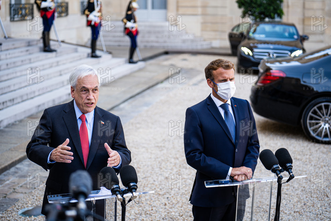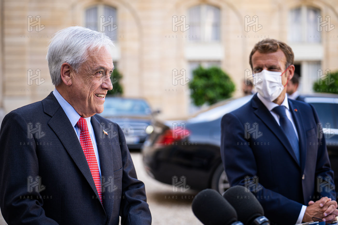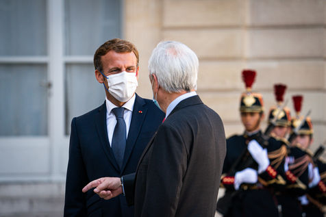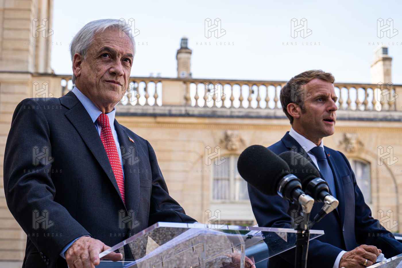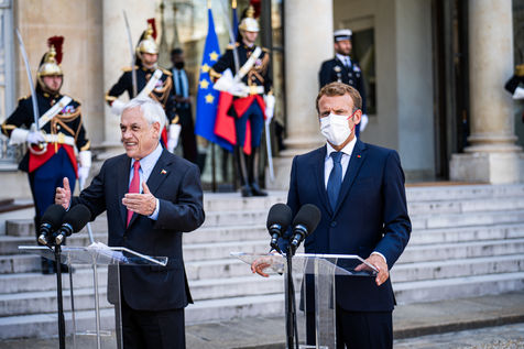 Interview of Emmanuel Macron, President of the French Republic, and Sebastián Piera, President of the Republic of Chile, at the Élysée Palace.