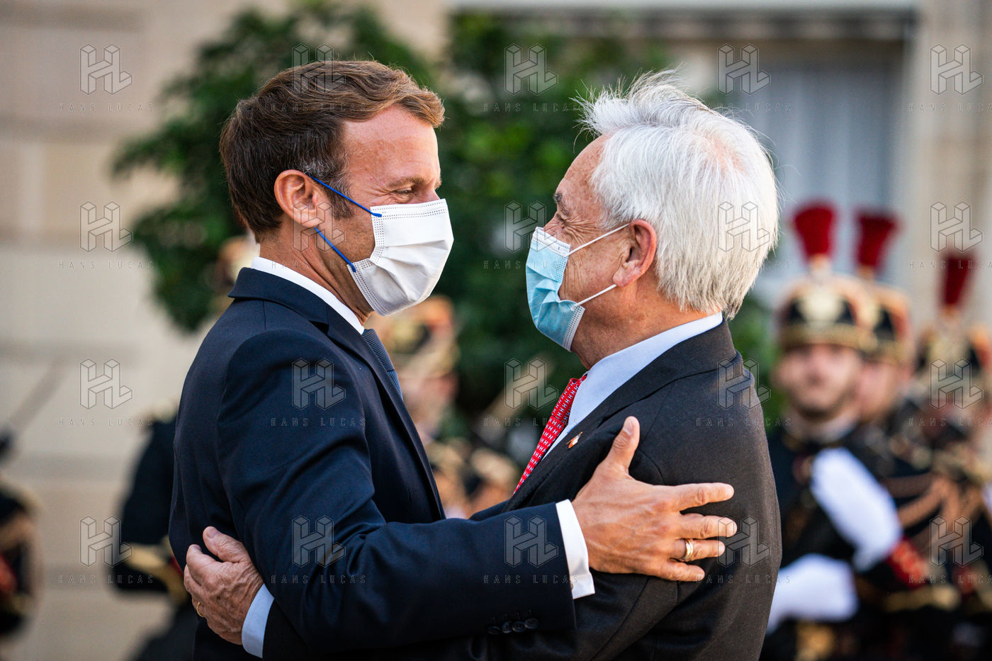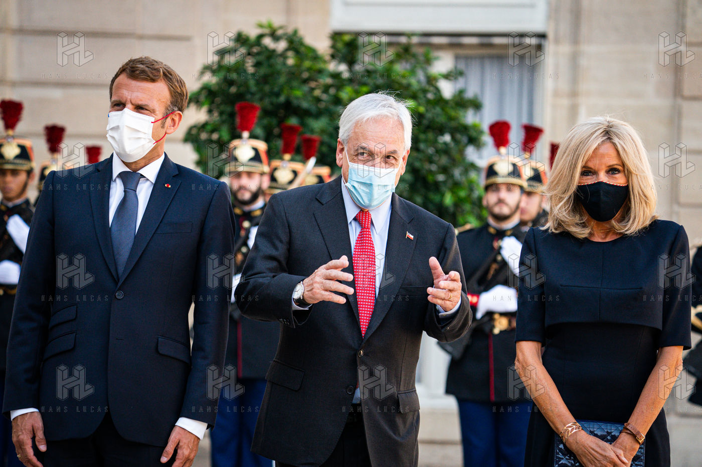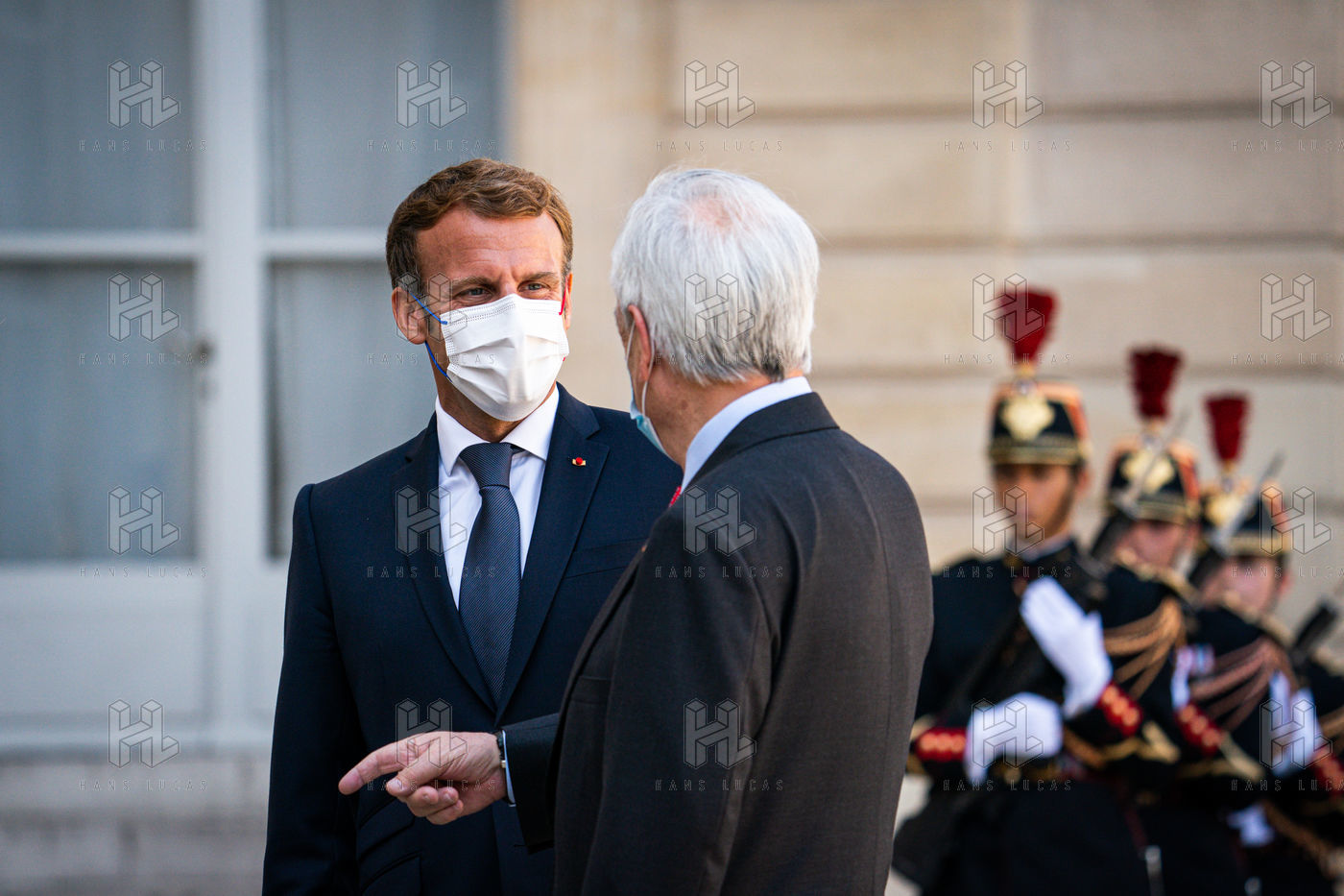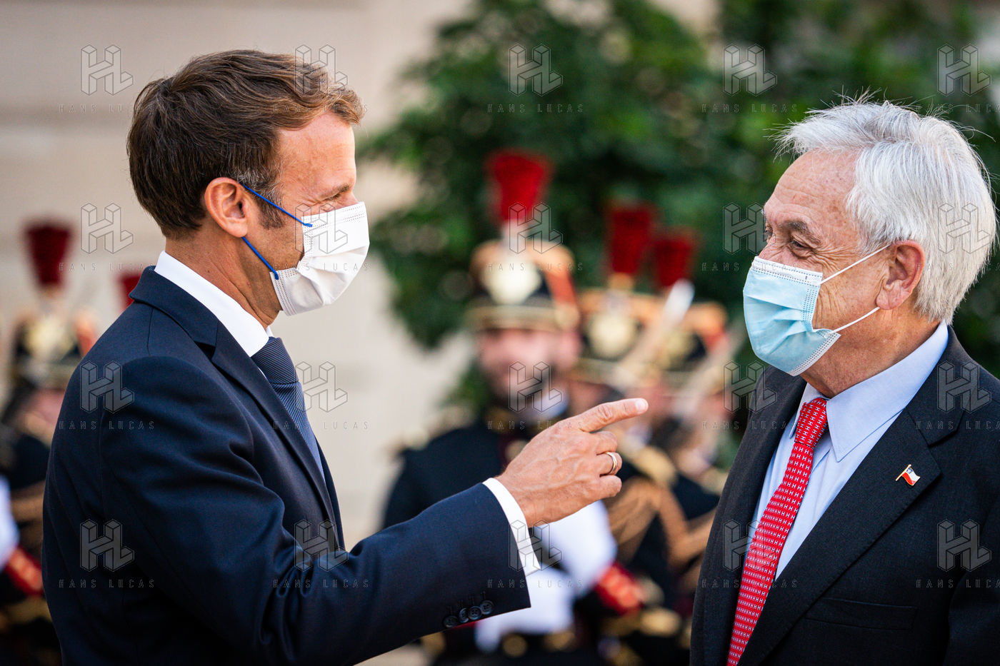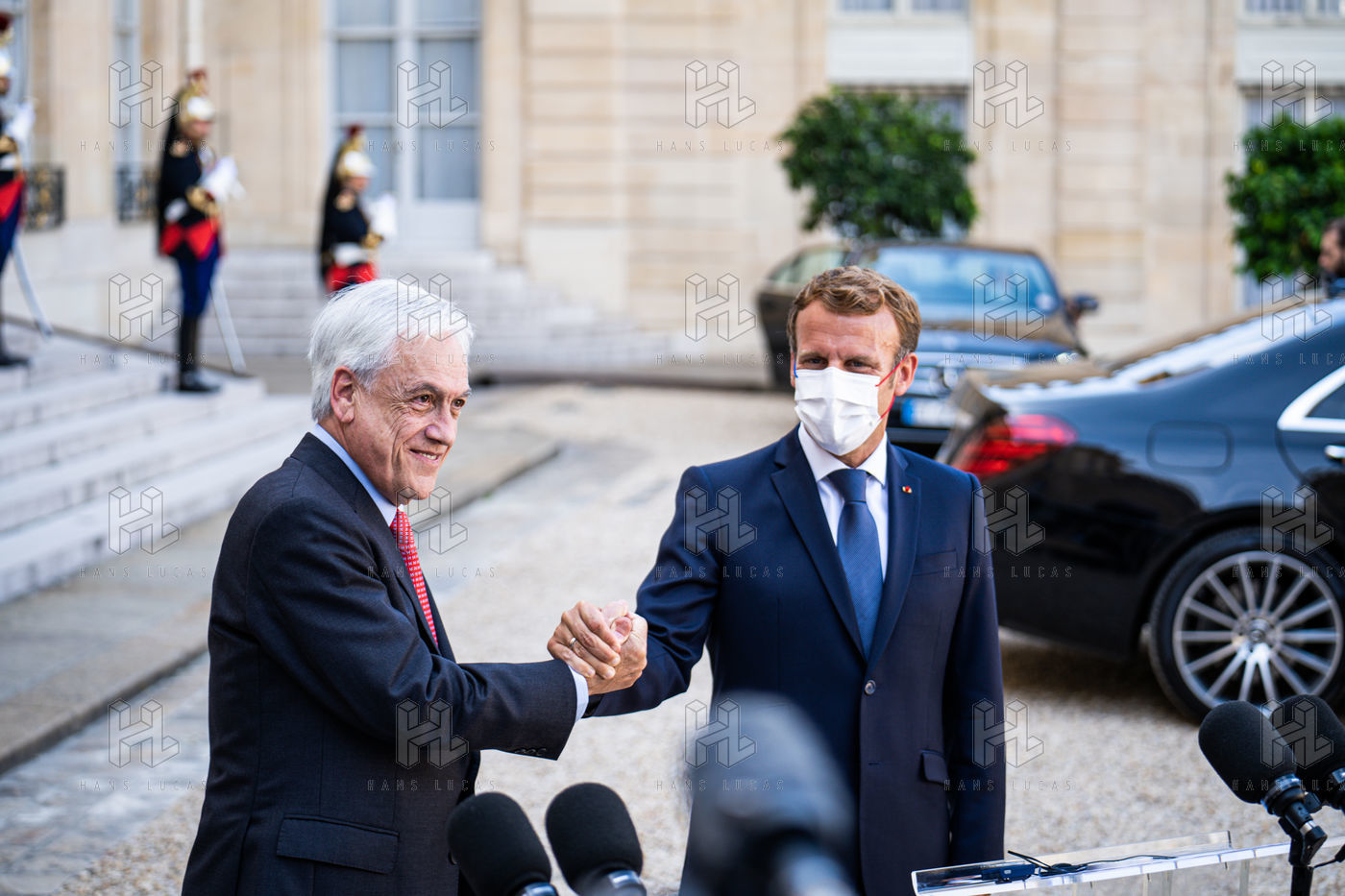Interview of Emmanuel Macron, President of the French Republic, and Sebastián Piera, President of the Republic of Chile, at the Élysée Palace.