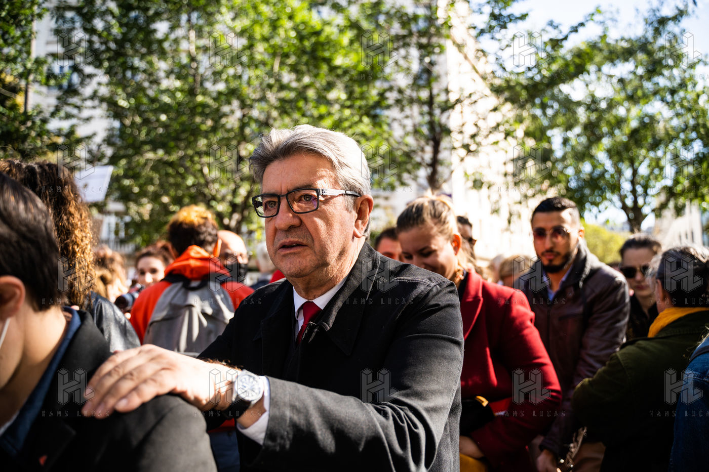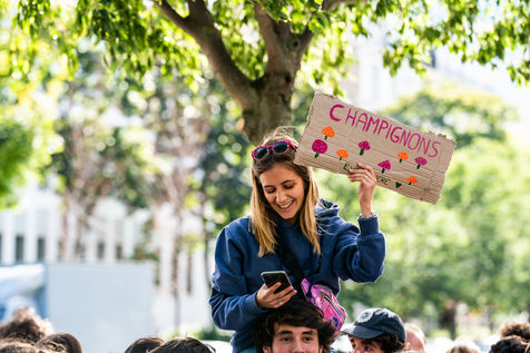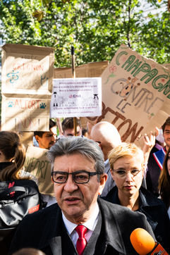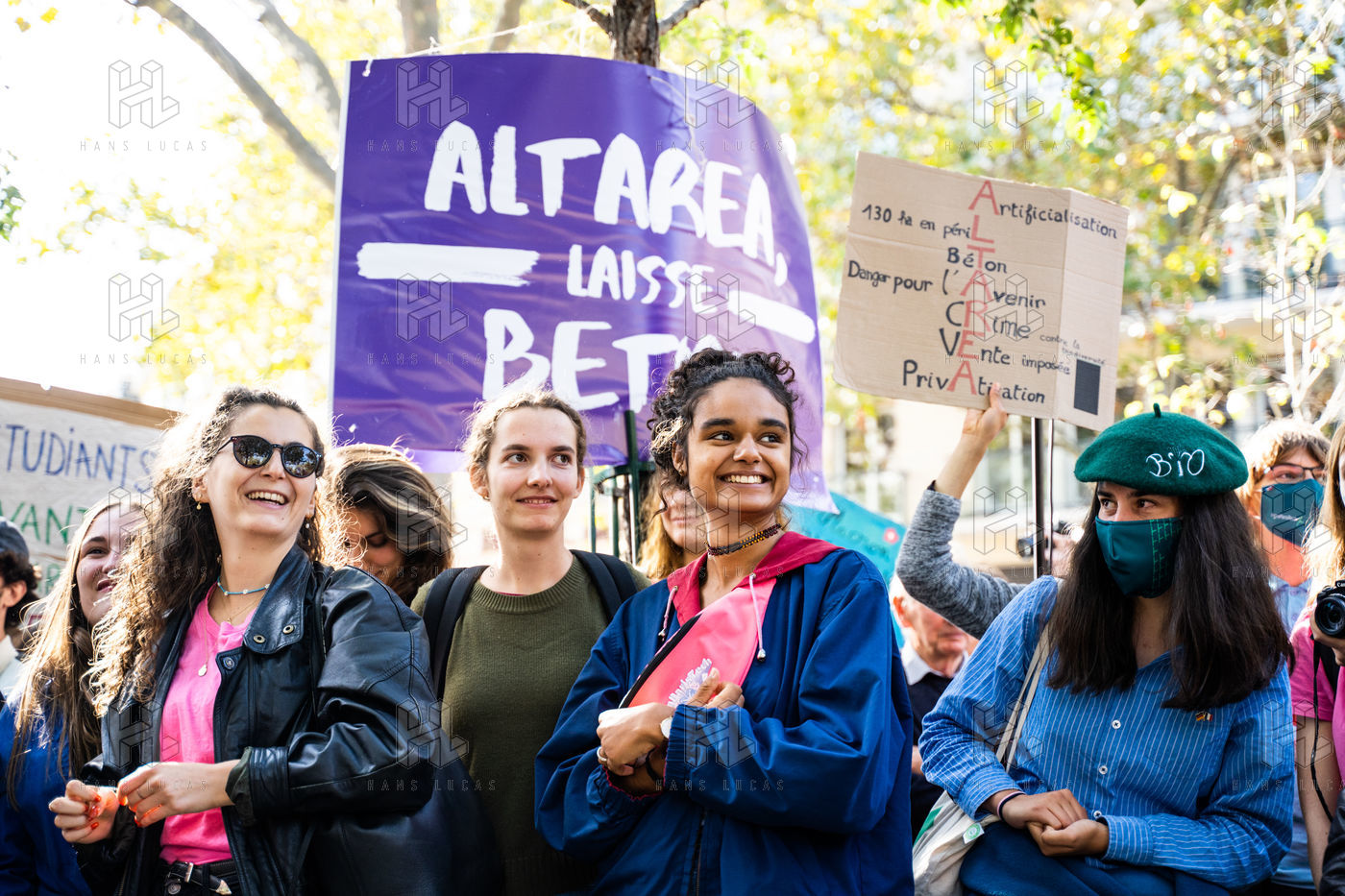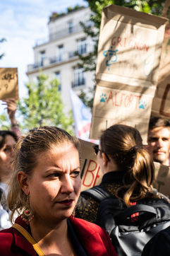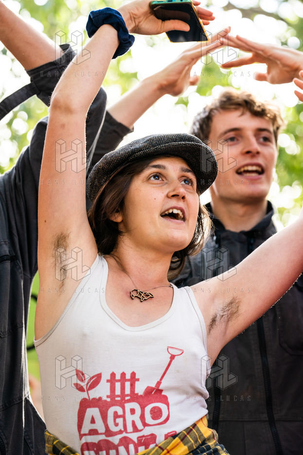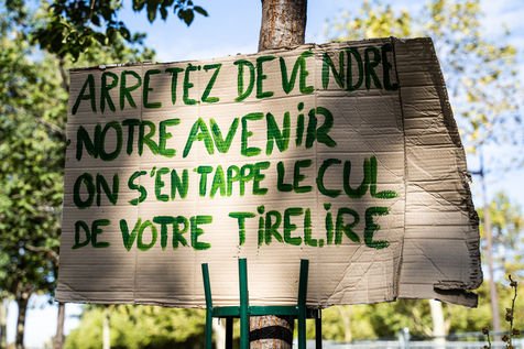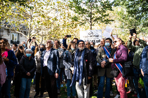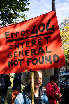 Demonstration, organized by the collective for the future of the Grignon site, unions and students, against the sale of the Grignon estate (Yvelines) to the property developer Altarea Cogedim, place denys cochin, in the 7th arrondissement of Paris.