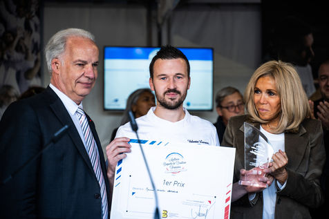 7e édition du concours national de la meilleure baguette de tradition française, lauréat organisé par la confédération nationale de la boulangerie-pâtisserie française, sur le parvis de la cathédrale Notre-Dame de Paris.