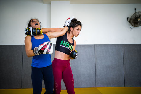 Portrait de Lucie Bertaud, boxeuse amateur française, combattante MMA, sport d'arts martiaux mixtes, qui s'entraîne à la salle NR Fight à Paris pour son combat à la deuxième édition de l'hexagone MMA qui aura lieu le 30 octobre au Zénith de Paris.