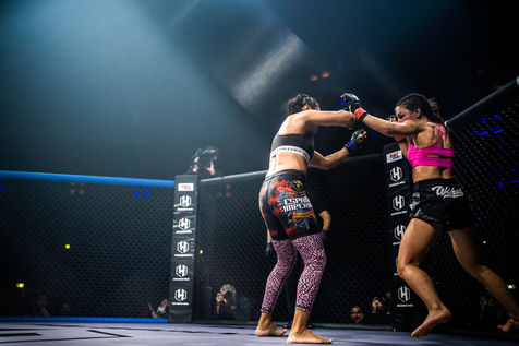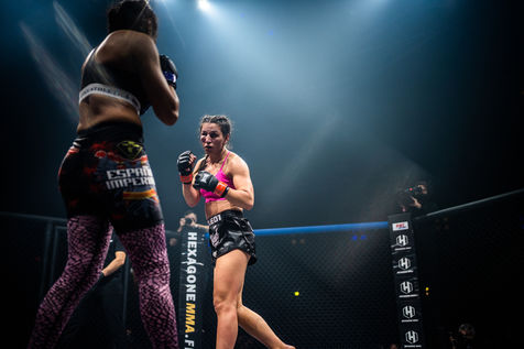 Fight between Lucie Bertaud, French professional practitioner of mixed martial arts and finalist of Koh-Lanta, and Karla Benitez, nicknamed the warrior of god from Venezuela and based in Spain, catchweight 57 kg on the occasion of the second edition of the hexagone MMA at the Zenith of Paris