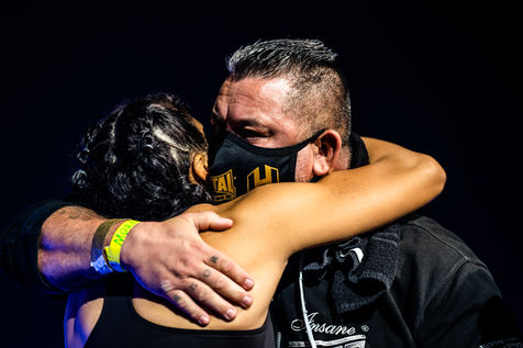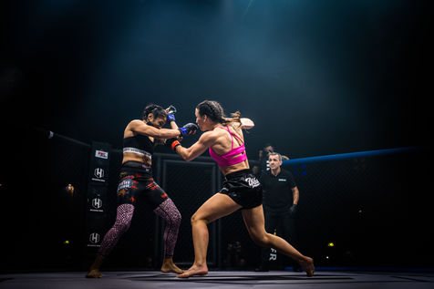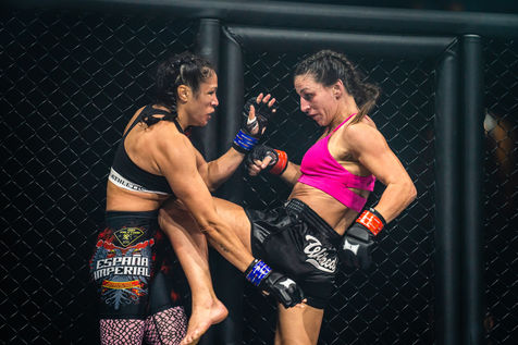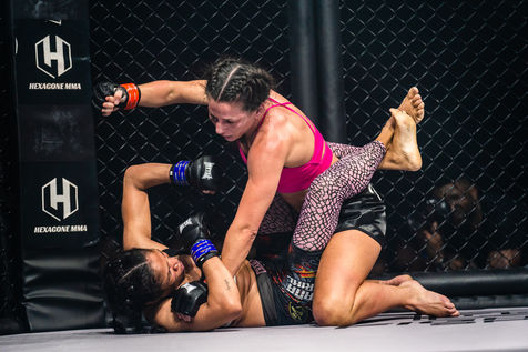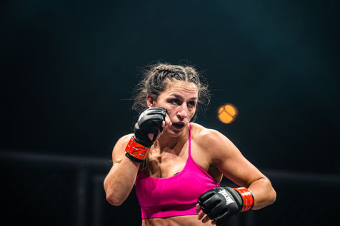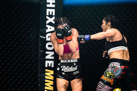 Combat entre Lucie Bertaud, pratiquante professionnelle française d arts martiaux mixtes et finaliste de Koh-Lanta, et Karla Benitez, surnomme the warrior of god de Venezuela et basée en Espagne, catchweight 57 kg à l'occasion de la deuxième édition de l'hexagone MMA au Zénith de Paris.