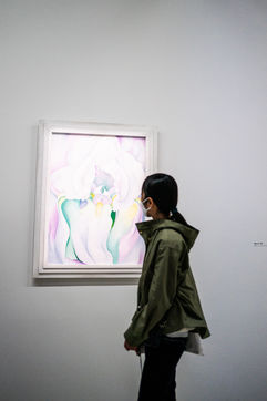 Temporary exhibition of Georgia O'Keeffe, a retrospective of a hundred paintings, drawings and photographs by one of the greatest figures of 20th century North American art, at the Centre Pompidou Museum in Paris.