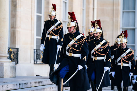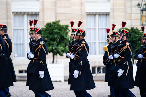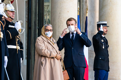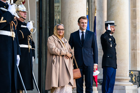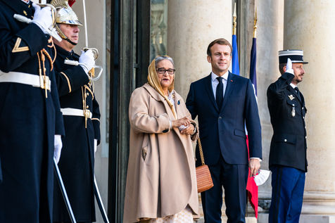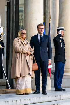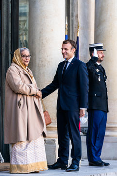 The President of the French Republic receives the prime minister of the People's Republic of Bangladesh, for a working lunch at the Elysee Palace.
