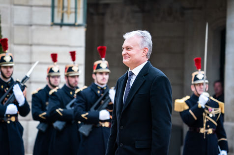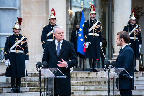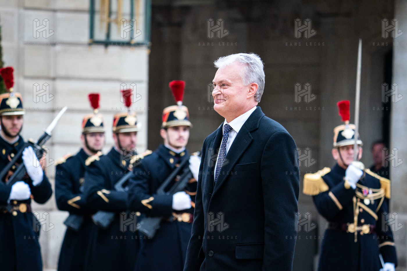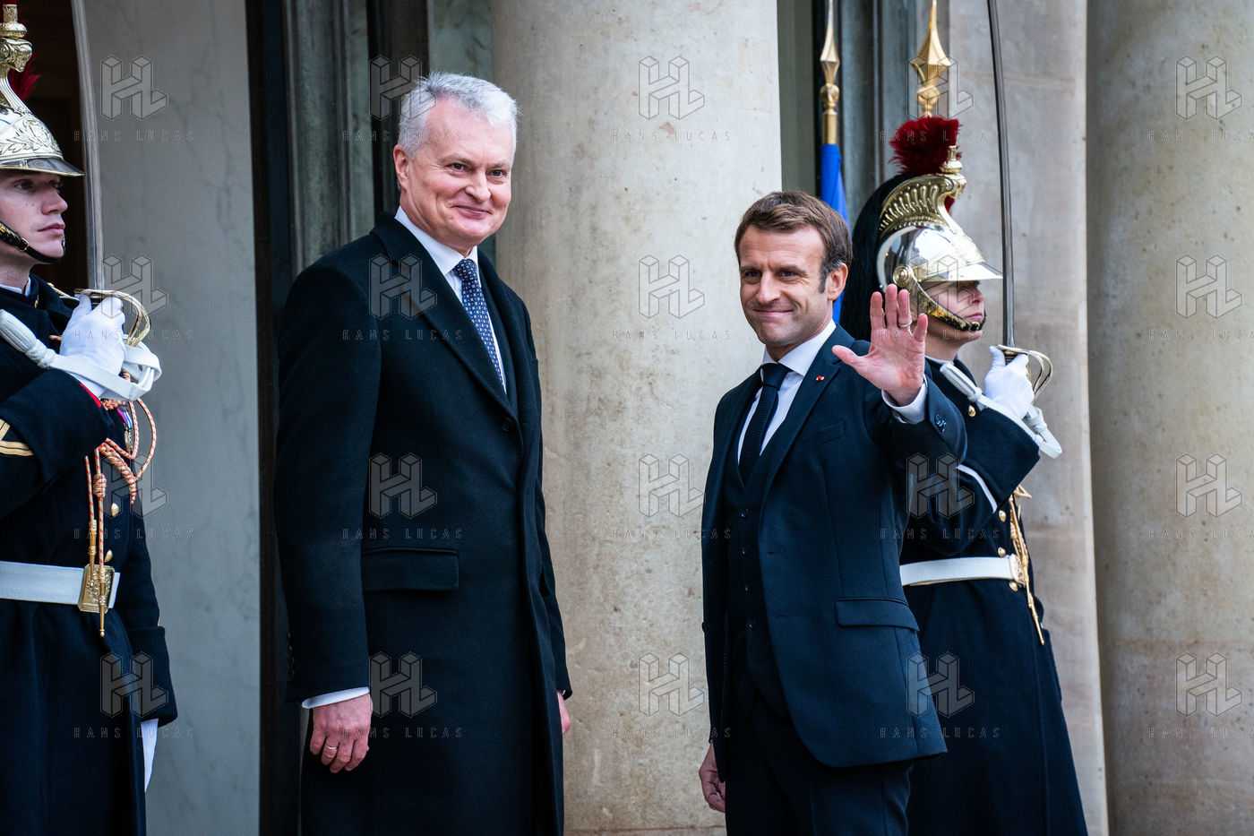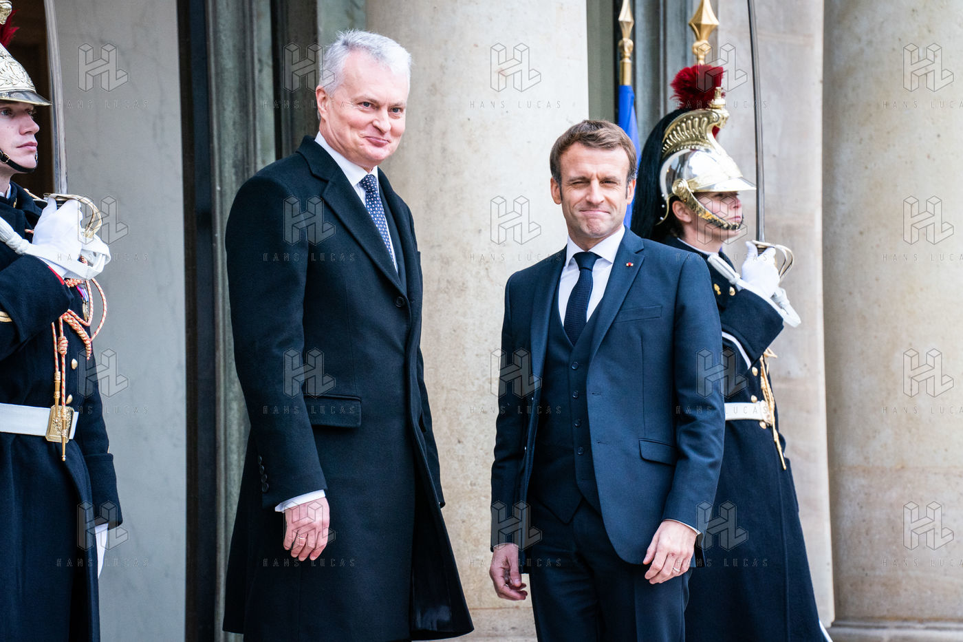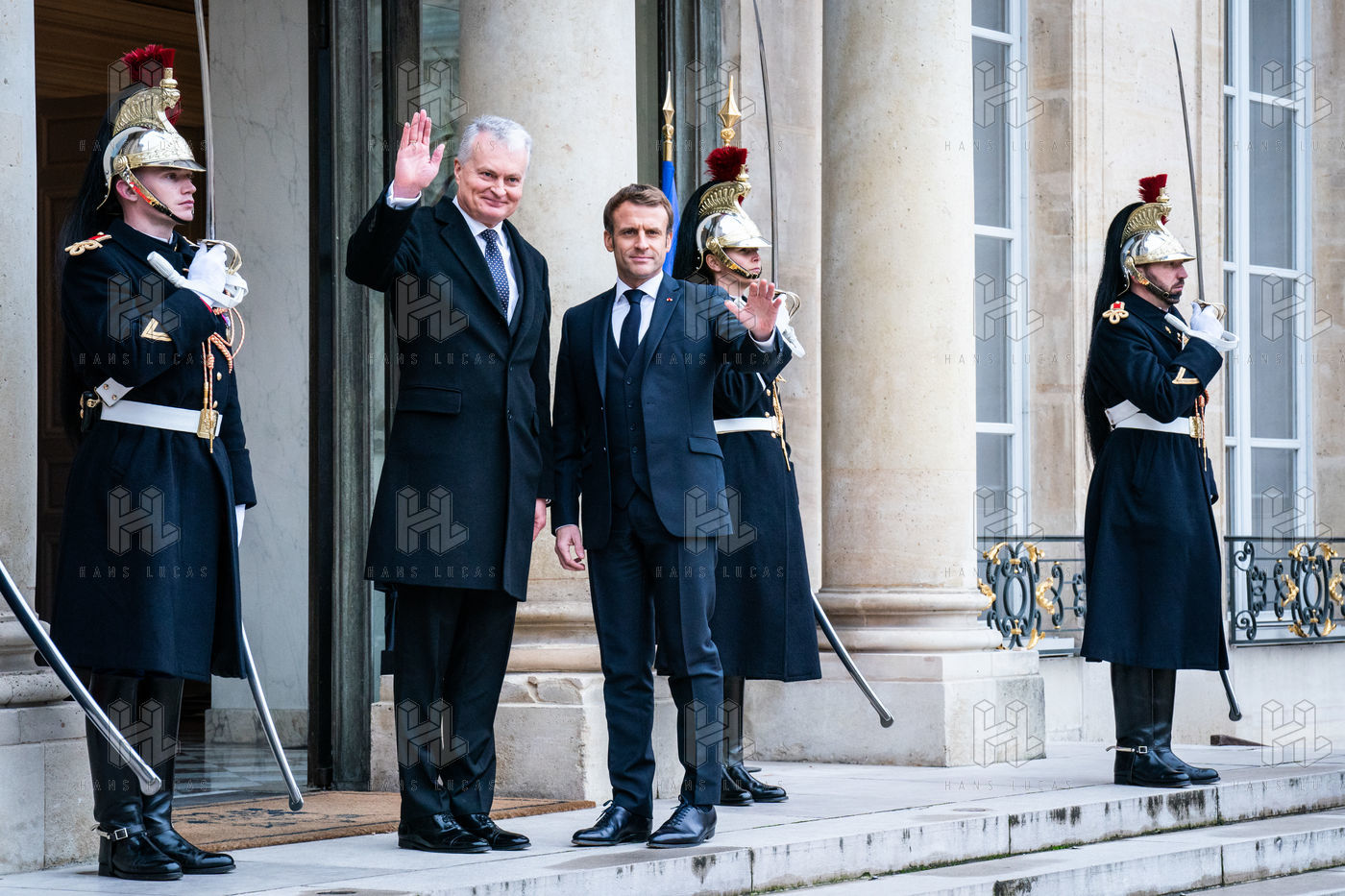 Meeting between Emmanuel Macron, President of the French republic, and Gitanas Nauseda, President of the Republic of Lithuania, for a working lunch at the Elysee Palace.