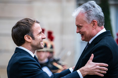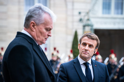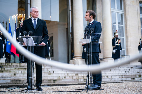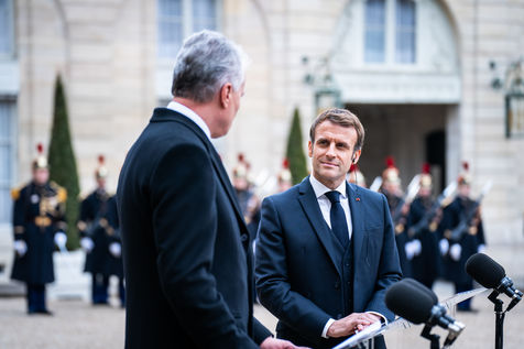 Entretien entre Emmanuel Macron, president de la republique francaise, et Gitanas Nauseda, président de la république de Lituanie, pour un déjeuner de travail au Palais de l'Elysée.