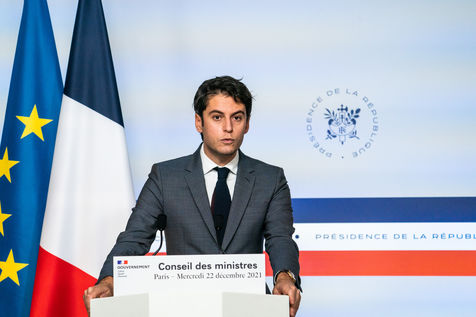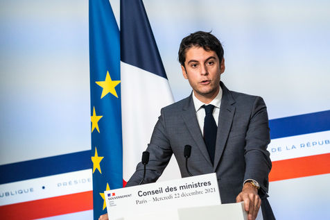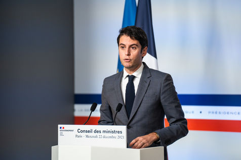 Gabriel Attal, government spokesman, reports after the council of ministers, in the spokesman's room, Paris 22 December 2021.