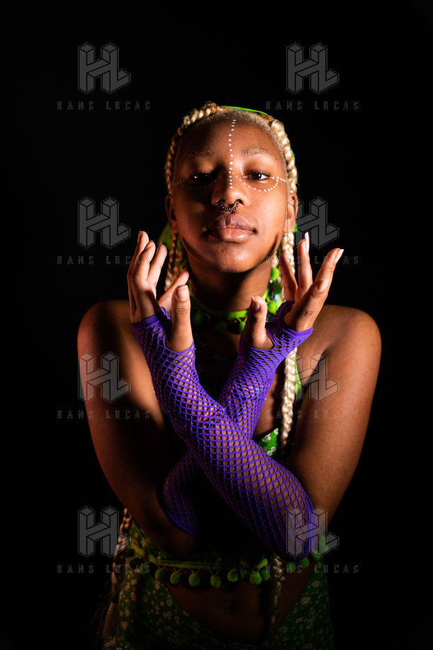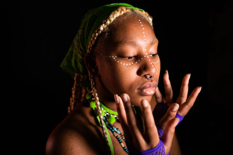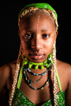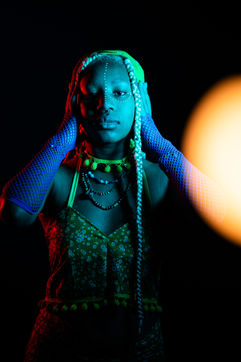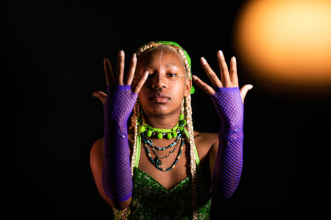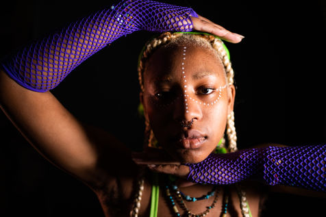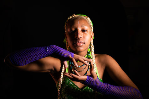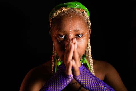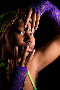 Portrait of Heather, a young non-binary activist who has embarked on activism to help her adelphs and who is working to deconstruct the mentalities about the struggles she faces. Iel designed and sewed the clothes she wears, in connection with her African and Haitian background, to speak out against the underrepresentation of her country of origin and to make sure that everyone involved can feel represented. "I decided to get closer to fashion and dance to express my struggles and my fights to express my point of view and my political convictions because our bodies are political".