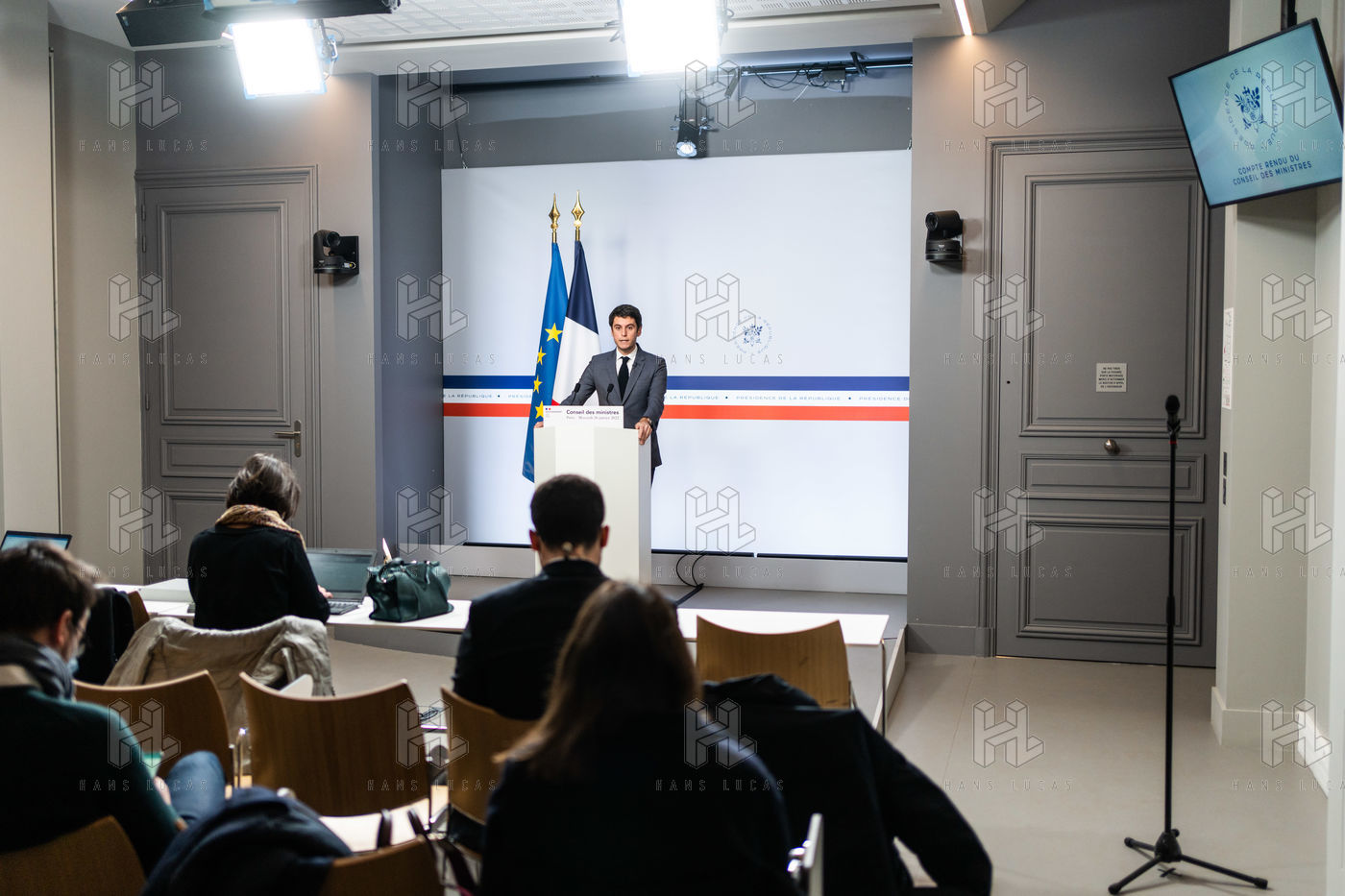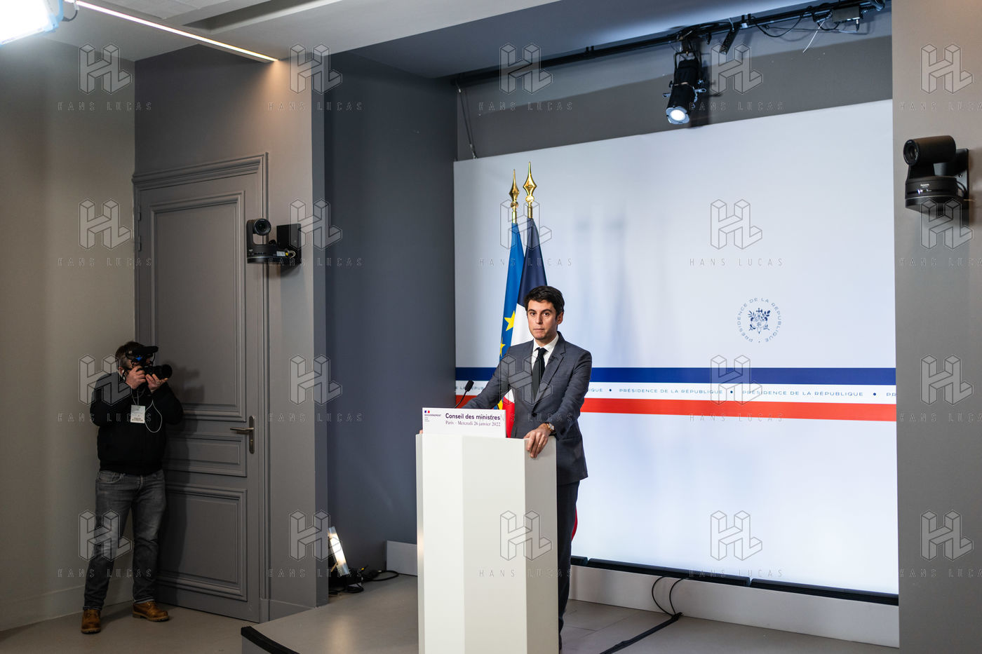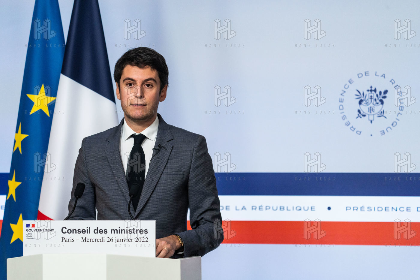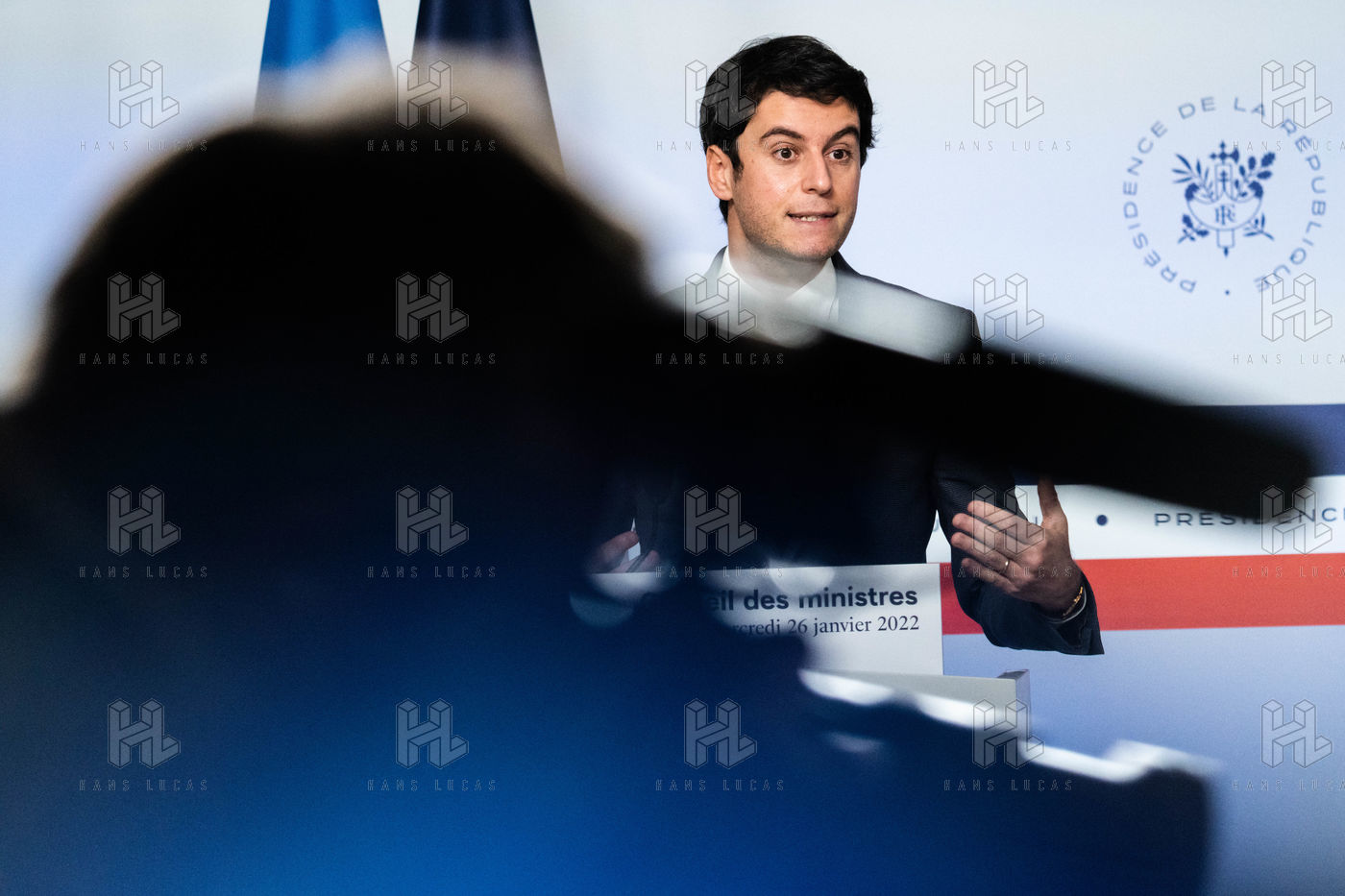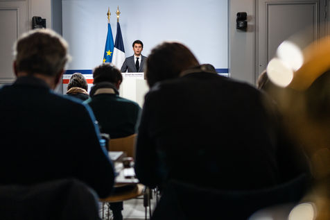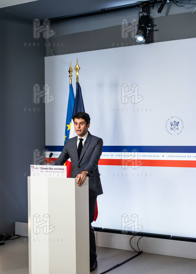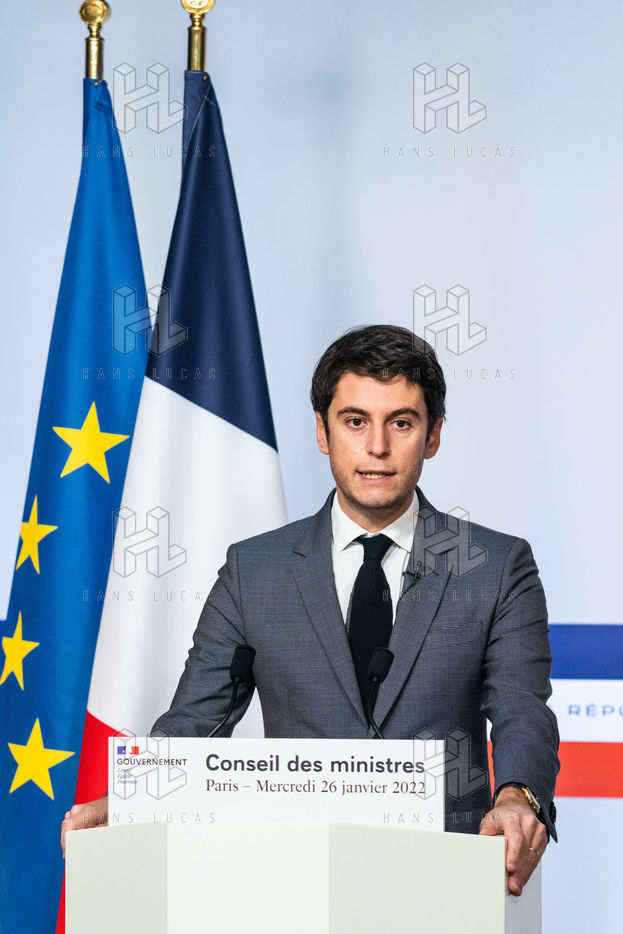 Gabriel Attal, government spokesman, reports after the council of ministers, in the spokesman's room, Paris 26 JANUARY 2021.