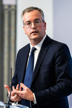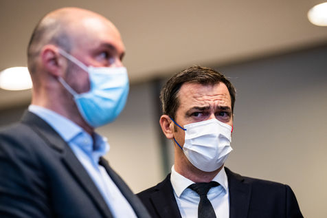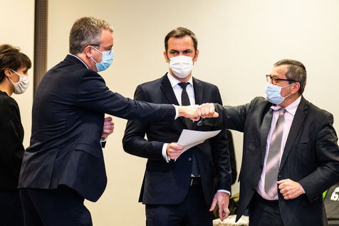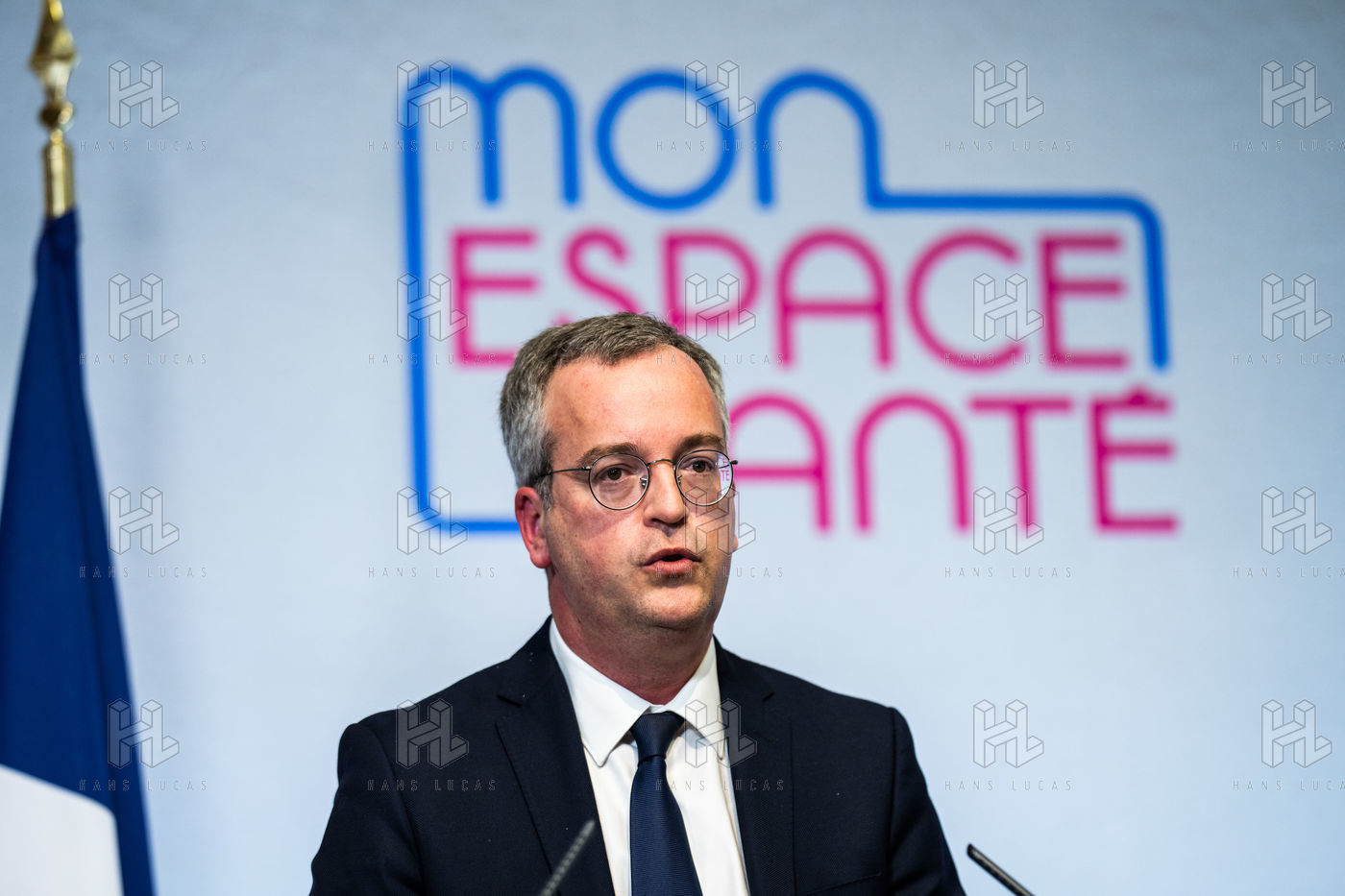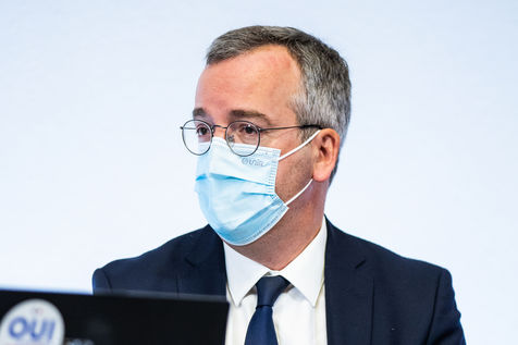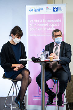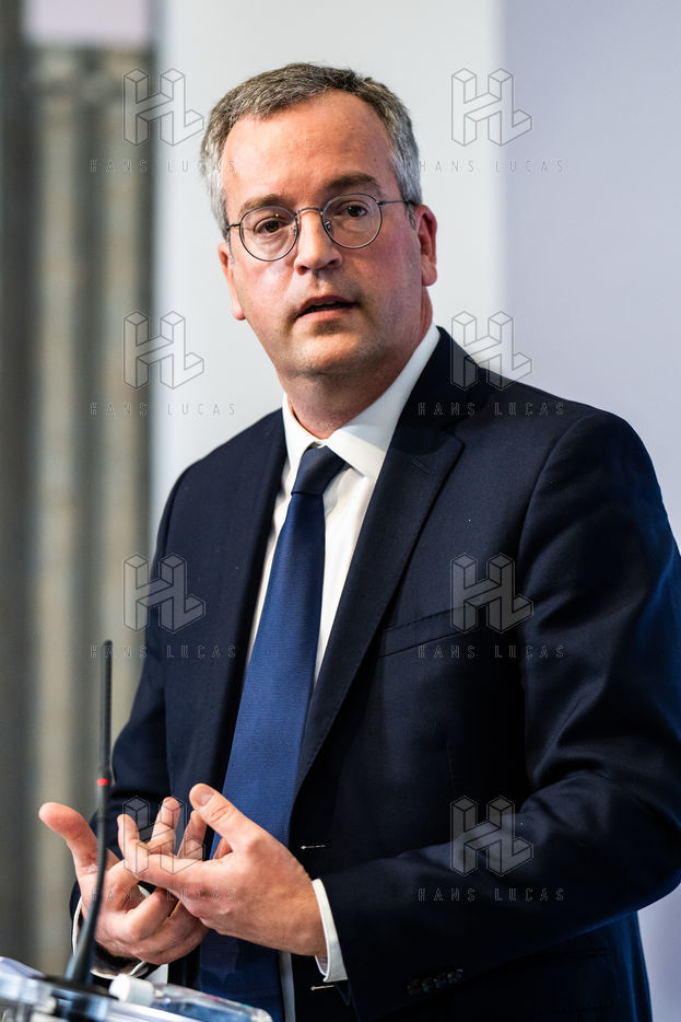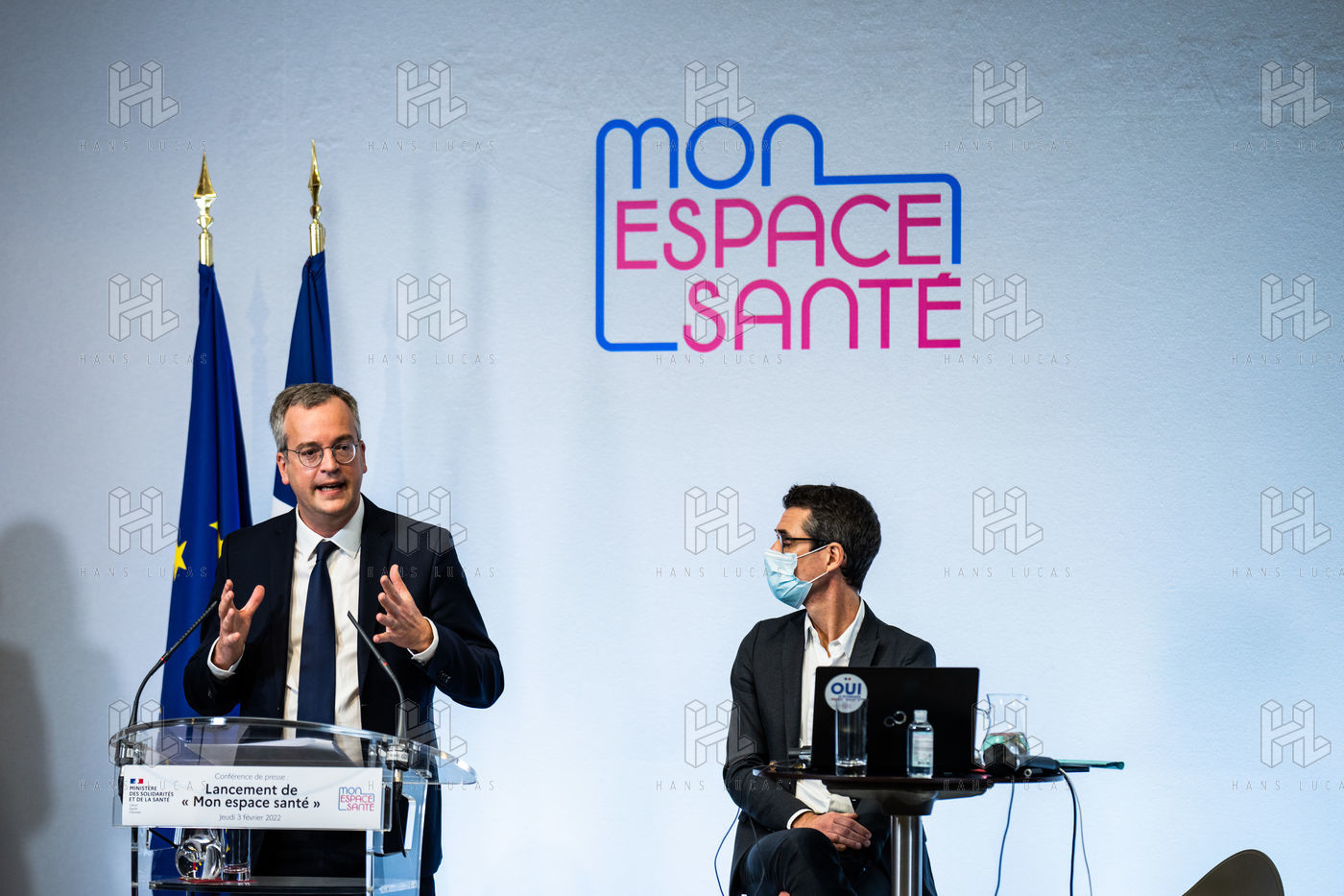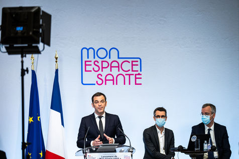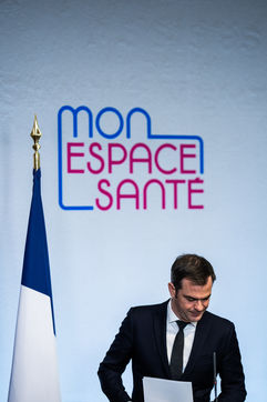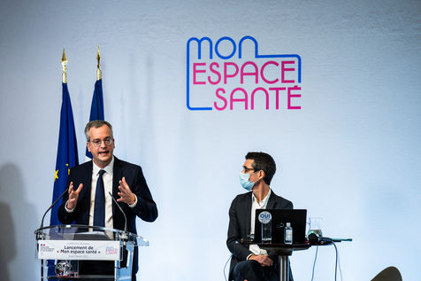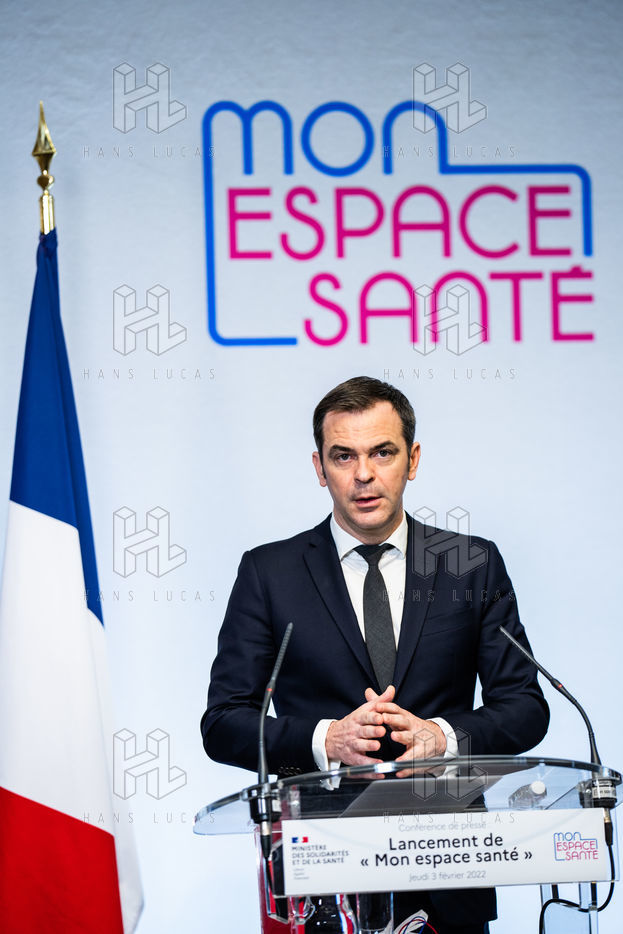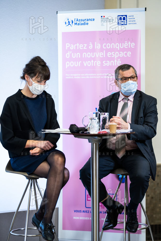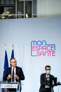 Press conference on the launch of my health space. The health system is about to undergo a change with the creation of Mon espace santé, a new public service available to the French that will allow them to store and access their health data in a secure manner, at the Ministry of Solidarity and Health.