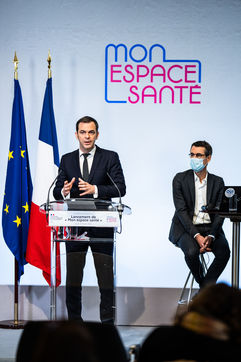 Conférence de presse sur le lancement de mon espace santé. Le système de santé va connaître une évolution avec la création de Mon espace santé, un nouveau service public à la disposition des Français qui leur permettra de stocker et d'accéder à leurs données de santé de manière sécurisée, au ministère des Solidarités et de la Santé.