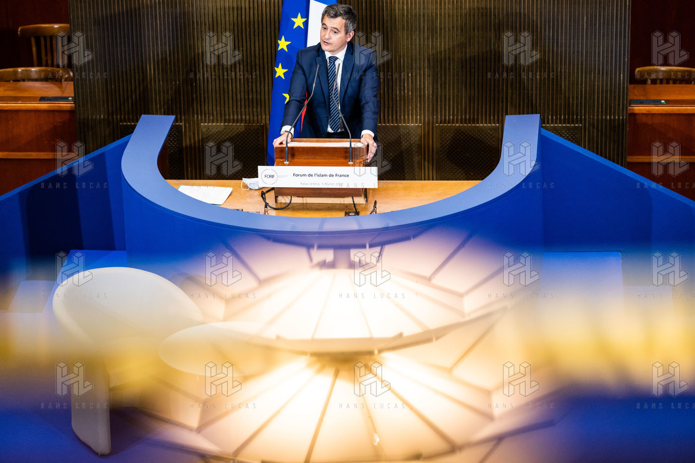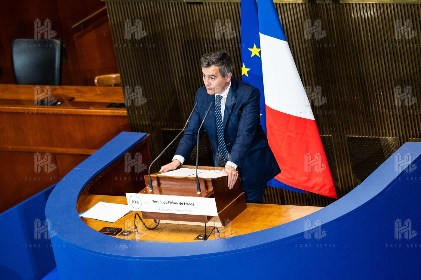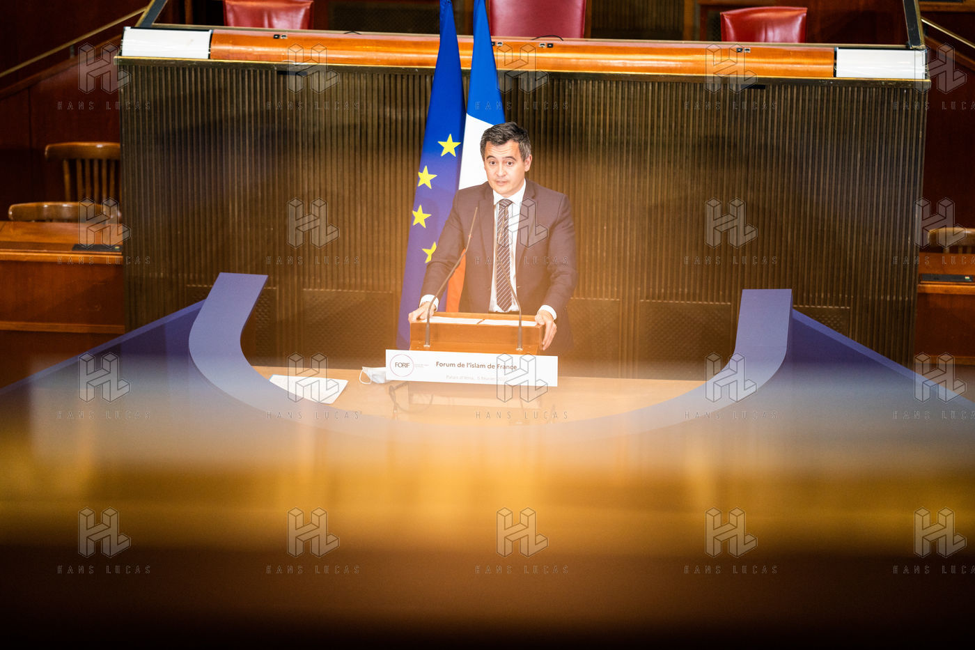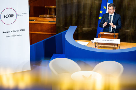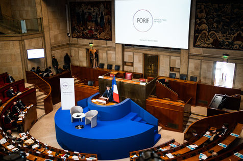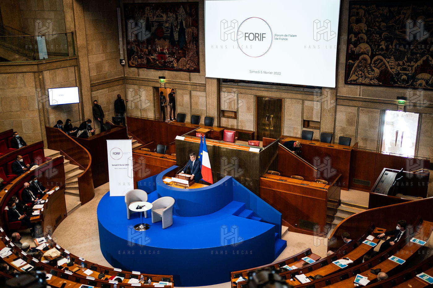 Forum de l'Islam de France au Conseil économique, social et environnemental. Séance plénière de présentation des conclusions des quatre groupes de travail par les rapporteurs. Application de la loi renforçant le respect des principes de la République, la professionnalisation et le recrutement des imams, la sécurité des lieux de culte et la lutte contre les actes antimusulmans, l'organisation et le fonctionnement des aumôneries.