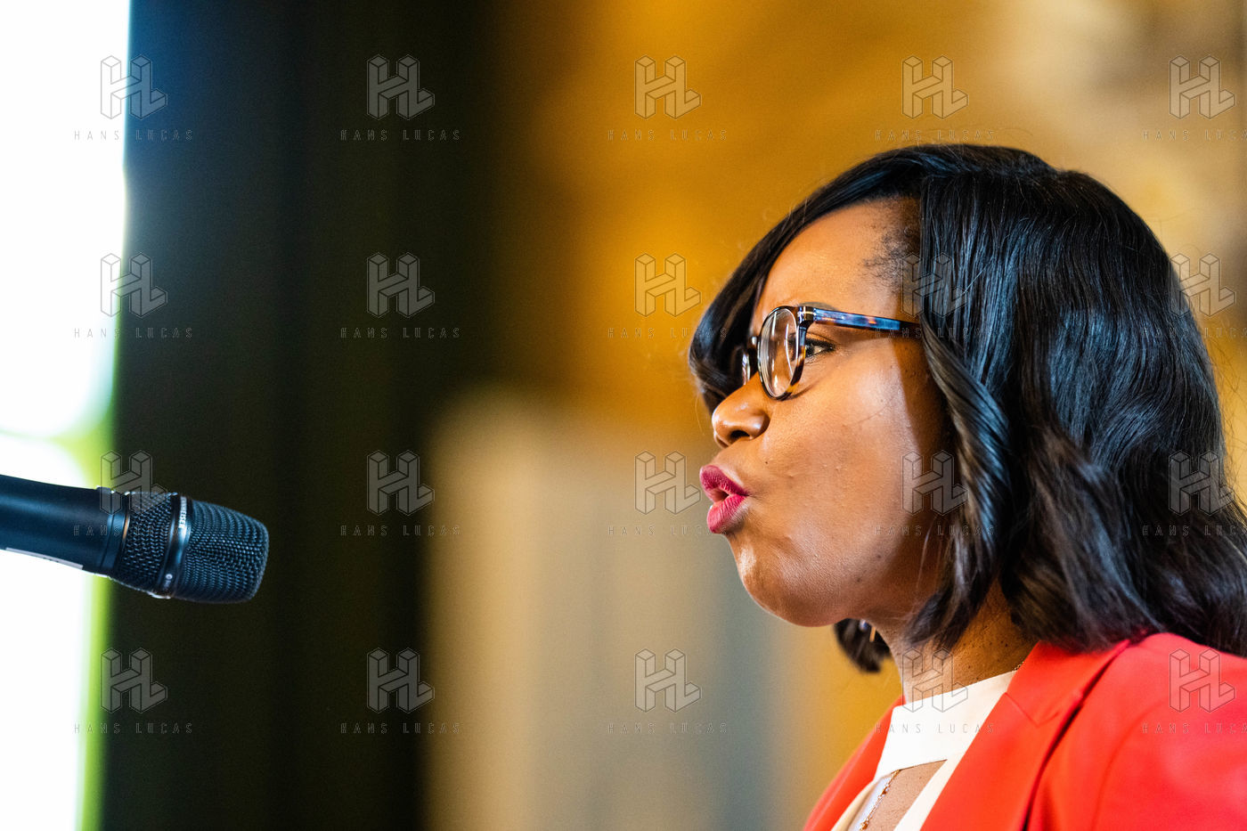 Ouverture de l'événement "10 ans de mobilisation internationale" organisé par le réseau d'associations Excision parlons-en, pour la lutte contre les mutilations génitales féminines, à la veille de la Journée internationale de tolérance zéro à l'égard des mutilations génitales féminines, à la mairie du 19e arrondissement.