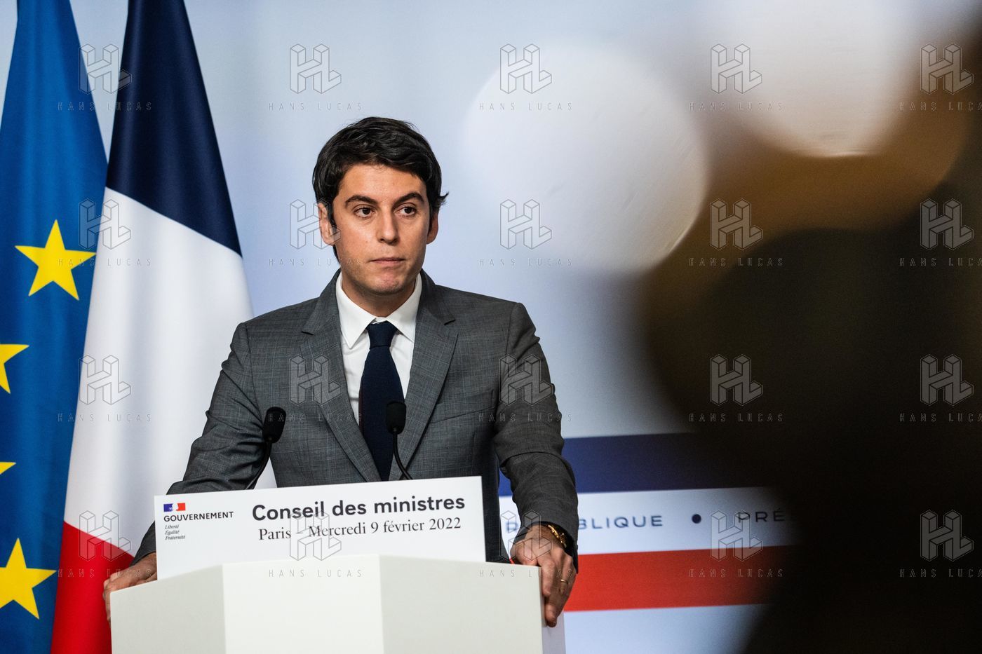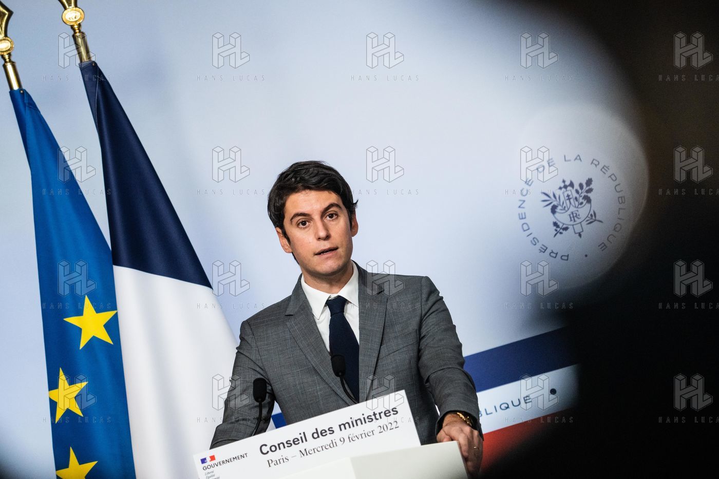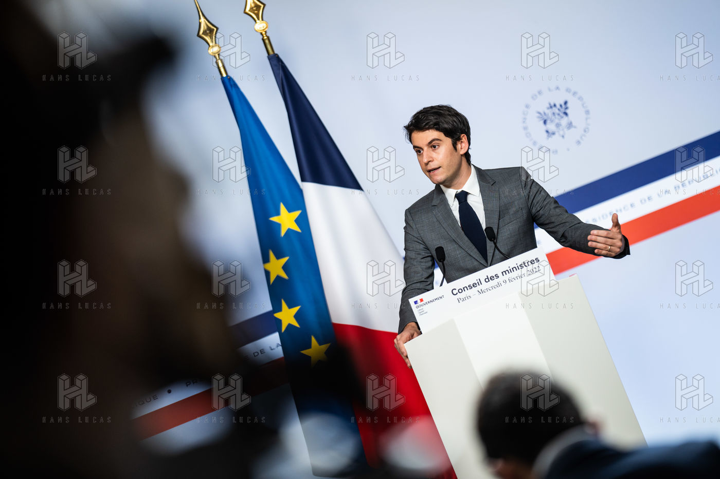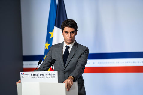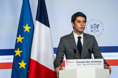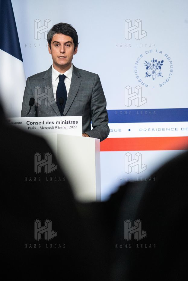 Gabriel Attal, government spokesman, reports after the council of ministers, in the spokesman's room, Paris 09 February 2022.
