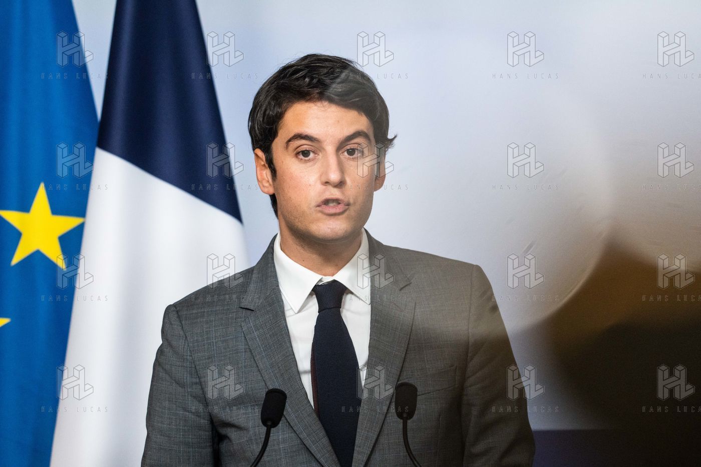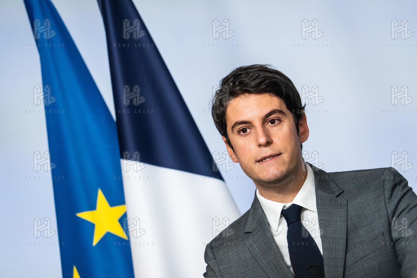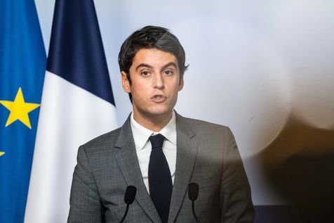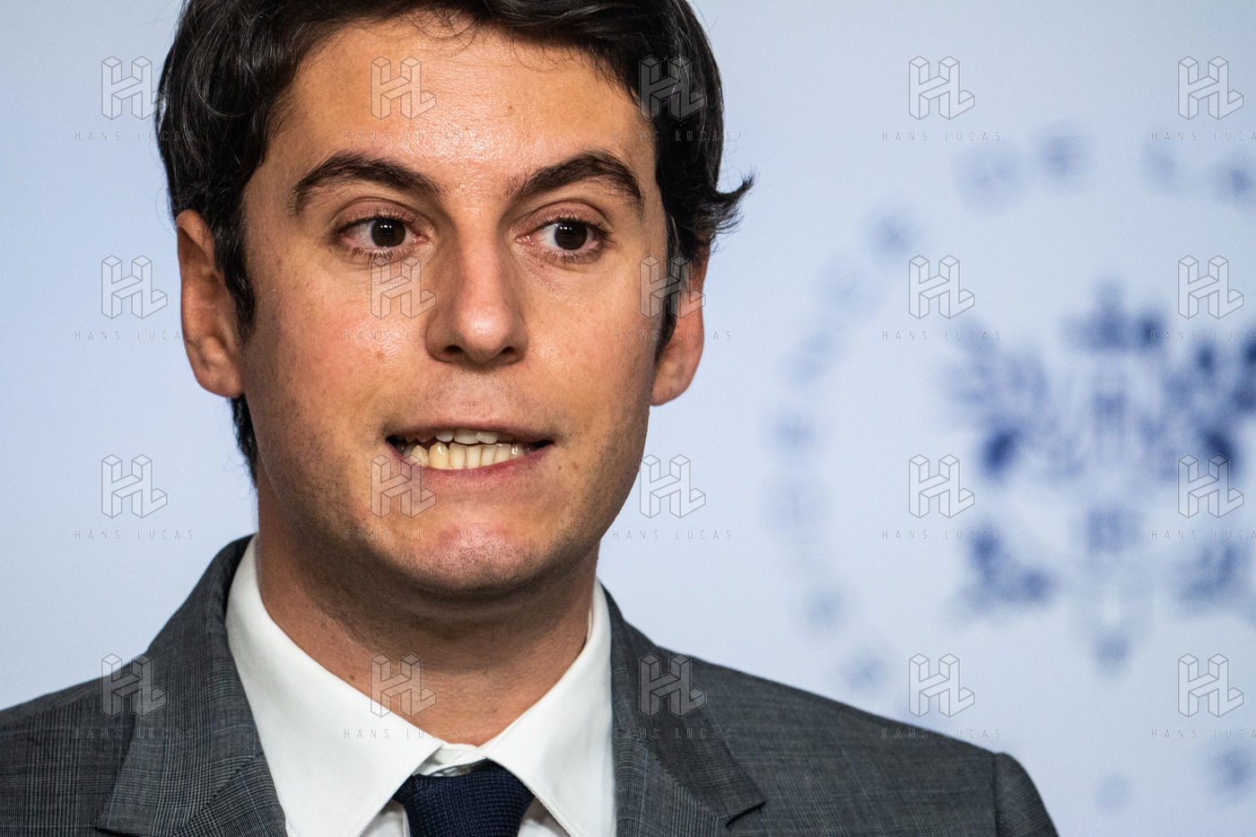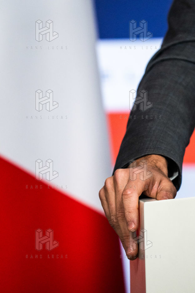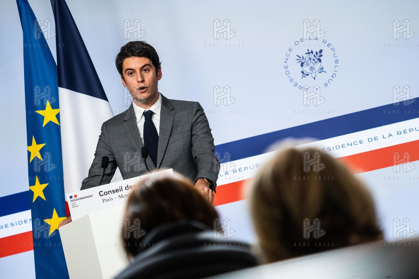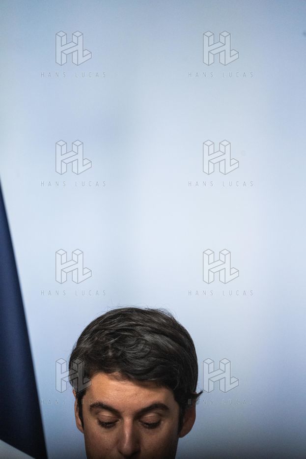 Gabriel Attal, porte-parole du gouvernement, fait un compte-rendu à l'issue du conseil des ministres, dans la salle du porte-parole, Paris 09 février 2022.