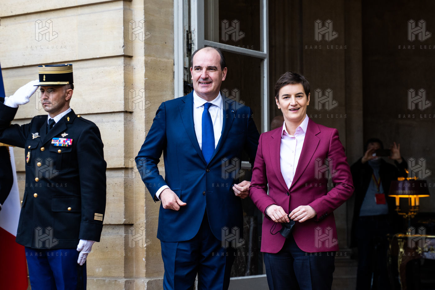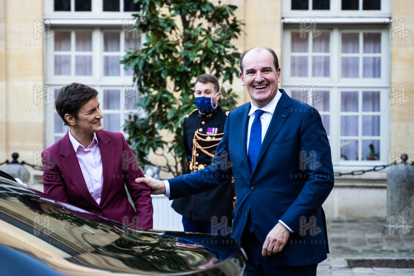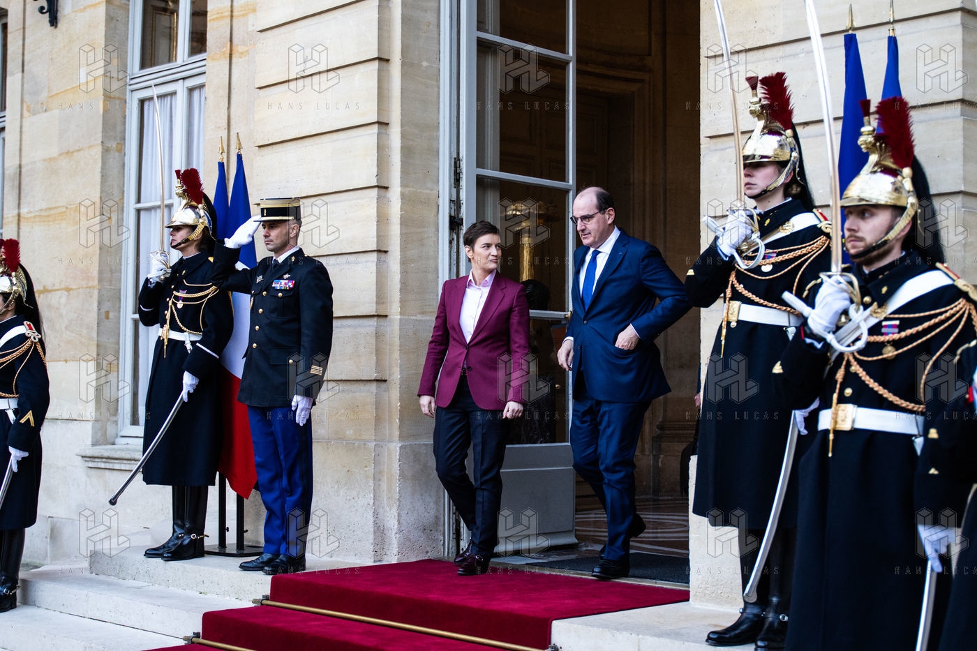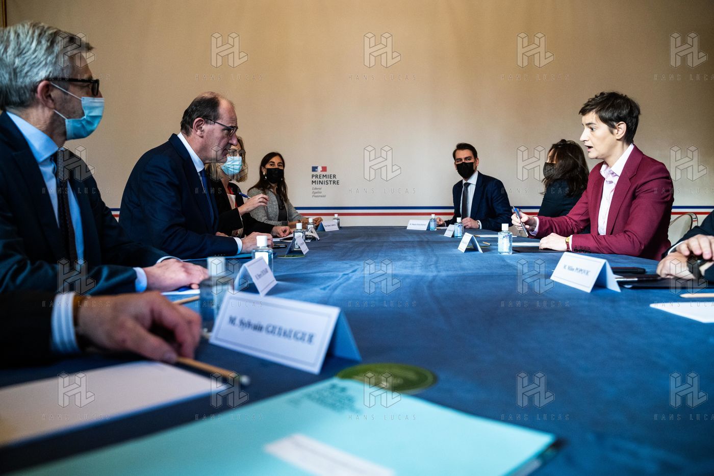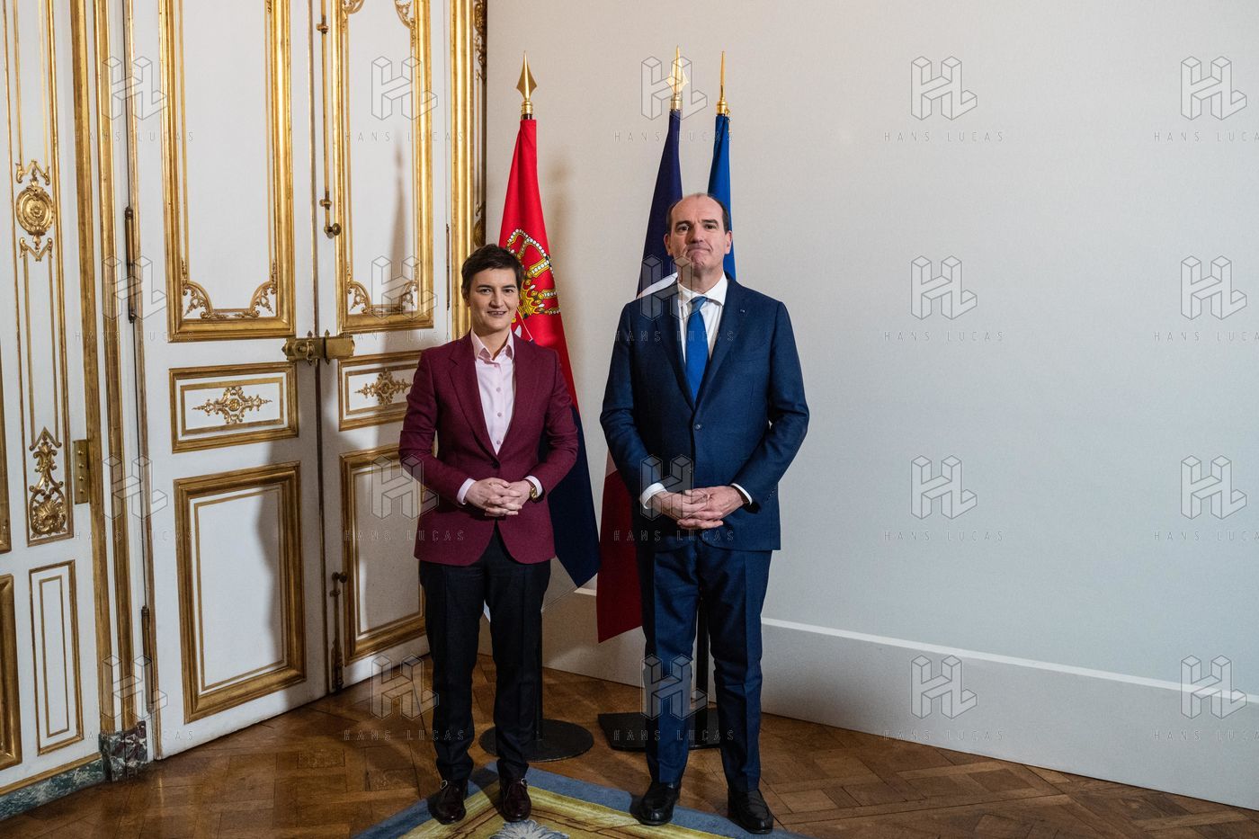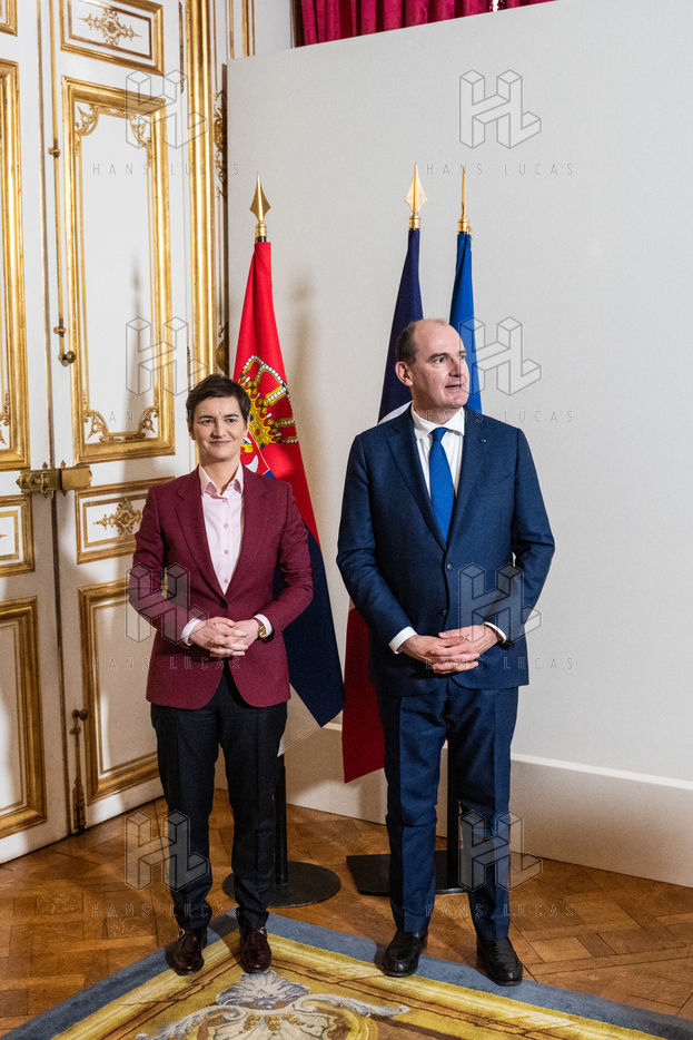 Entretien entre le Premier ministre français et le président du gouvernement de Serbie à l'Hôtel de Matignon.
