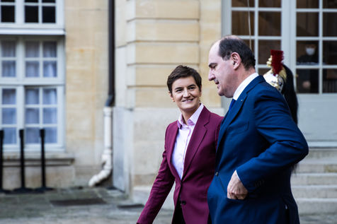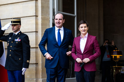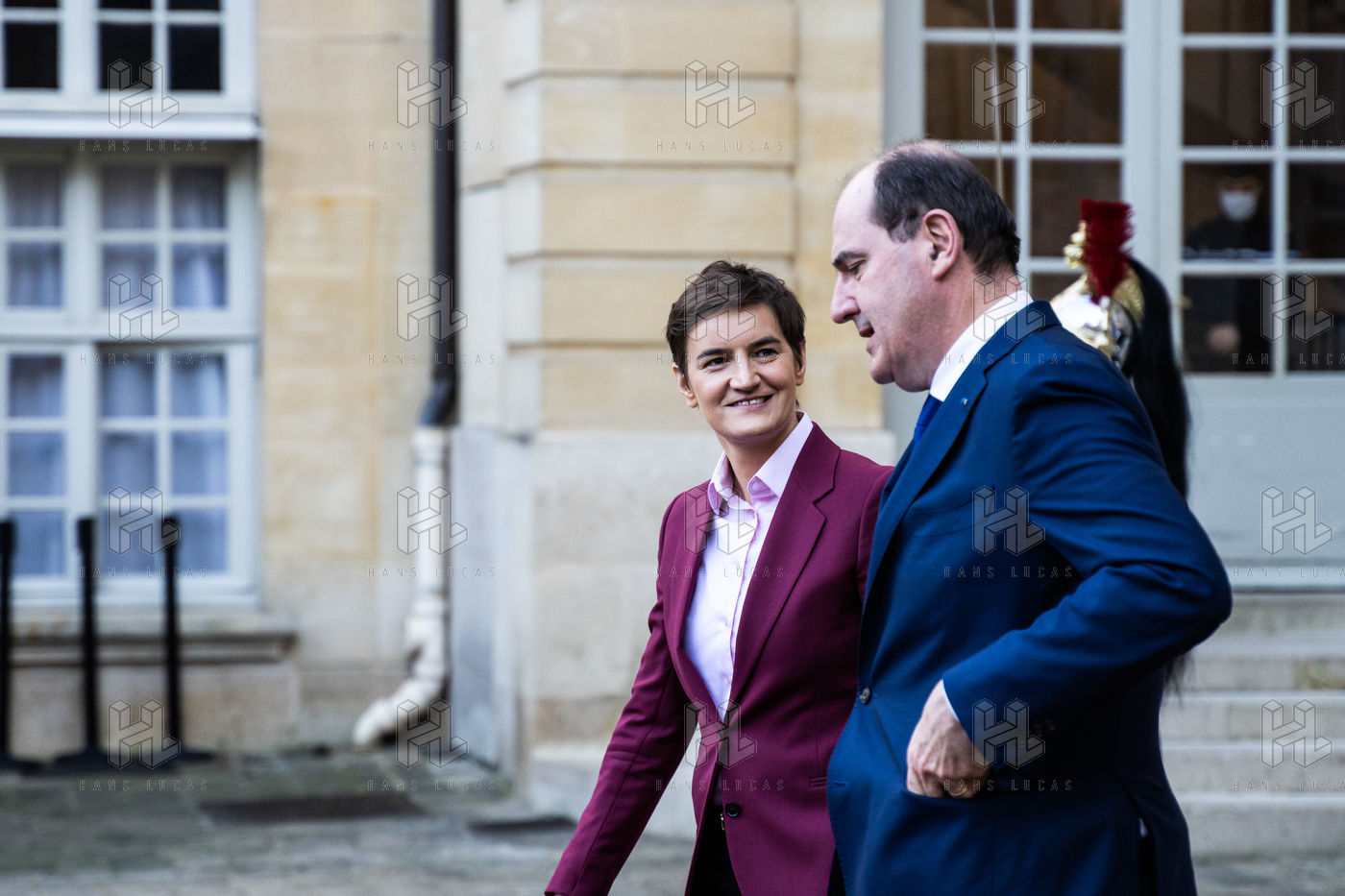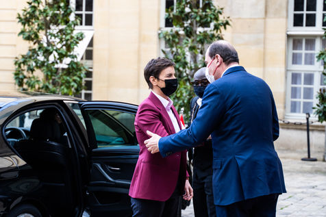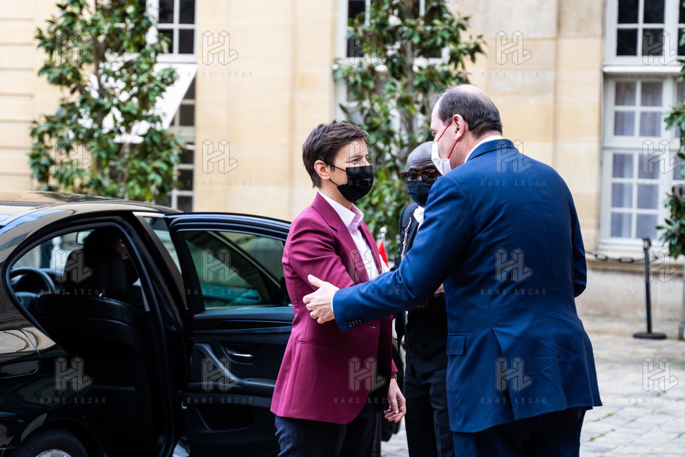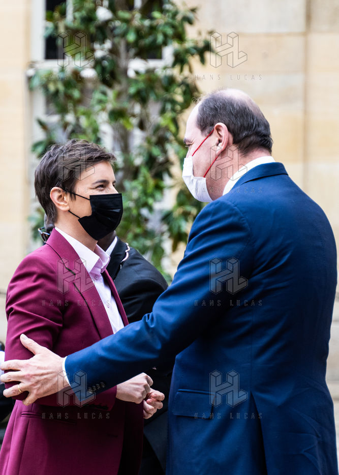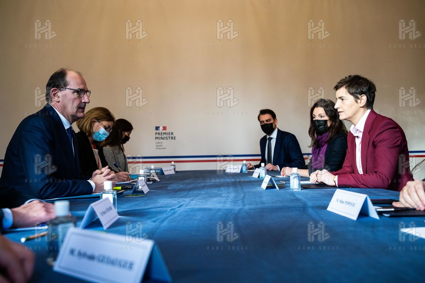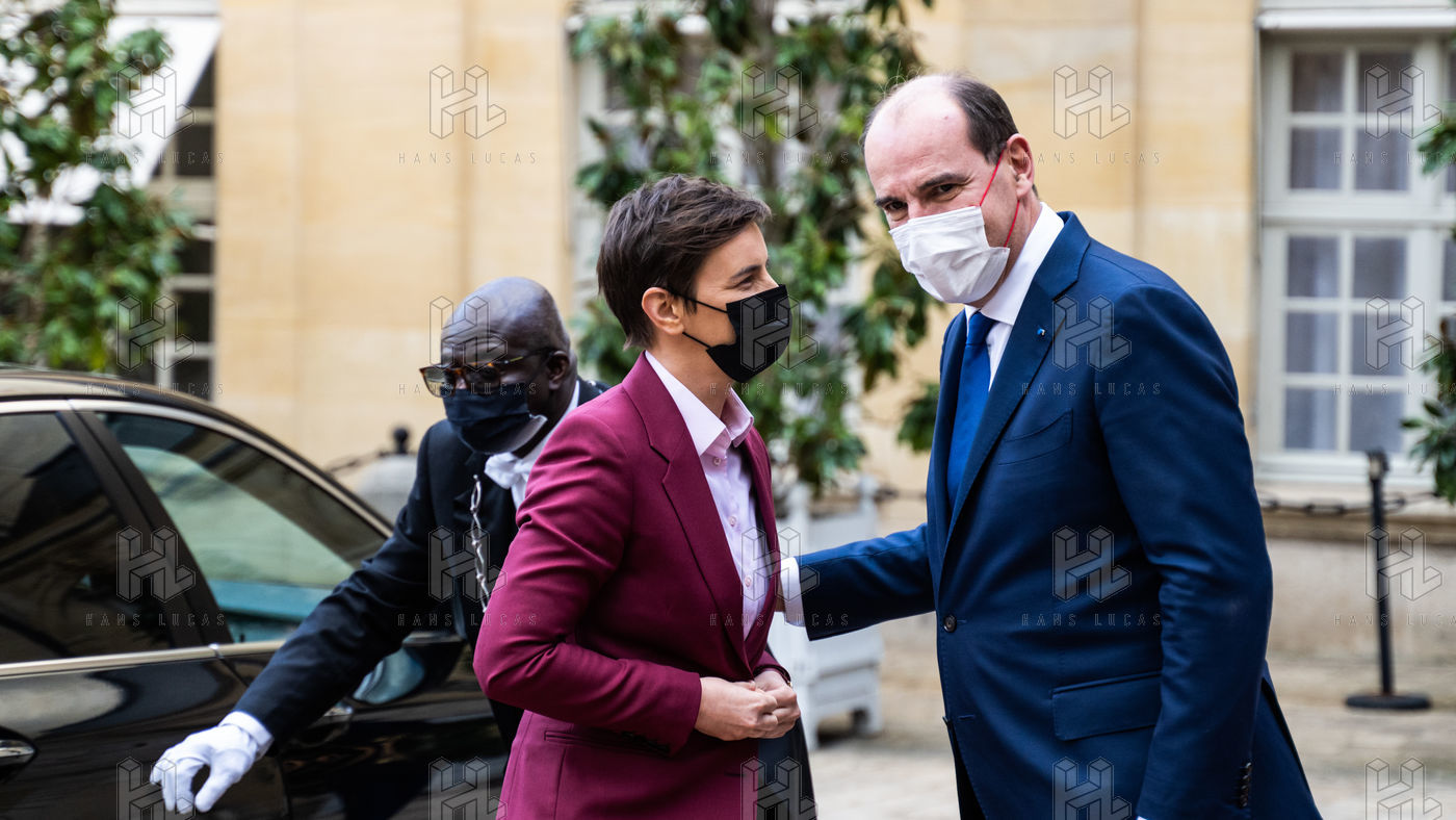 Entretien entre le Premier ministre français et le président du gouvernement de Serbie à l'Hôtel de Matignon.
