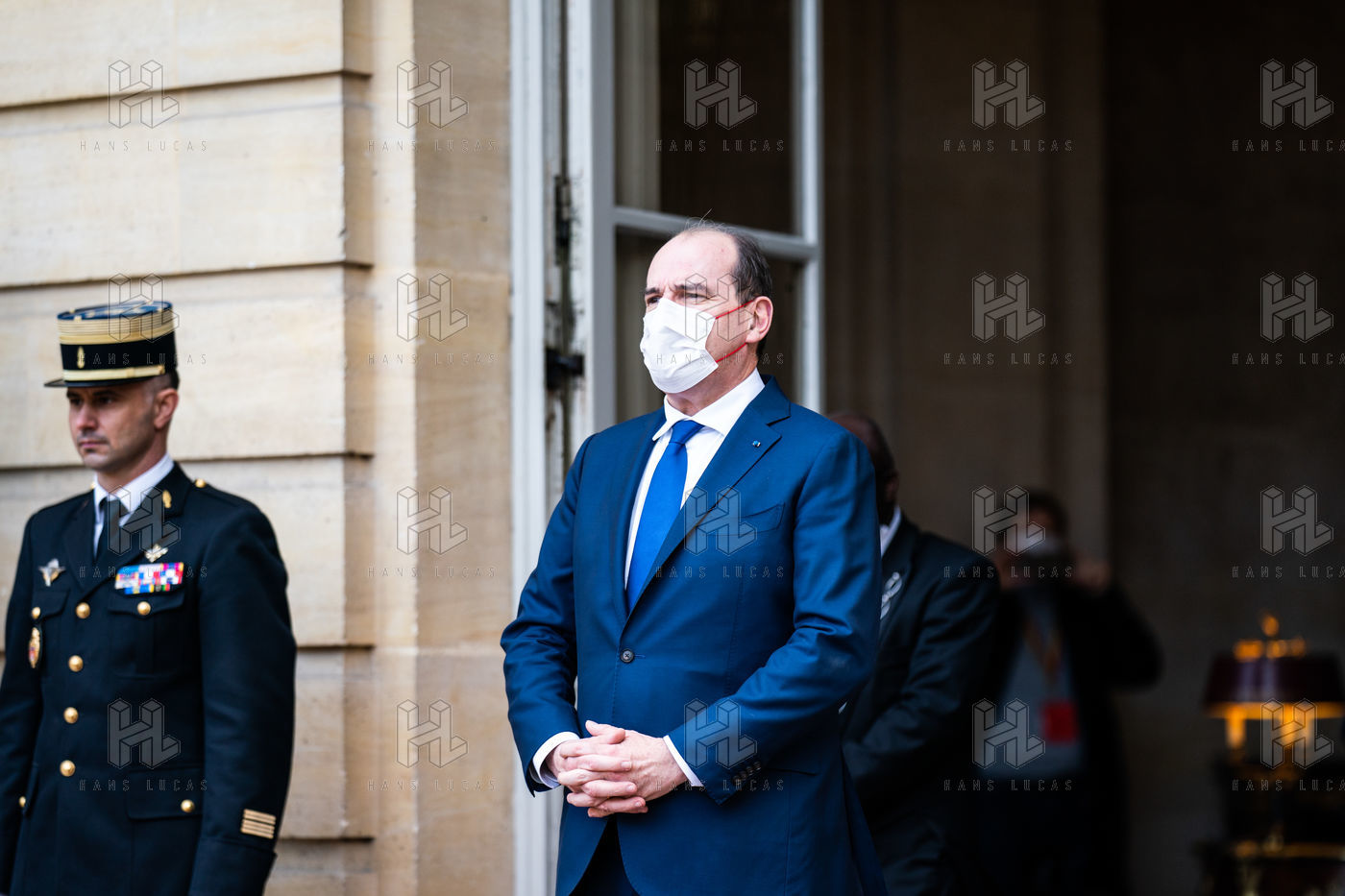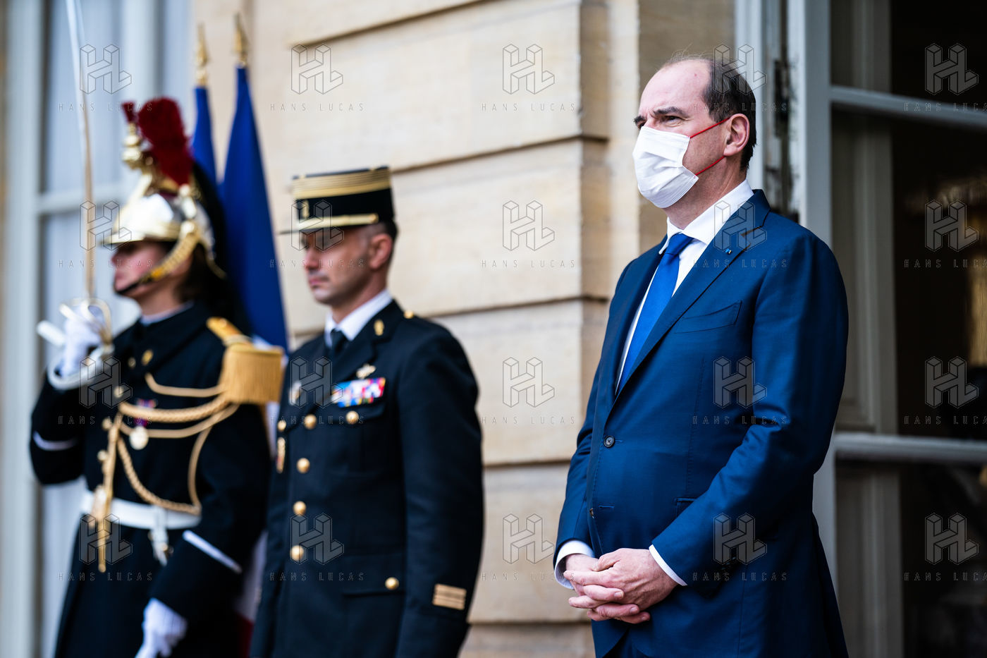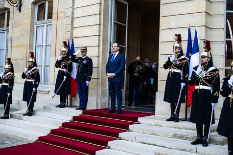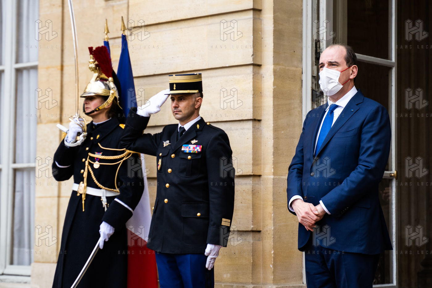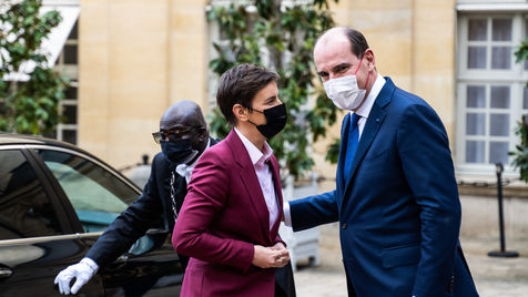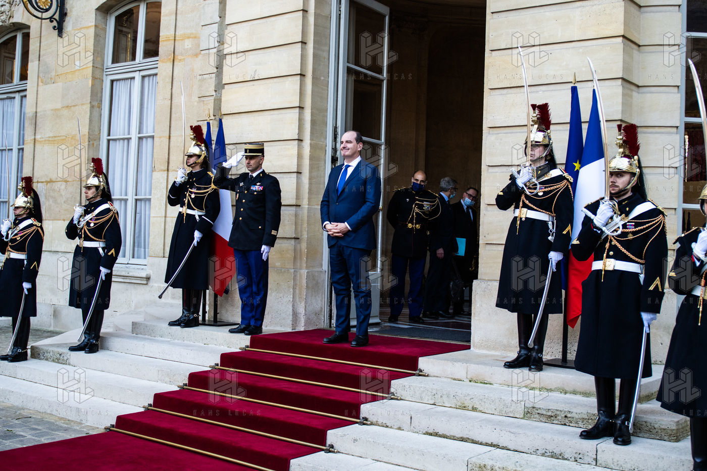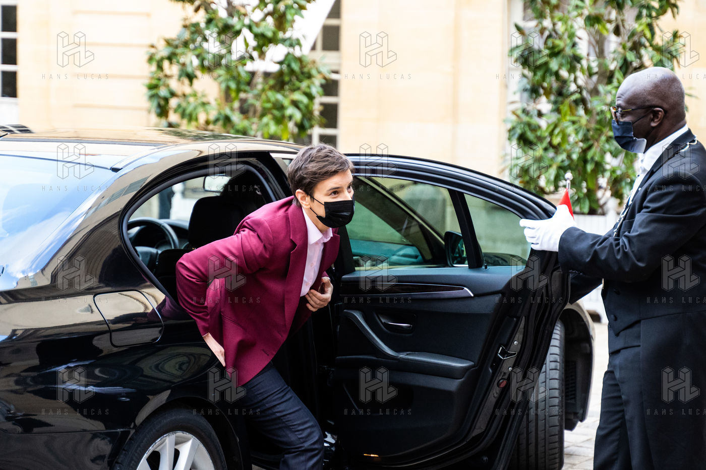 Entretien entre le Premier ministre français et le président du gouvernement de Serbie à l'Hôtel de Matignon.