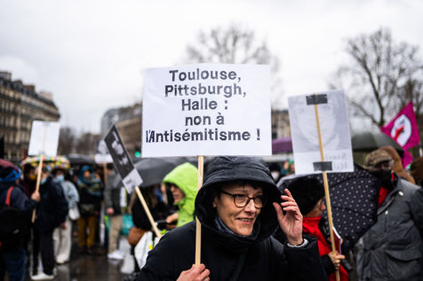 Let's act against anti-Semitism. 10 years after the anti-Semitic massacre at the Jewish school in Toulouse, a day of action is organized in Paris, with a march against anti-Semitism starting from the Place de la République.