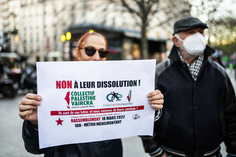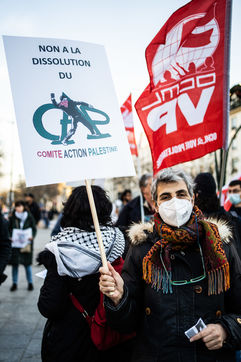 Rally against the dissolution of the Collectif Palestine vaincra and the Comite action palestine